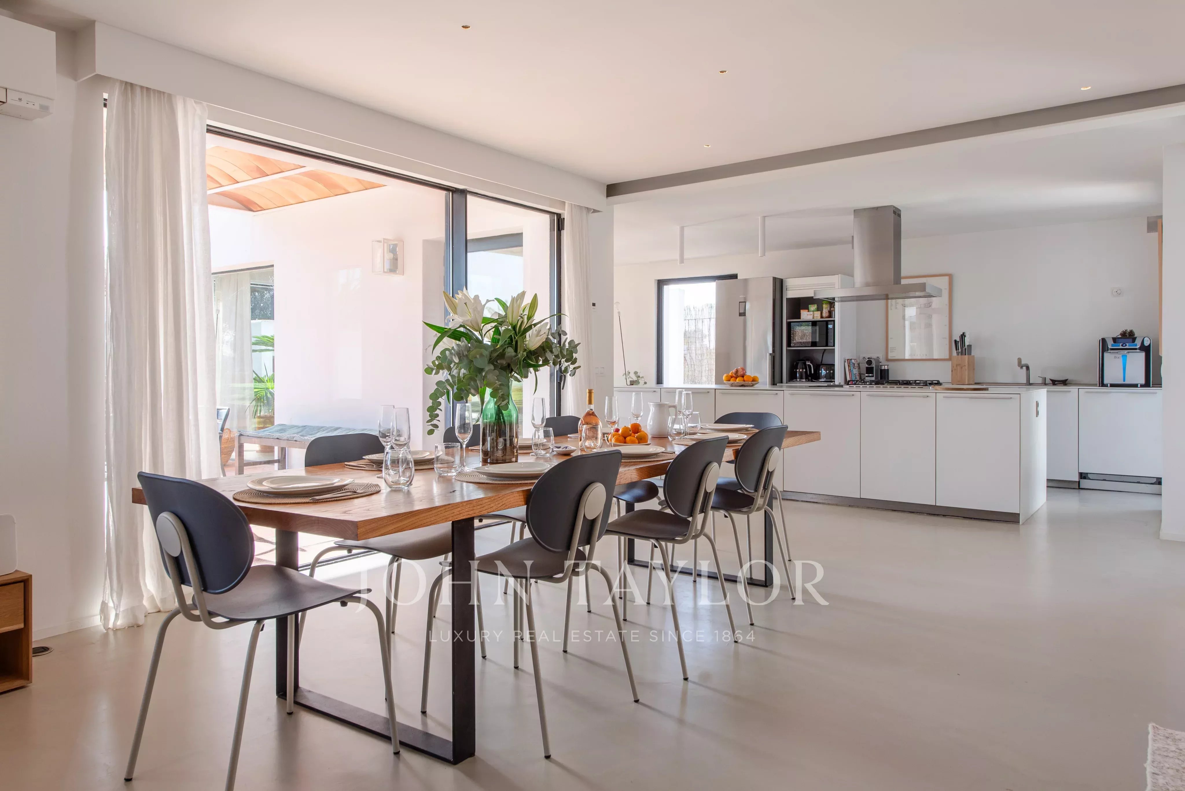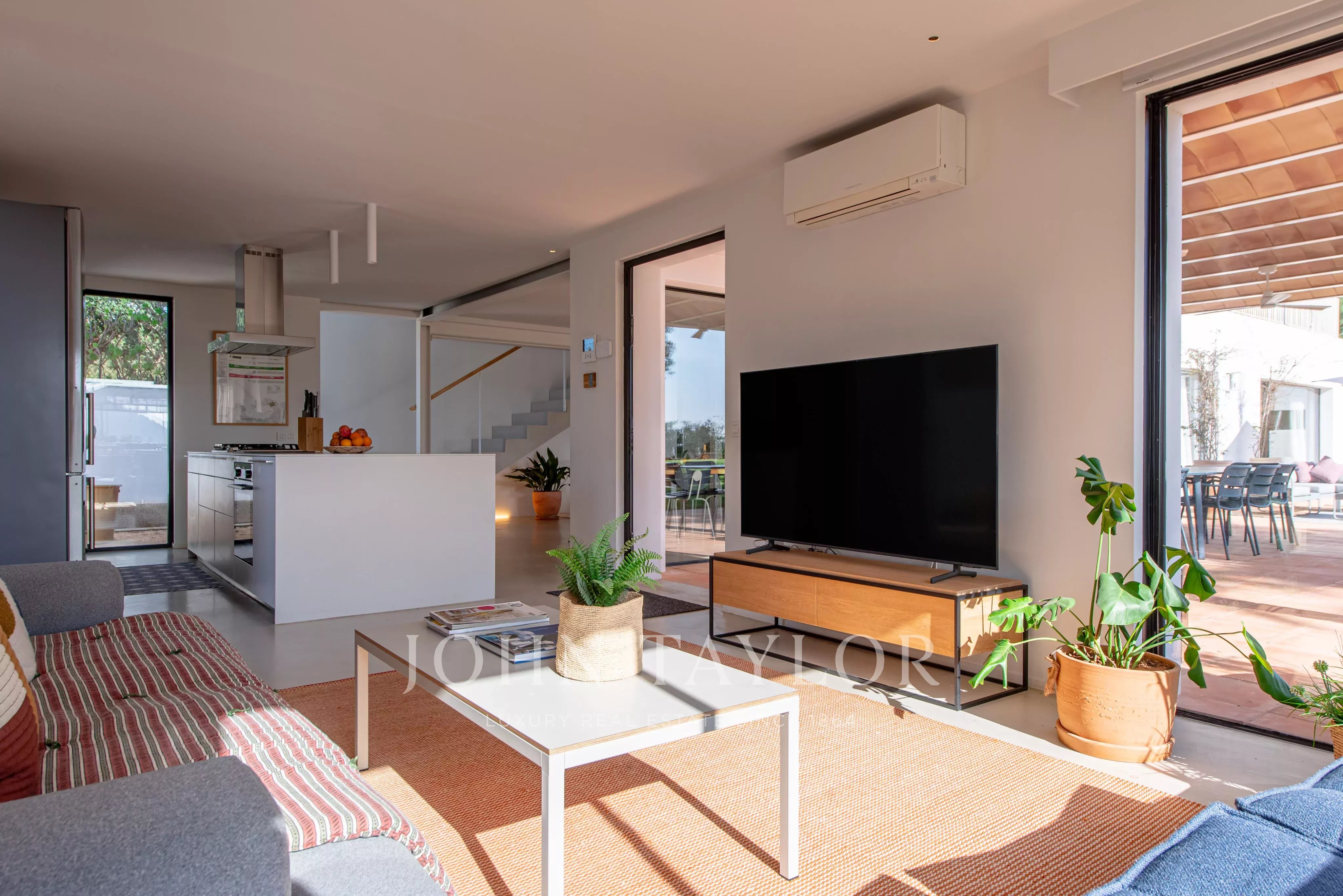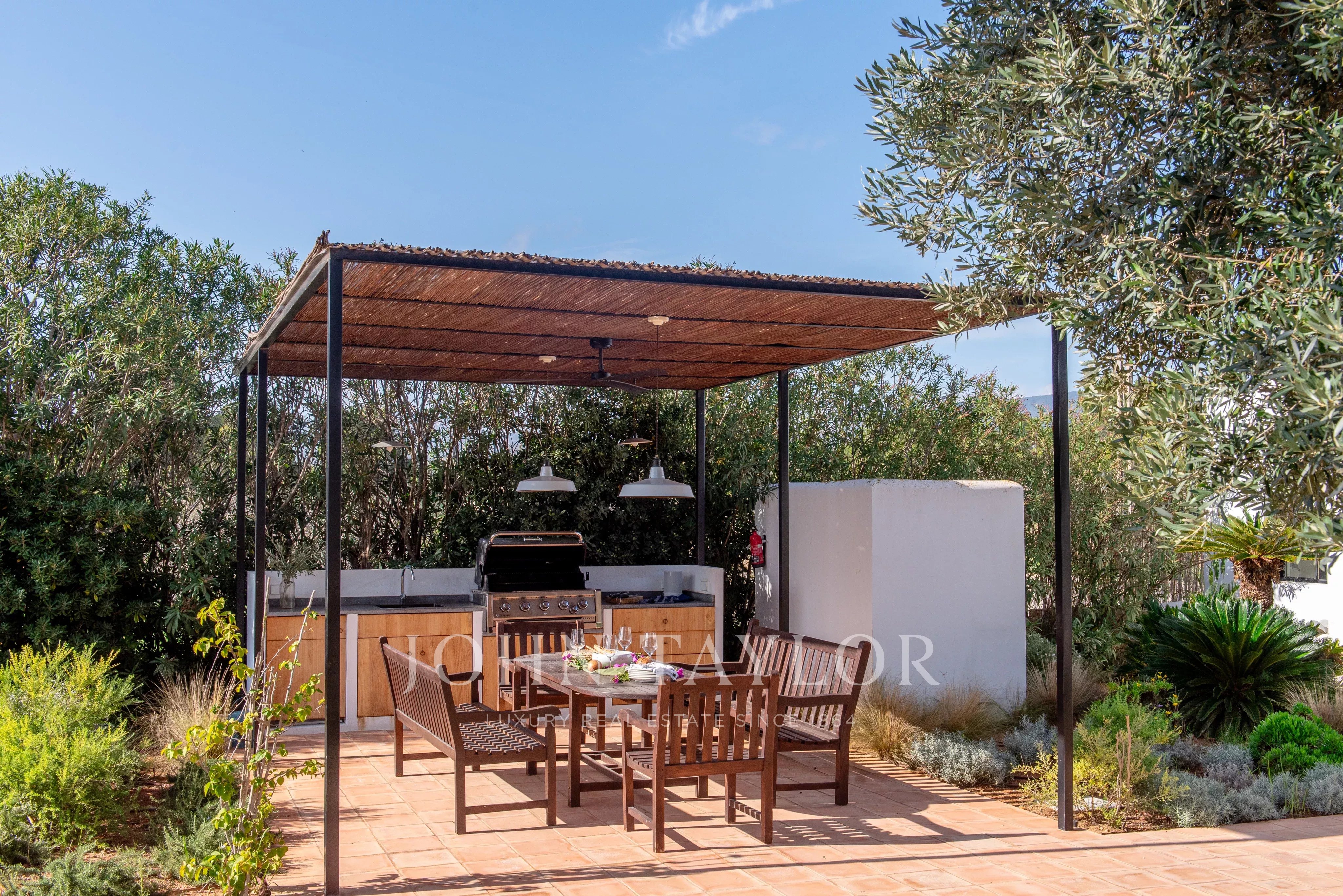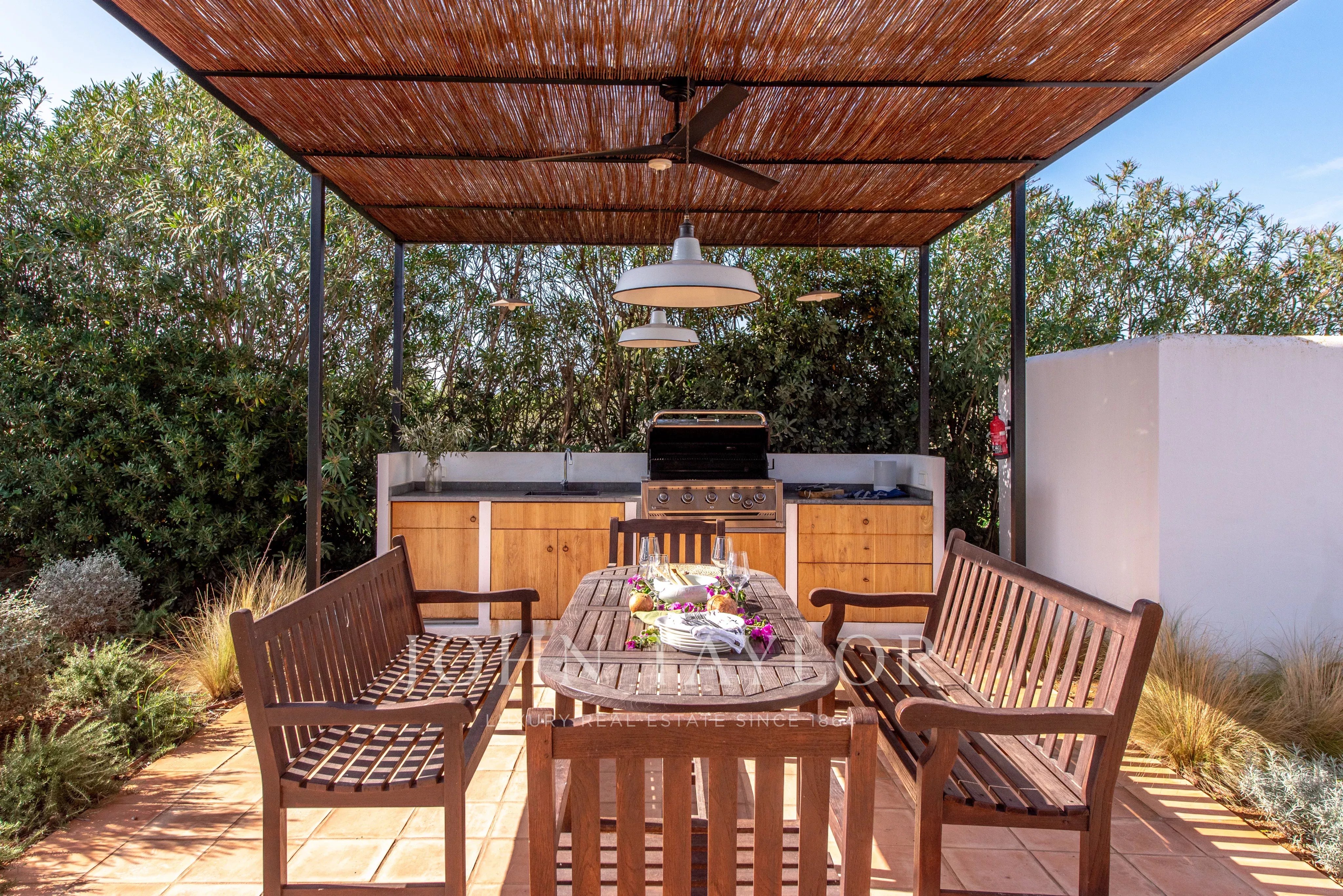 Située à quelques minutes seulement des plages prisées de Sa Caleta et Cala Jondal, cette villa offre un refuge paisible après une journée au soleil ou un après-midi dans les lieux les plus exclusifs de l'île.
