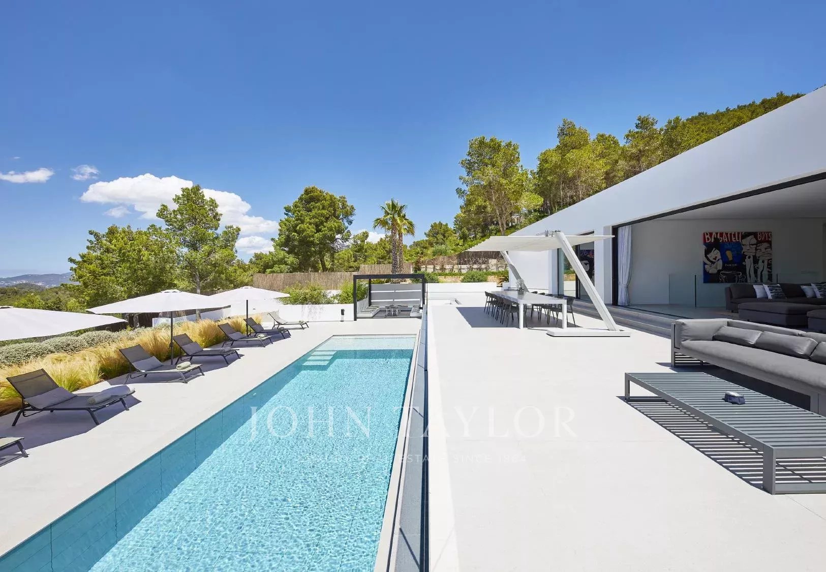 Le terrain de 20.000 m² comprend de vastes jardins méditerranéens, un espace chill-out, une salle à manger extérieure, un barbecue et de magnifiques vues sur les couchers de soleil et la campagne ibicenca. La villa est équipée de la climatisation de dernière génération, d’un système audio Sonos, d’un home cinéma, de la télévision par satellite et du Wi-Fi haut débit. Chaque chambre dispose d’un coffre-fort, de chargeurs USB, d’une machine à espresso, d’un set thé/café, et des services de blanchisserie.