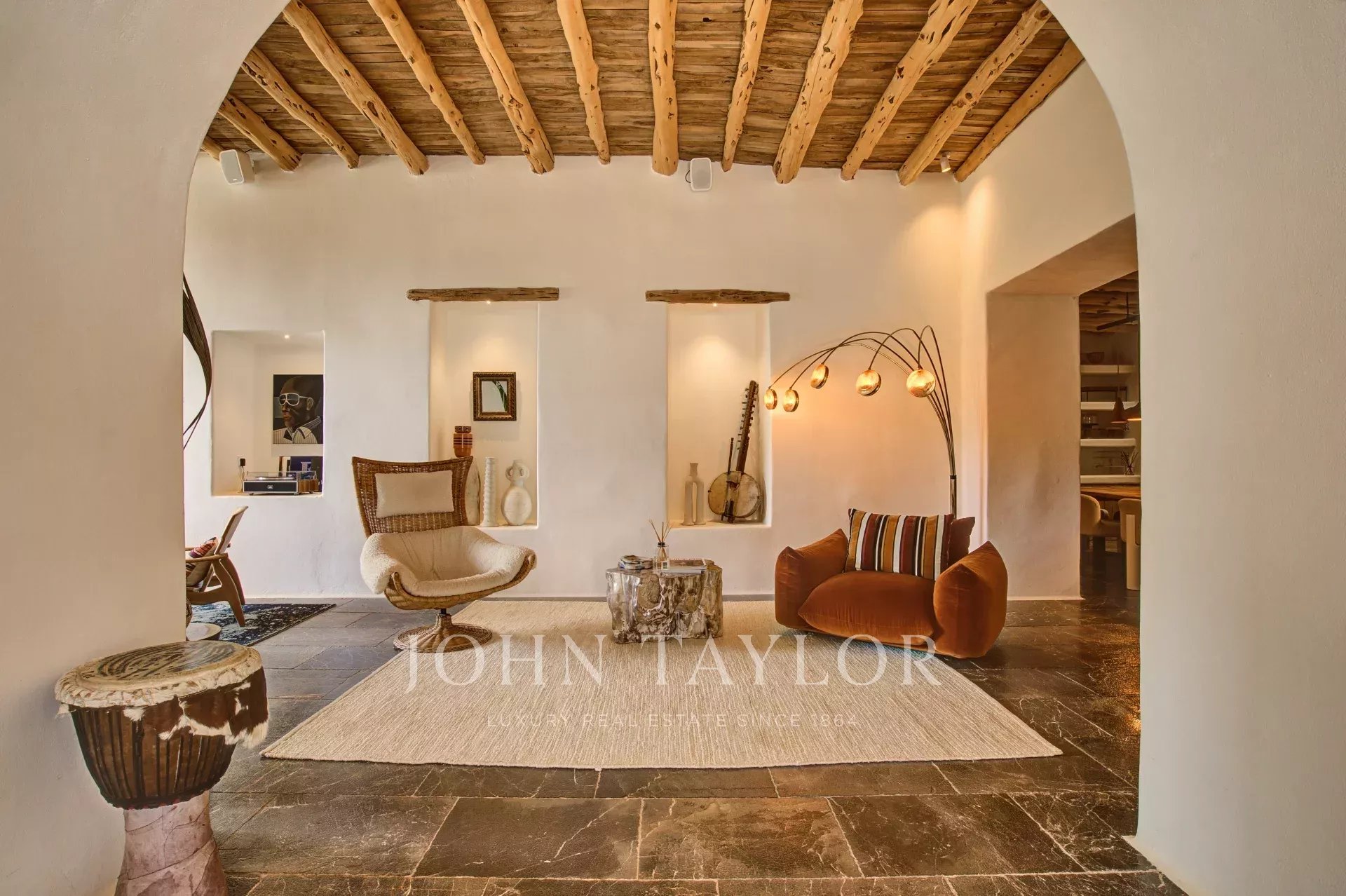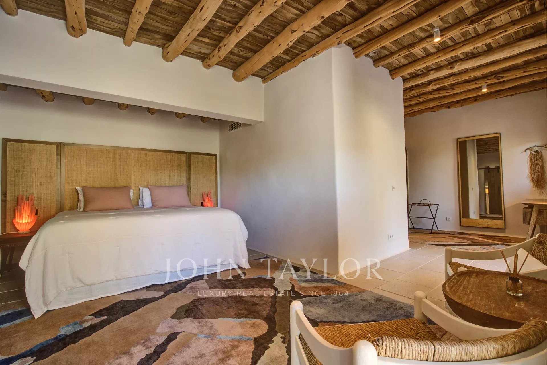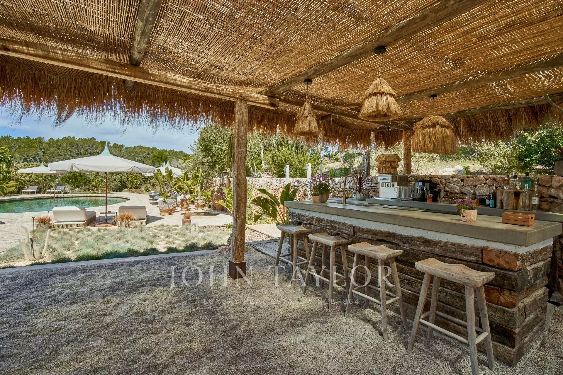 Évadez-vous dans une oasis de luxe et d'authenticité au nord d'Ibiza. Cette magnifique finca de neuf chambres allie histoire, design et nature dans un cadre privé de 21 acres. Profitez d'une piscine d'eau salée spectaculaire, de zones de bien-être, de terrasses ensoleillées et d'une cave privée insonorisée pour des célébrations exclusives.