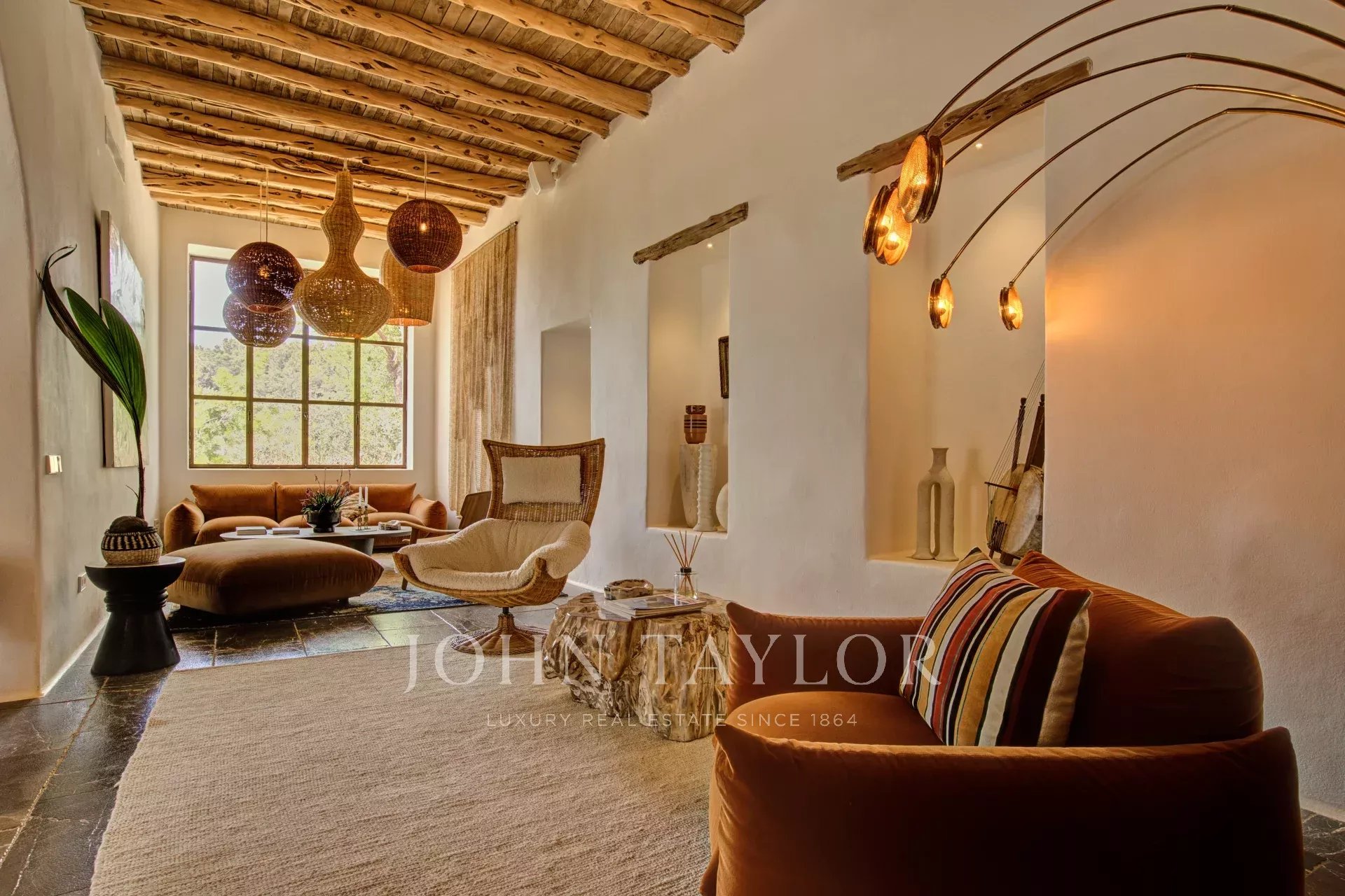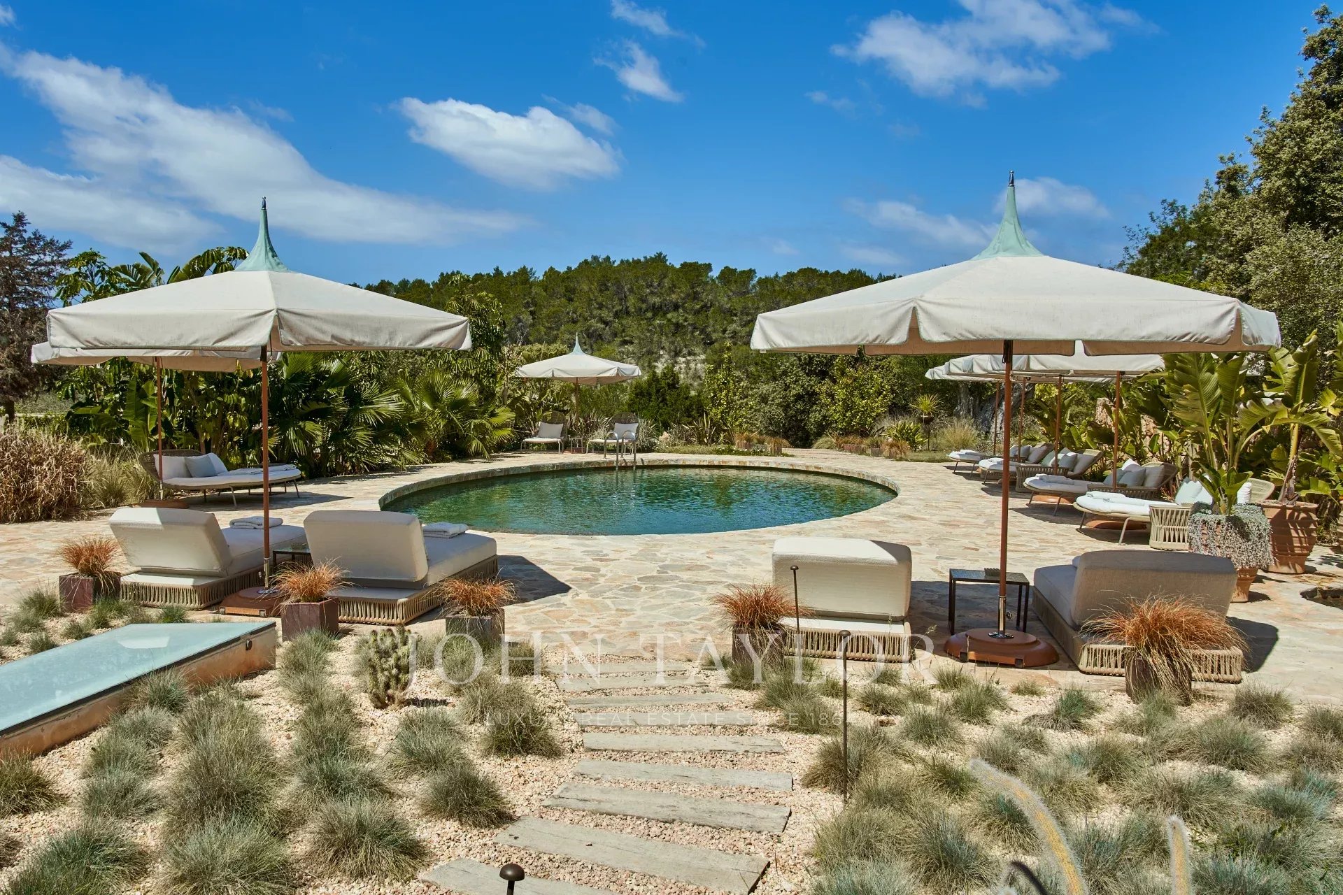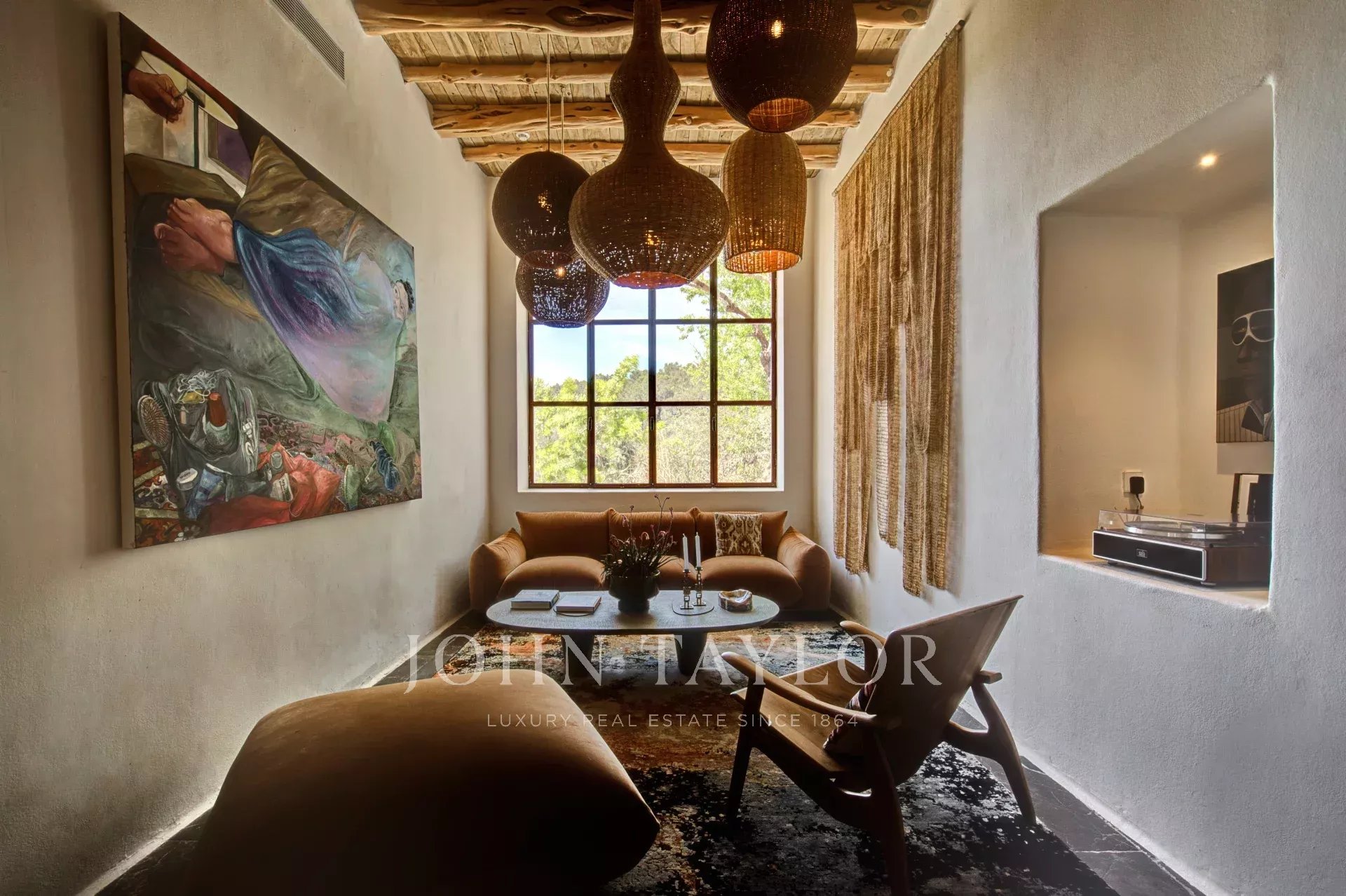 Évadez-vous dans une oasis de luxe et d'authenticité au nord d'Ibiza. Cette magnifique finca de neuf chambres allie histoire, design et nature dans un cadre privé de 21 acres. Profitez d'une piscine d'eau salée spectaculaire, de zones de bien-être, de terrasses ensoleillées et d'une cave privée insonorisée pour des célébrations exclusives.