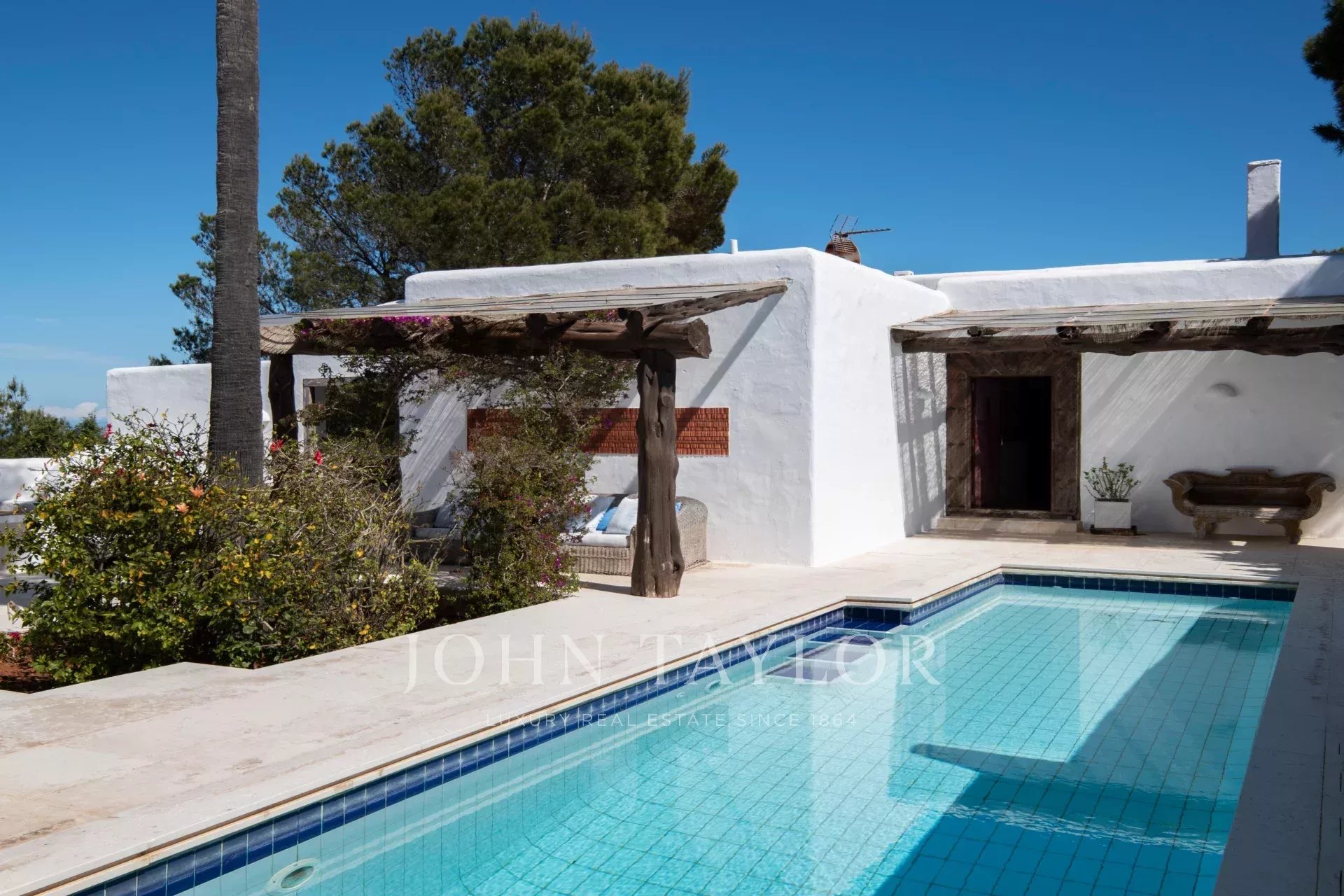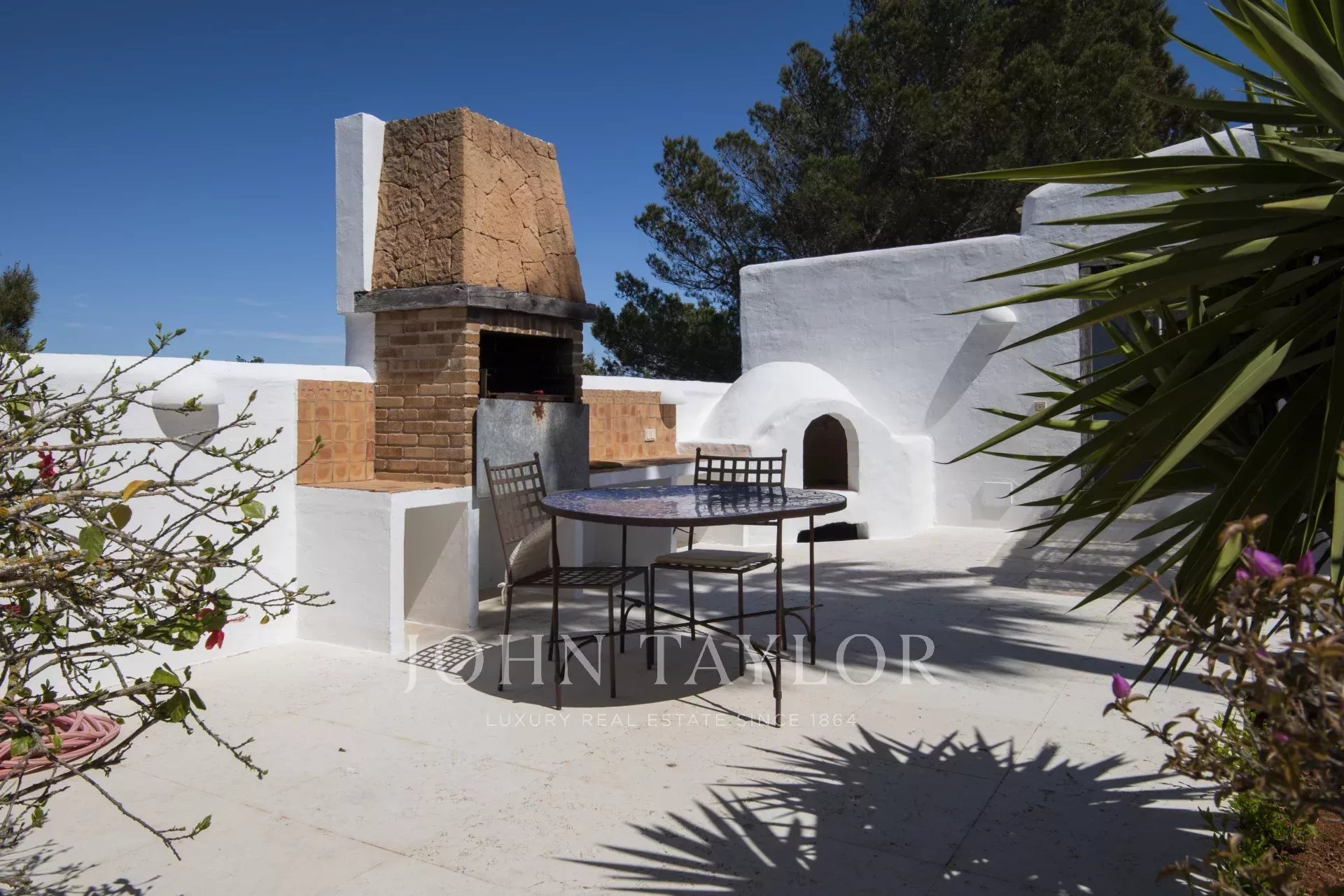 Cette vaste propriété abrite une luxueuse villa composée de trois bâtiments, ainsi qu'une baie privée. Mieux encore, vous vivrez immergé dans un paradis naturel, à quelques pas des plages les plus spectaculaires et à seulement 301 minutes du cœur animé de la ville d'Ibiza, avec ses superbes restaurants, ses boîtes de nuit et sa vie nocturne.