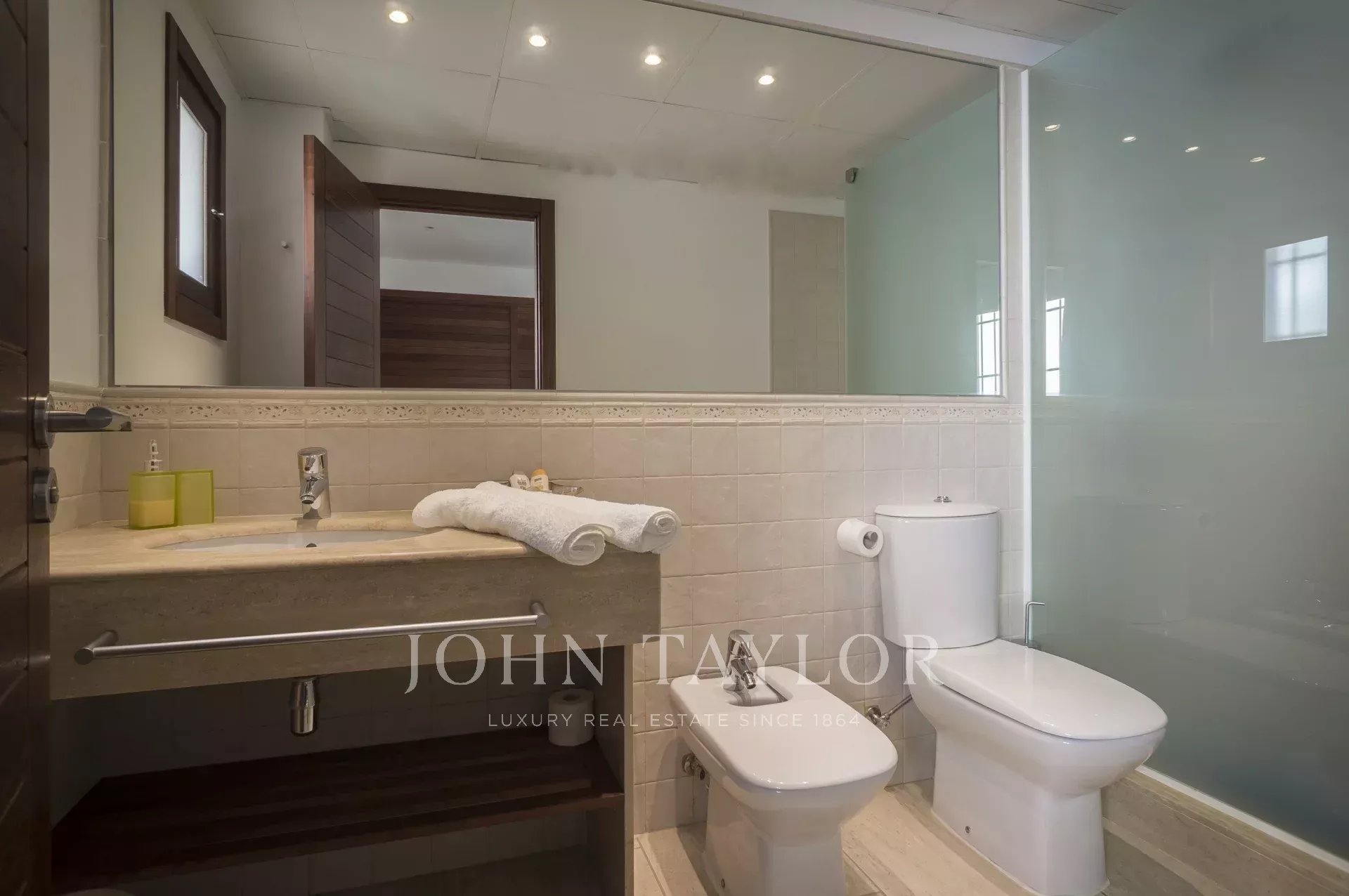 La propriété est construite sur deux niveaux et a une superficie de 360m2. Elle dispose de 5 chambres à coucher, 5 salles de bains, une toilette d'invité, un salon-salle à manger spacieux et une cuisine équipée d'appareils haut de gamme. Elle dispose également d'un espace de stockage et d'un garage.
