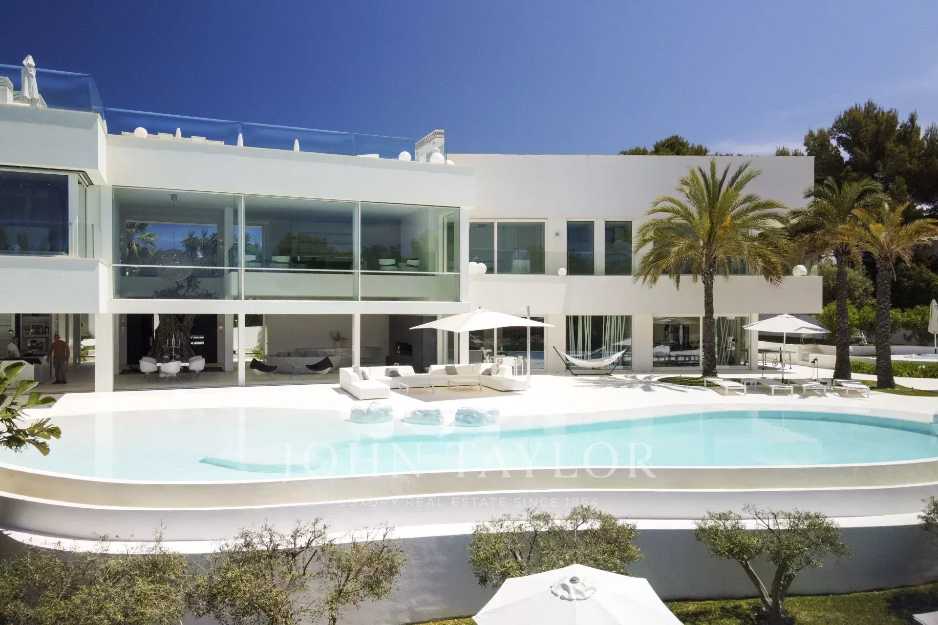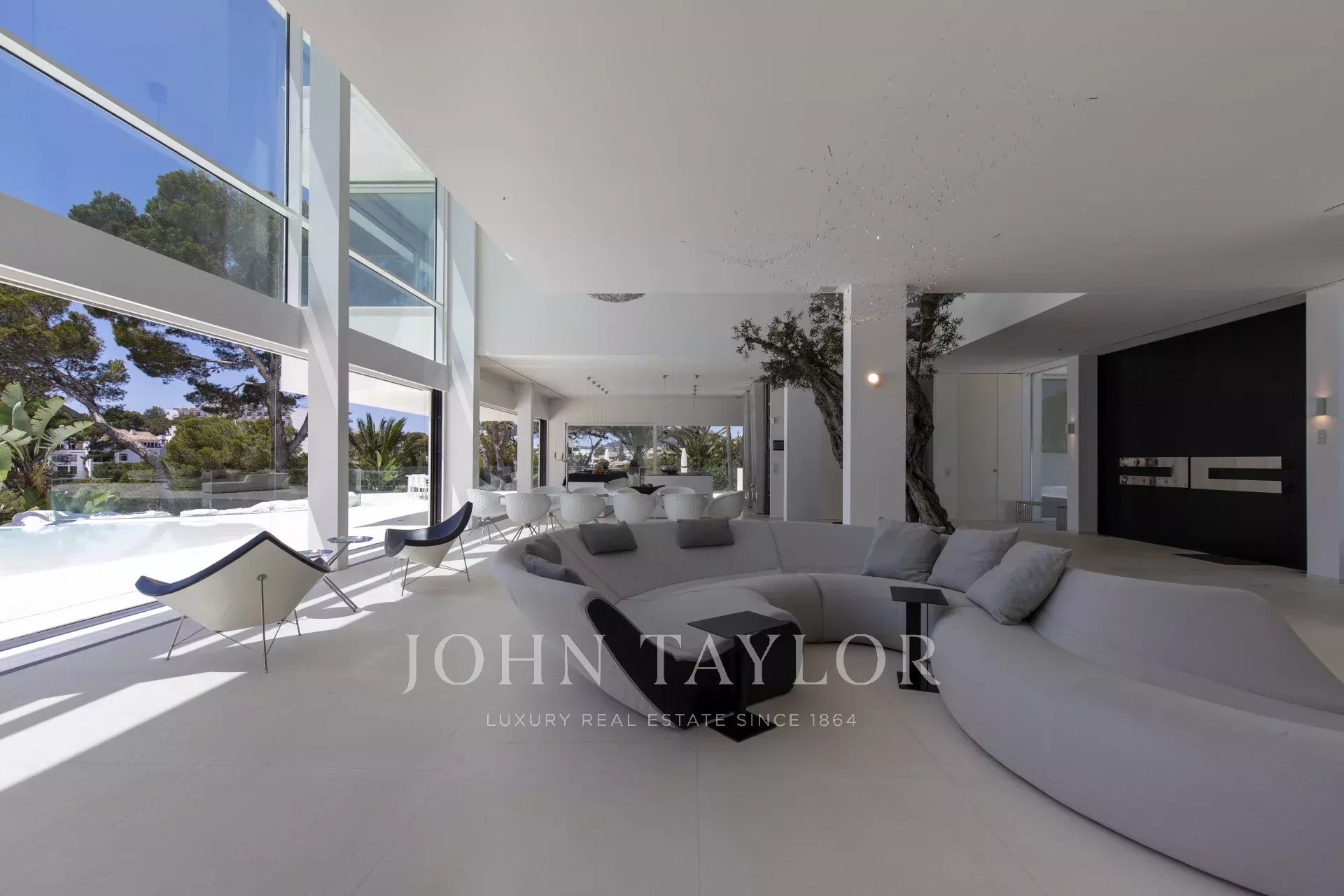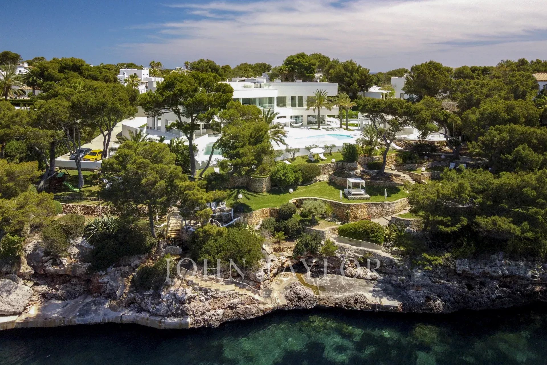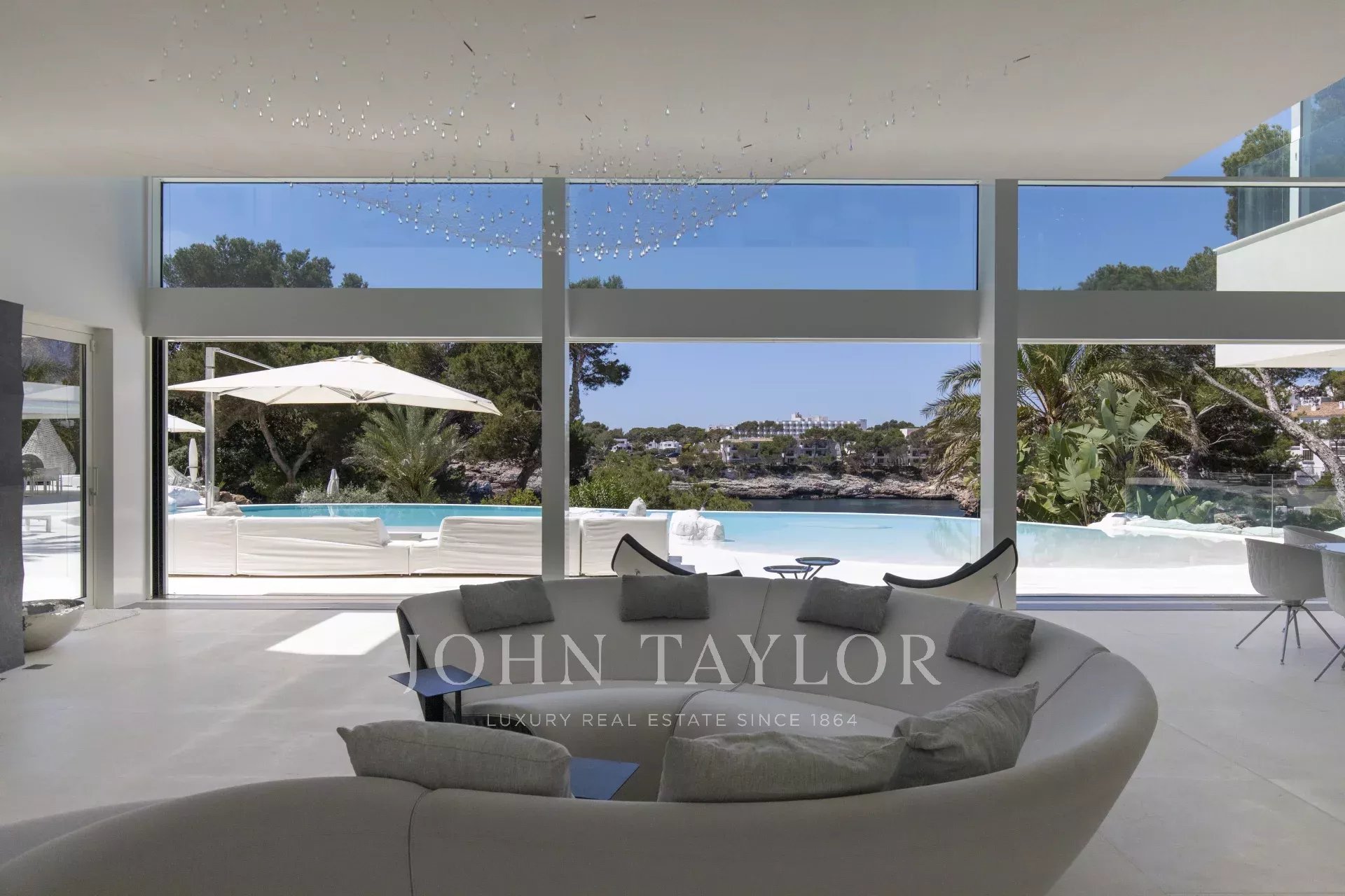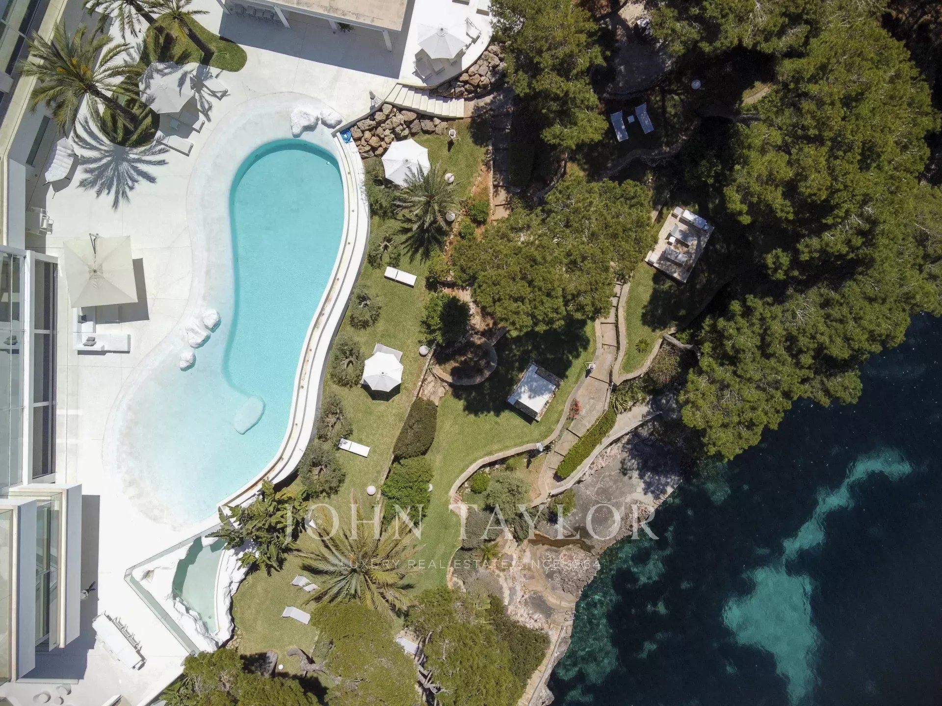 Cette propriété est située à Cala D'Or et impressionne par son exclusivité unique. L'intérieur de la Casa Roel a été conçu par le propriétaire lui-même et fait de la villa un chef-d'œuvre futuriste. Construite en 2013, la villa s'élève au-dessus de la baie de Cala D'Or et offre des vues panoramiques à couper le souffle sur la baie. La piscine lagon de plus de 25 mètres de long, la cascade de rochers ainsi que le jacuzzi sont d'autres équipements de la maison. Sur les 4500 m2, la grande propriété dispose de plusieurs zones de détente avec des bains de soleil et un salon extérieur couvert avec bar et barbecue. L'accès privé à la mer et l'amarrage privé pour les yachts jusqu'à 25 mètres font également partie des points forts. L'olivier centenaire intégré dans le hall d'entrée laisse présager le caractère unique de la propriété dès l'entrée. La climatisation et le chauffage par le sol sont présents dans toute la maison. Le salon, le toit-terrasse et la suite parentale sont équipés d'un système audio Sonos. La cuisine design entièrement équipée avec réfrigérateur à vin ne laisse rien à désirer. La Casa Roel dispose de 5 chambres doubles et d'une suite parentale. La suite parentale, ainsi que trois chambres doubles, disposent chacune d'une salle de bains privative. Deux des six chambres partagent une salle de bains. Parmi les autres équipements de la maison, citons la salle de remise en forme, dotée d'un équipement de haute qualité et offrant des vues sur la mer, la salle de billard et la salle multimédia interne avec écran 3D et baby-foot. Grâce à un éclairage exceptionnel, la villa offre une ambiance particulière le soir, ce qui en fait l'endroit idéal pour des vacances exclusives.