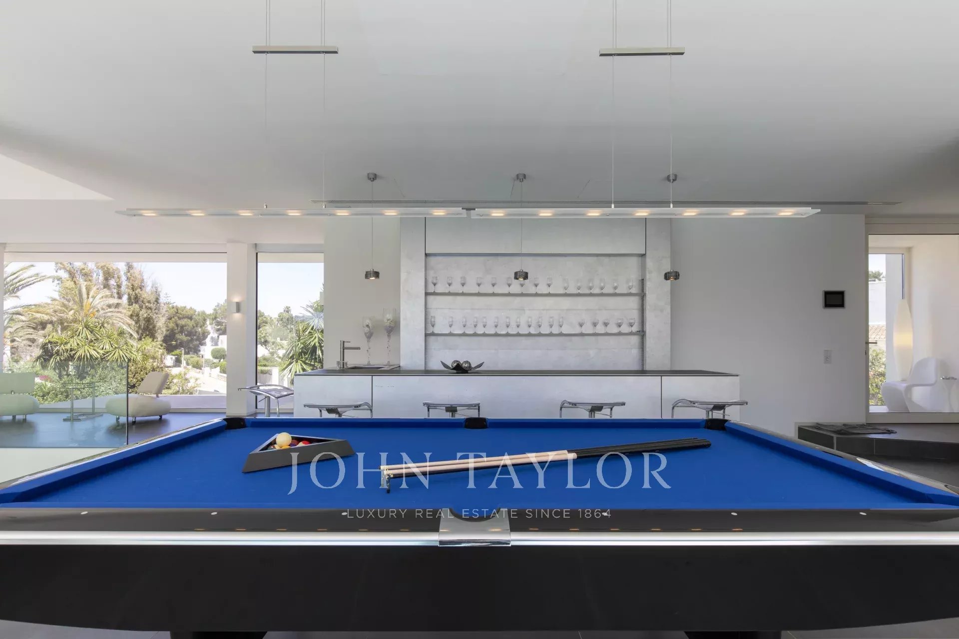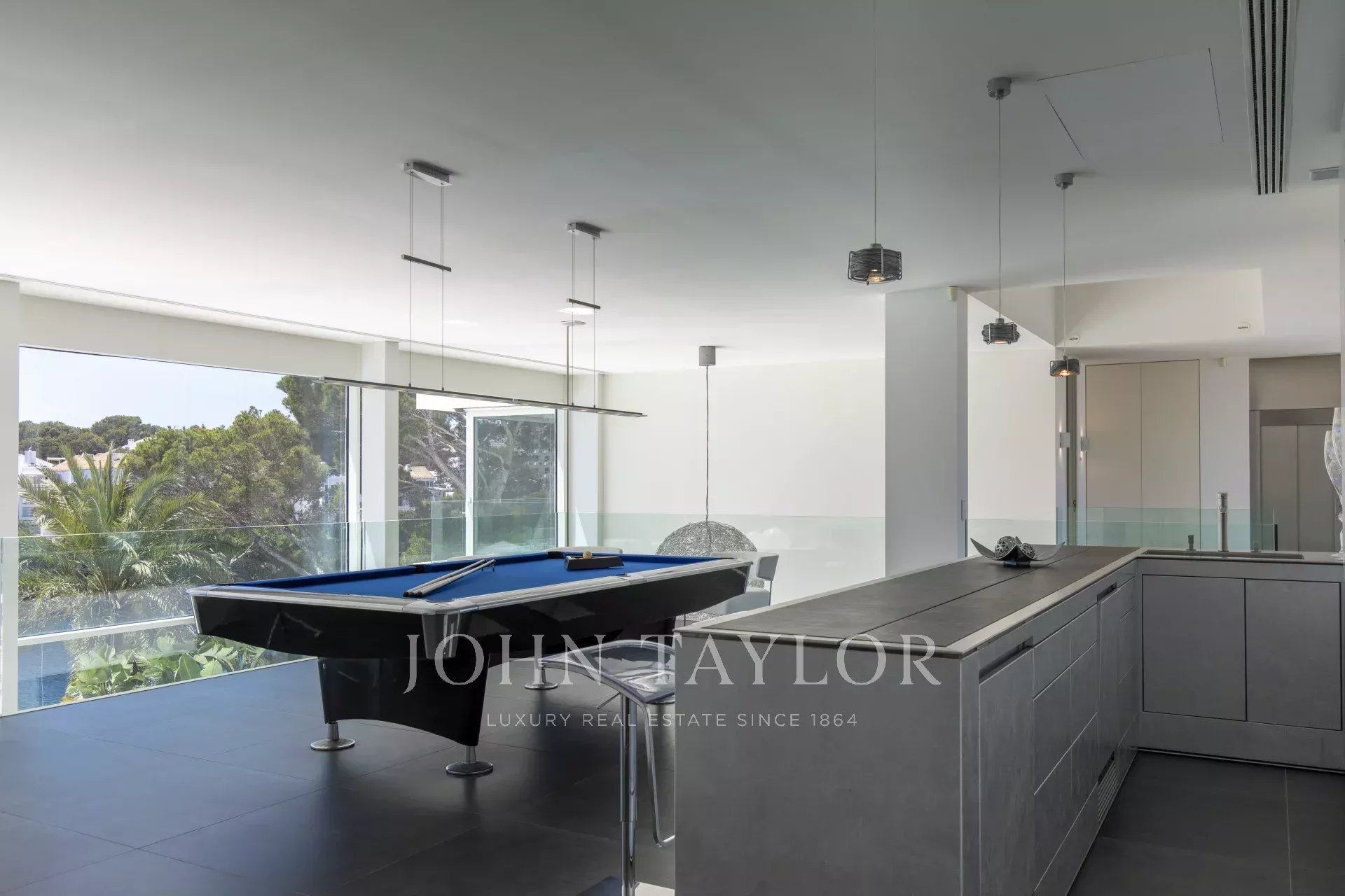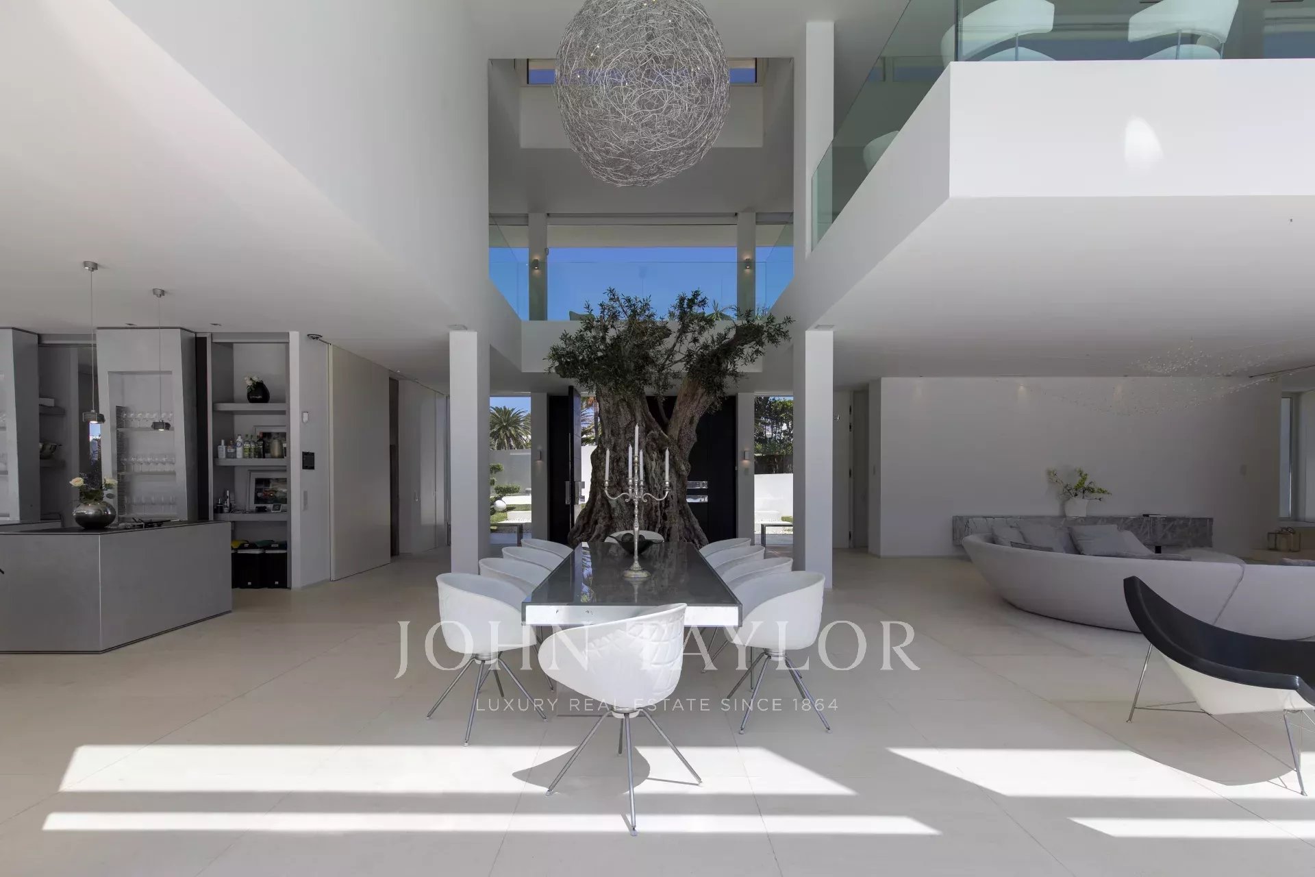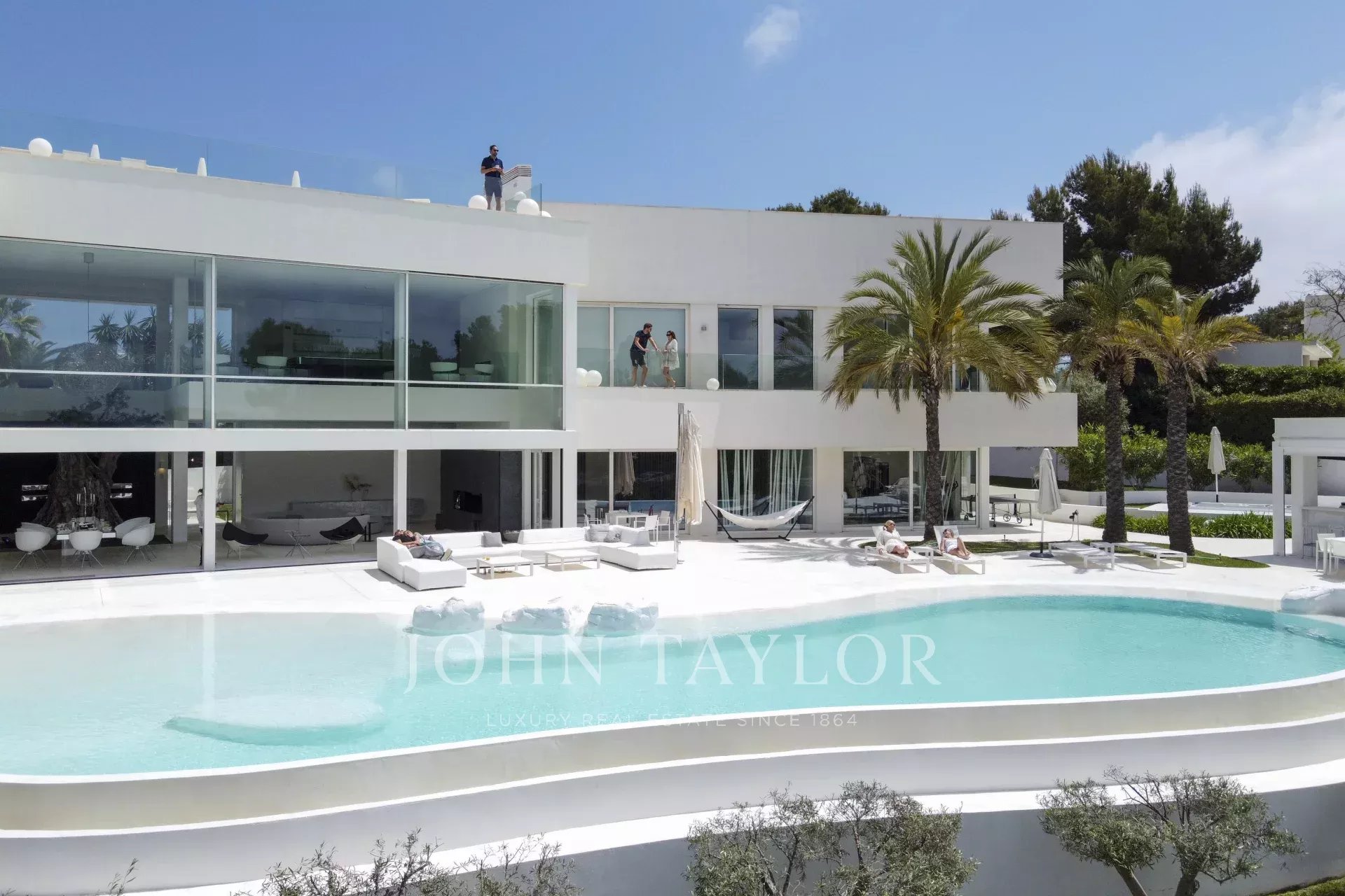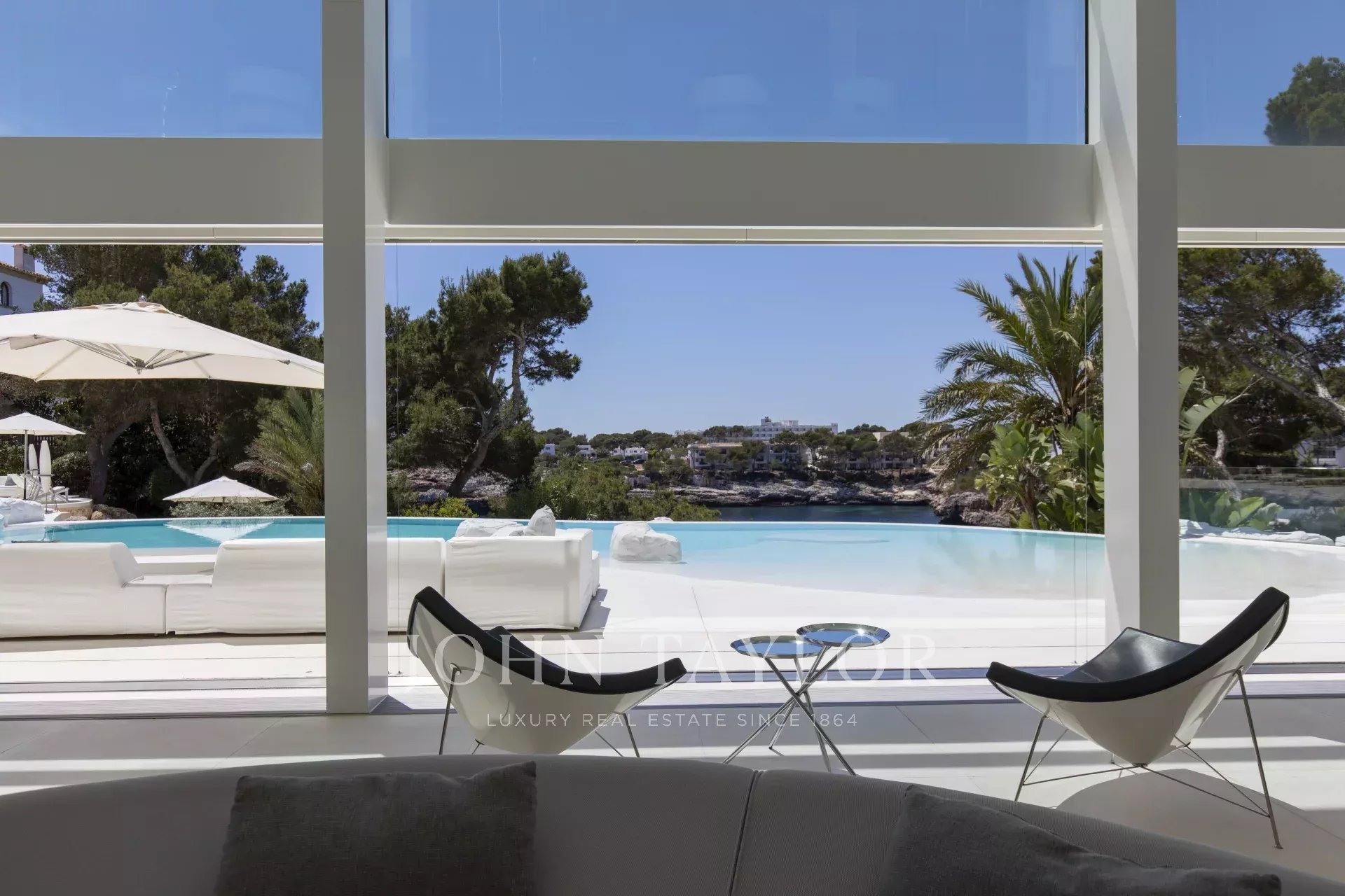 Cette propriété est située à Cala D'Or et impressionne par son exclusivité unique. L'intérieur de la Casa Roel a été conçu par le propriétaire lui-même et fait de la villa un chef-d'œuvre futuriste. Construite en 2013, la villa s'élève au-dessus de la baie de Cala D'Or et offre des vues panoramiques à couper le souffle sur la baie. La piscine lagon de plus de 25 mètres de long, la cascade de rochers ainsi que le jacuzzi sont d'autres équipements de la maison. Sur les 4500 m2, la grande propriété dispose de plusieurs zones de détente avec des bains de soleil et un salon extérieur couvert avec bar et barbecue. L'accès privé à la mer et l'amarrage privé pour les yachts jusqu'à 25 mètres font également partie des points forts. L'olivier centenaire intégré dans le hall d'entrée laisse présager le caractère unique de la propriété dès l'entrée. La climatisation et le chauffage par le sol sont présents dans toute la maison. Le salon, le toit-terrasse et la suite parentale sont équipés d'un système audio Sonos. La cuisine design entièrement équipée avec réfrigérateur à vin ne laisse rien à désirer. La Casa Roel dispose de 5 chambres doubles et d'une suite parentale. La suite parentale, ainsi que trois chambres doubles, disposent chacune d'une salle de bains privative. Deux des six chambres partagent une salle de bains. Parmi les autres équipements de la maison, citons la salle de remise en forme, dotée d'un équipement de haute qualité et offrant des vues sur la mer, la salle de billard et la salle multimédia interne avec écran 3D et baby-foot. Grâce à un éclairage exceptionnel, la villa offre une ambiance particulière le soir, ce qui en fait l'endroit idéal pour des vacances exclusives.