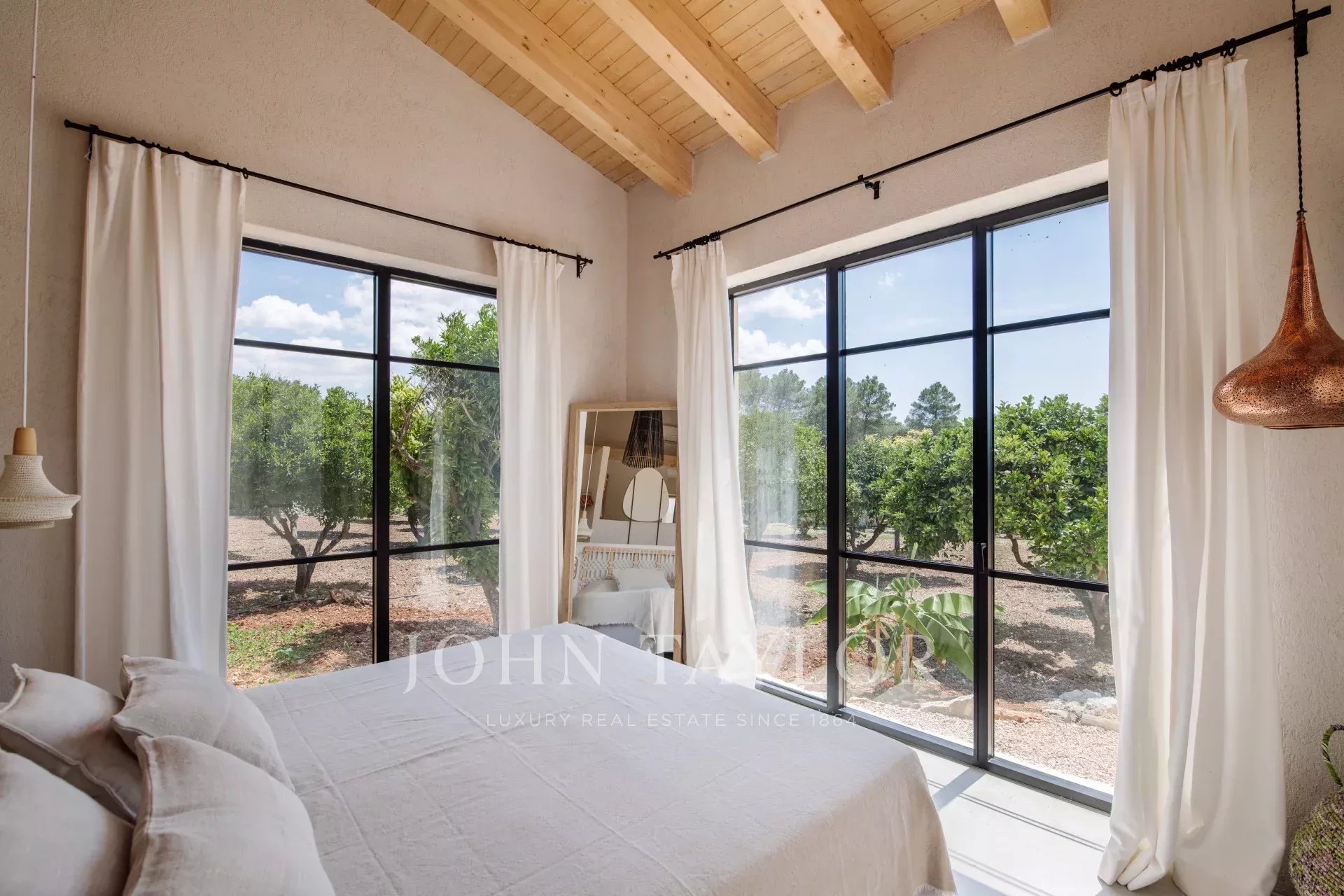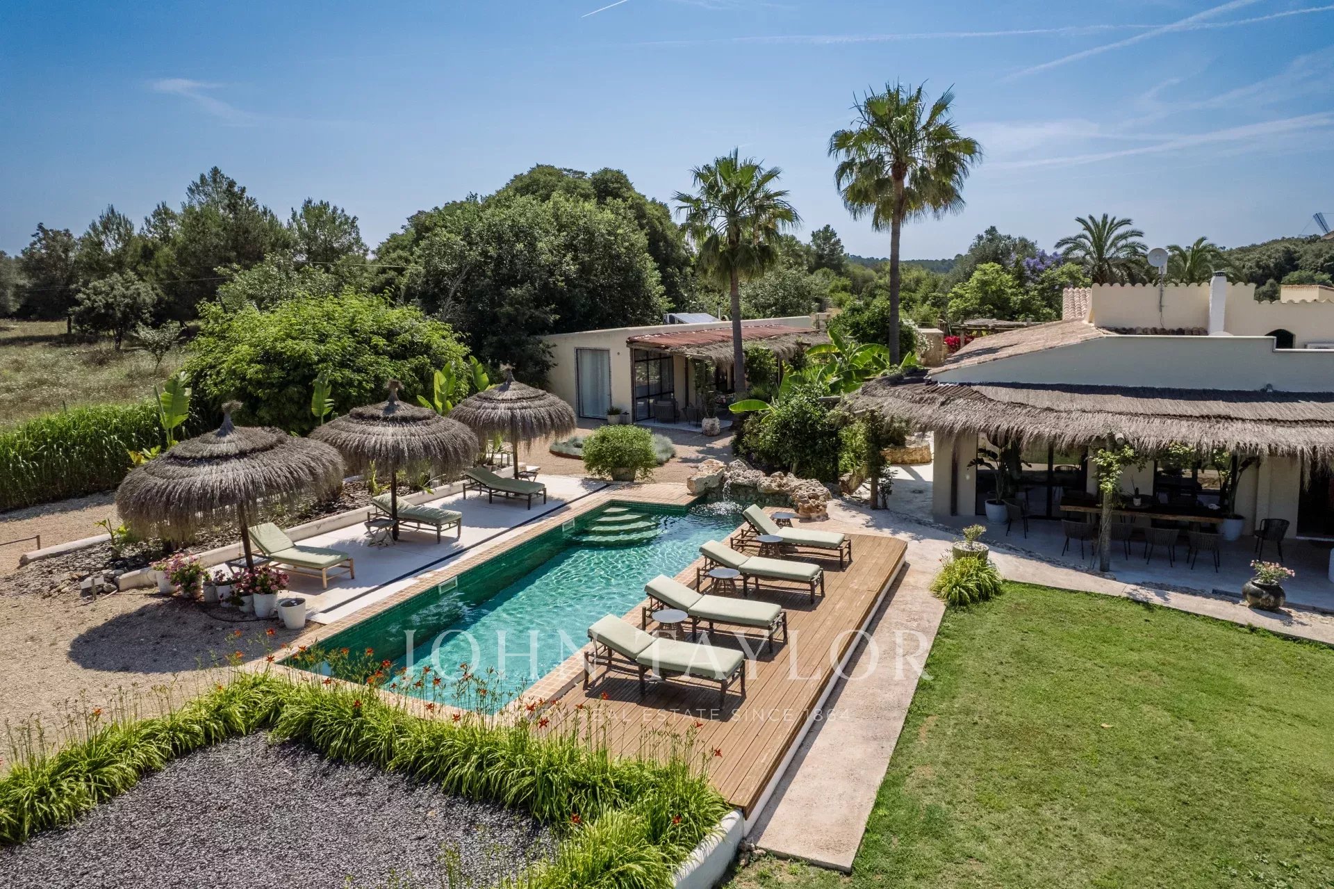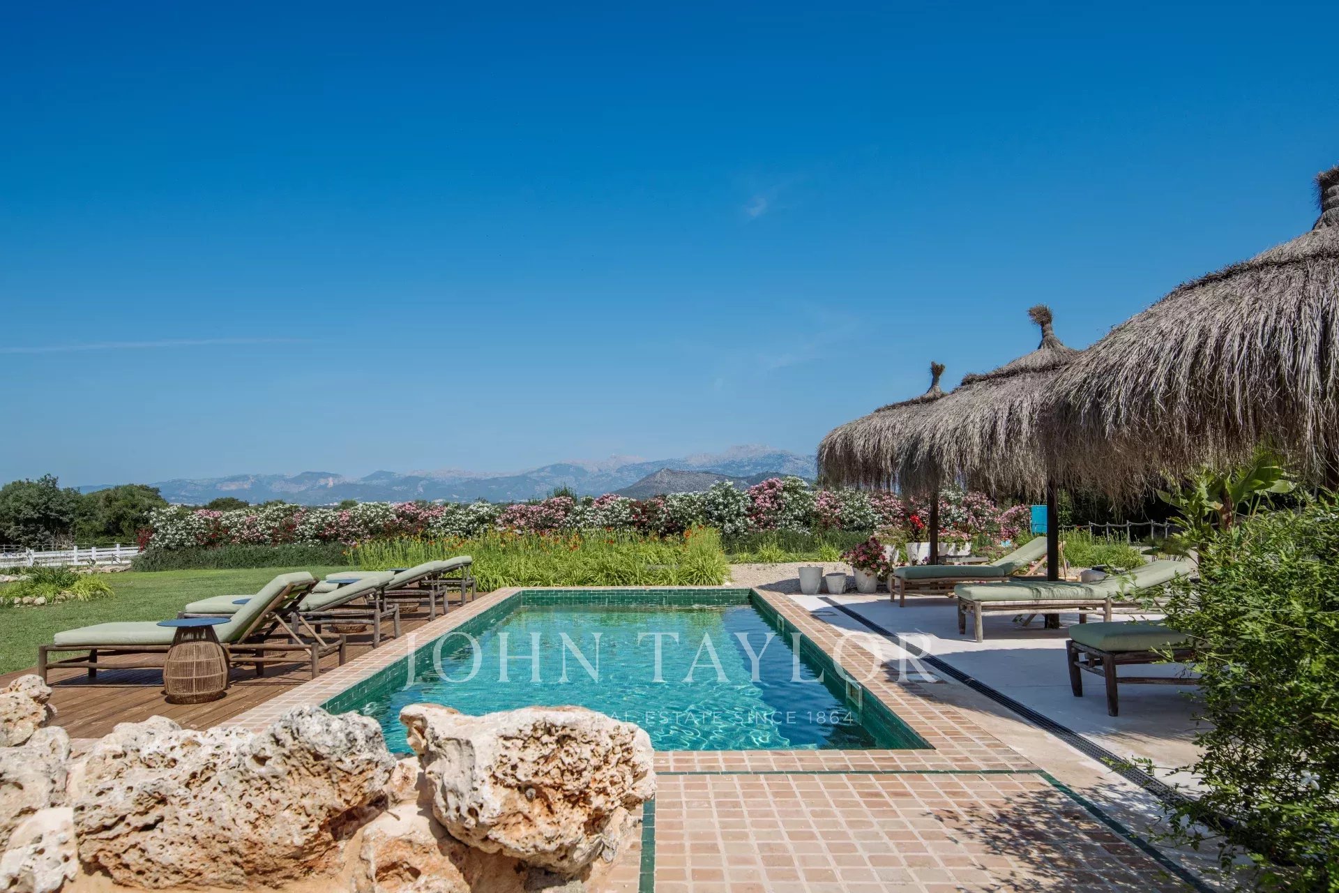 La magnifique Finca Only Summer a été entièrement rénovée en 2020 et séduit par son design extraordinaire. Le lien avec la nature est ici au premier plan. Les textures et les couleurs chaudes, associées à un design moderne, créent une atmosphère de bien-être très particulière. Une retraite exotique pour se détendre. La finca peut accueillir jusqu'à 10 personnes dans 5 chambres doubles. 3 des chambres se trouvent dans la maison principale, 2 dans la dépendance. Toutes les chambres disposent d'une salle de bains privative avec douche, de la climatisation et du chauffage par le sol. La cuisine ouverte est lumineuse et le salon adjacent est inondé de lumière grâce aux grandes fenêtres. La maison est équipée de la télévision par satellite, du Wifi et d'un système de musique Sonos. Une grande piscine extérieure (chauffée moyennant un supplément) permet de se rafraîchir pendant les journées chaudes. La propriété, située au cœur de Majorque et entourée d'un magnifique paysage avec vue sur les montagnes de Tramuntana, compte de nombreux arbres fruitiers et un potager biologique. La Finca Only Summer dispose également d'un enclos de plus de 10 000 m2 avec des chevaux majestueux. Le village voisin de Llubi n'est qu'à quelques minutes, et la capitale de l'île, Palma, est à environ 45 minutes en voiture.
