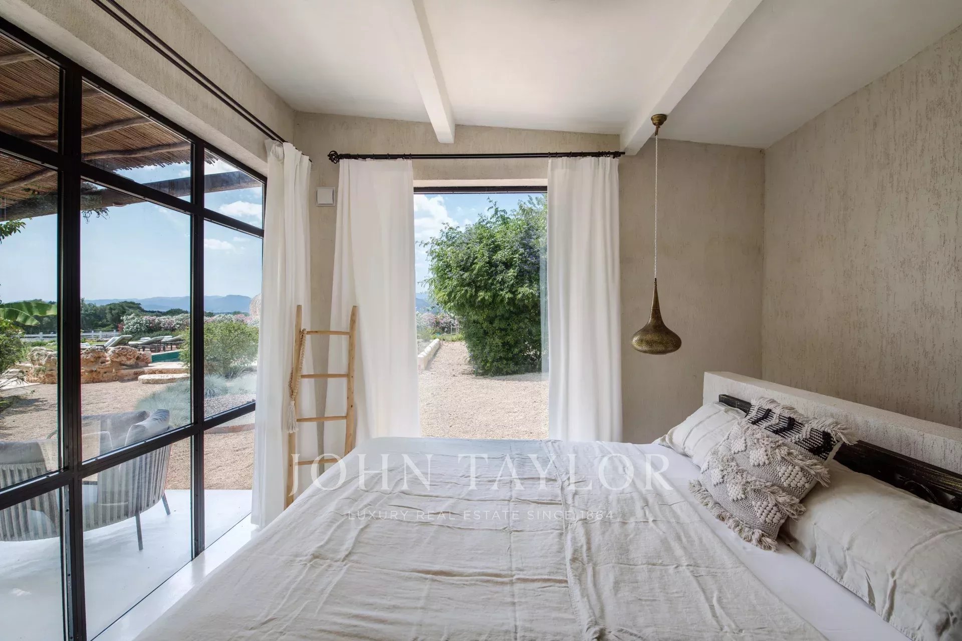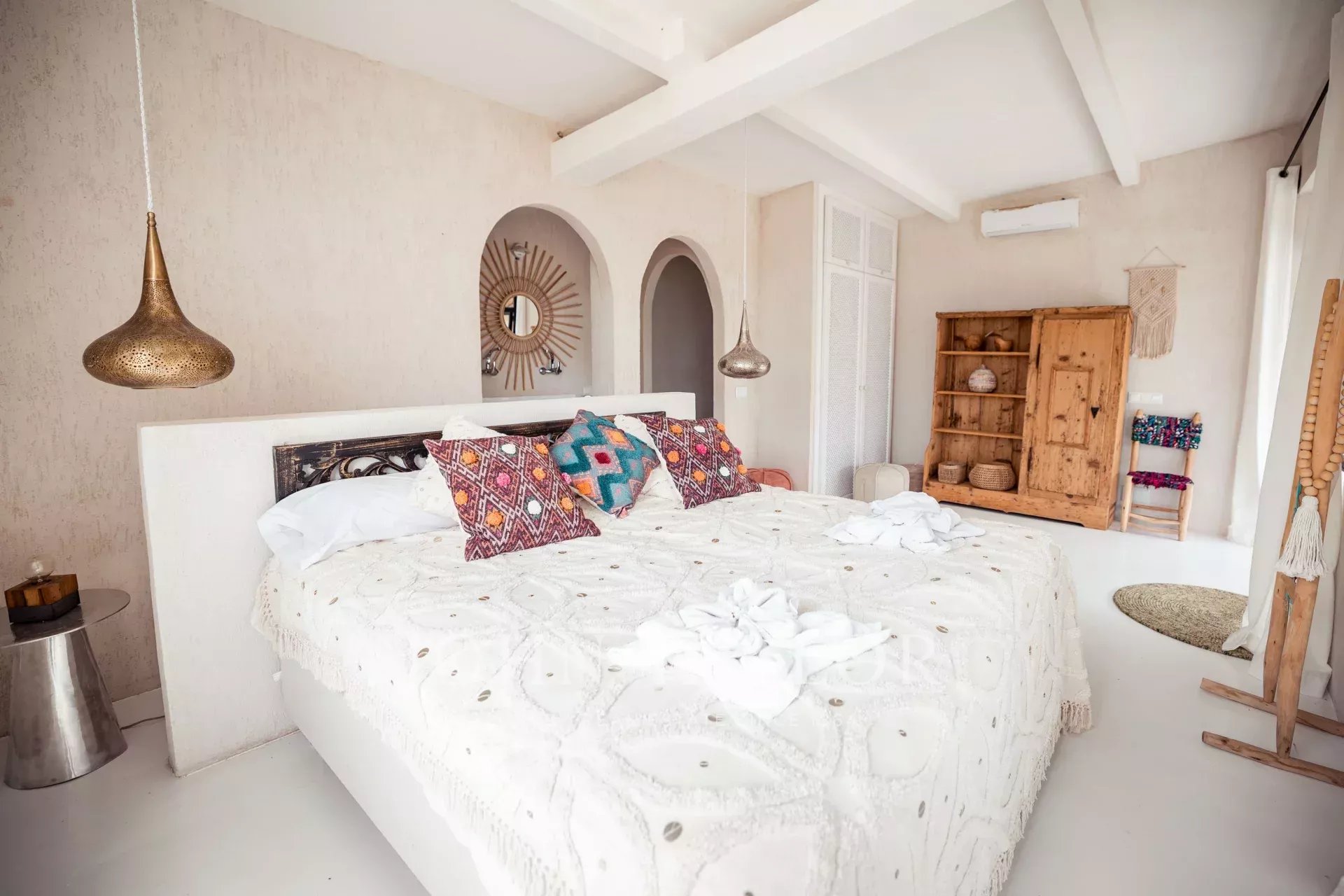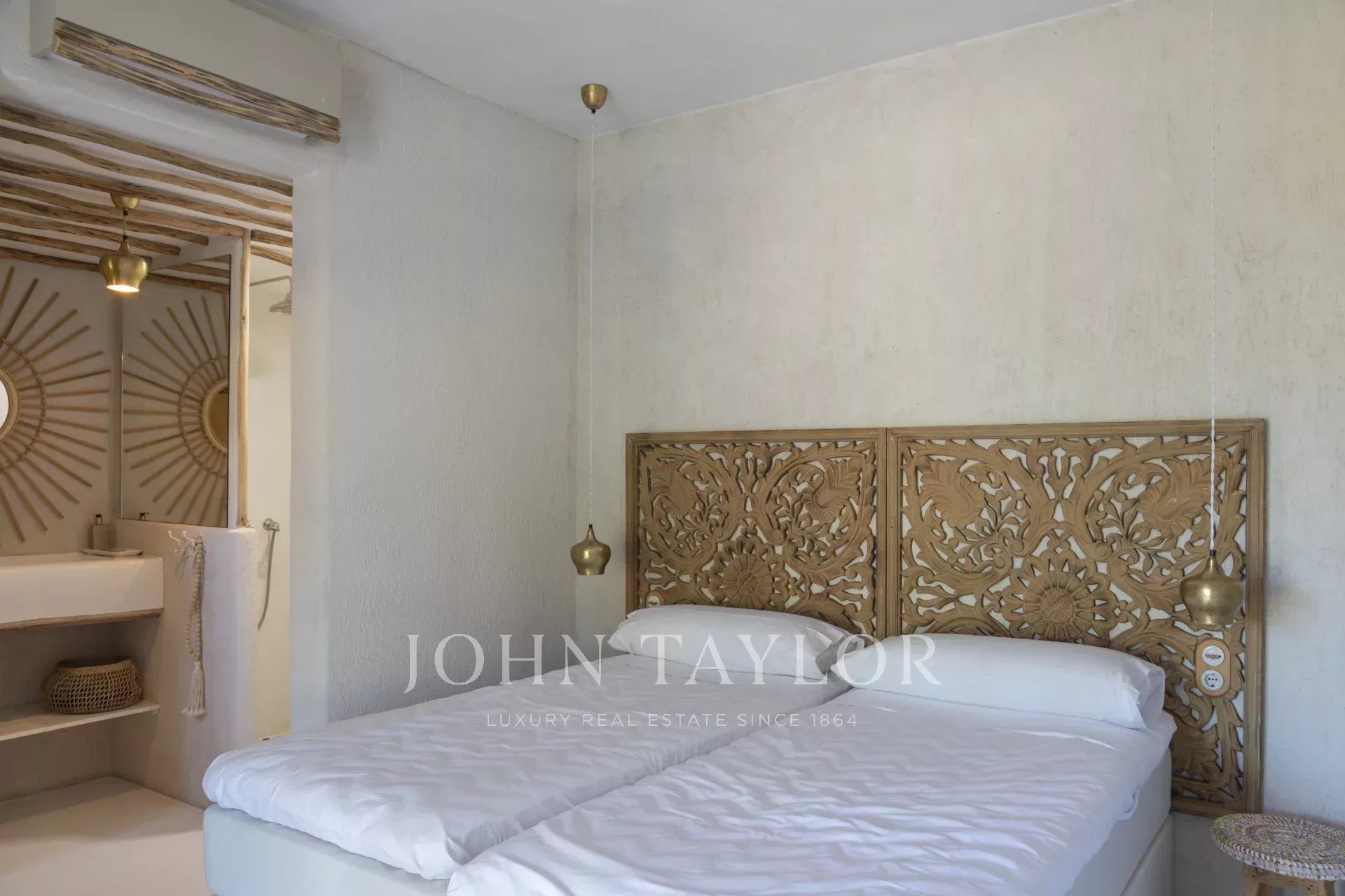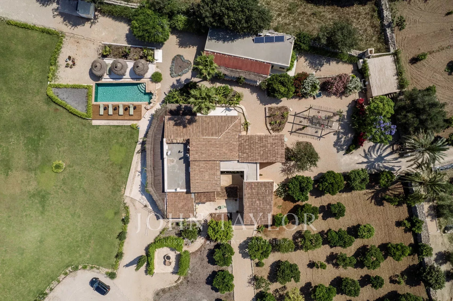 La magnifique Finca Only Summer a été entièrement rénovée en 2020 et séduit par son design extraordinaire. Le lien avec la nature est ici au premier plan. Les textures et les couleurs chaudes, associées à un design moderne, créent une atmosphère de bien-être très particulière. Une retraite exotique pour se détendre. La finca peut accueillir jusqu'à 10 personnes dans 5 chambres doubles. 3 des chambres se trouvent dans la maison principale, 2 dans la dépendance. Toutes les chambres disposent d'une salle de bains privative avec douche, de la climatisation et du chauffage par le sol. La cuisine ouverte est lumineuse et le salon adjacent est inondé de lumière grâce aux grandes fenêtres. La maison est équipée de la télévision par satellite, du Wifi et d'un système de musique Sonos. Une grande piscine extérieure (chauffée moyennant un supplément) permet de se rafraîchir pendant les journées chaudes. La propriété, située au cœur de Majorque et entourée d'un magnifique paysage avec vue sur les montagnes de Tramuntana, compte de nombreux arbres fruitiers et un potager biologique. La Finca Only Summer dispose également d'un enclos de plus de 10 000 m2 avec des chevaux majestueux. Le village voisin de Llubi n'est qu'à quelques minutes, et la capitale de l'île, Palma, est à environ 45 minutes en voiture.