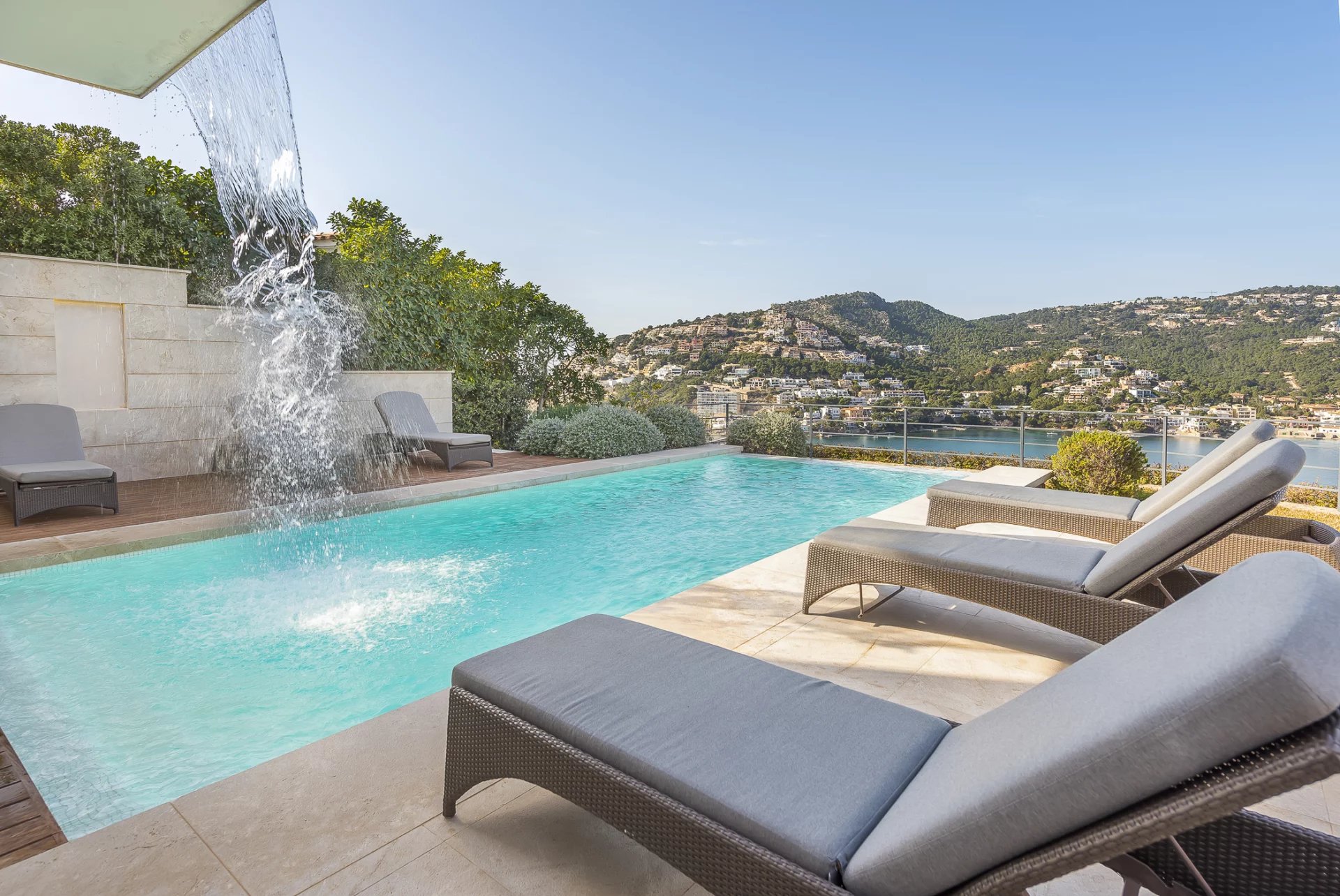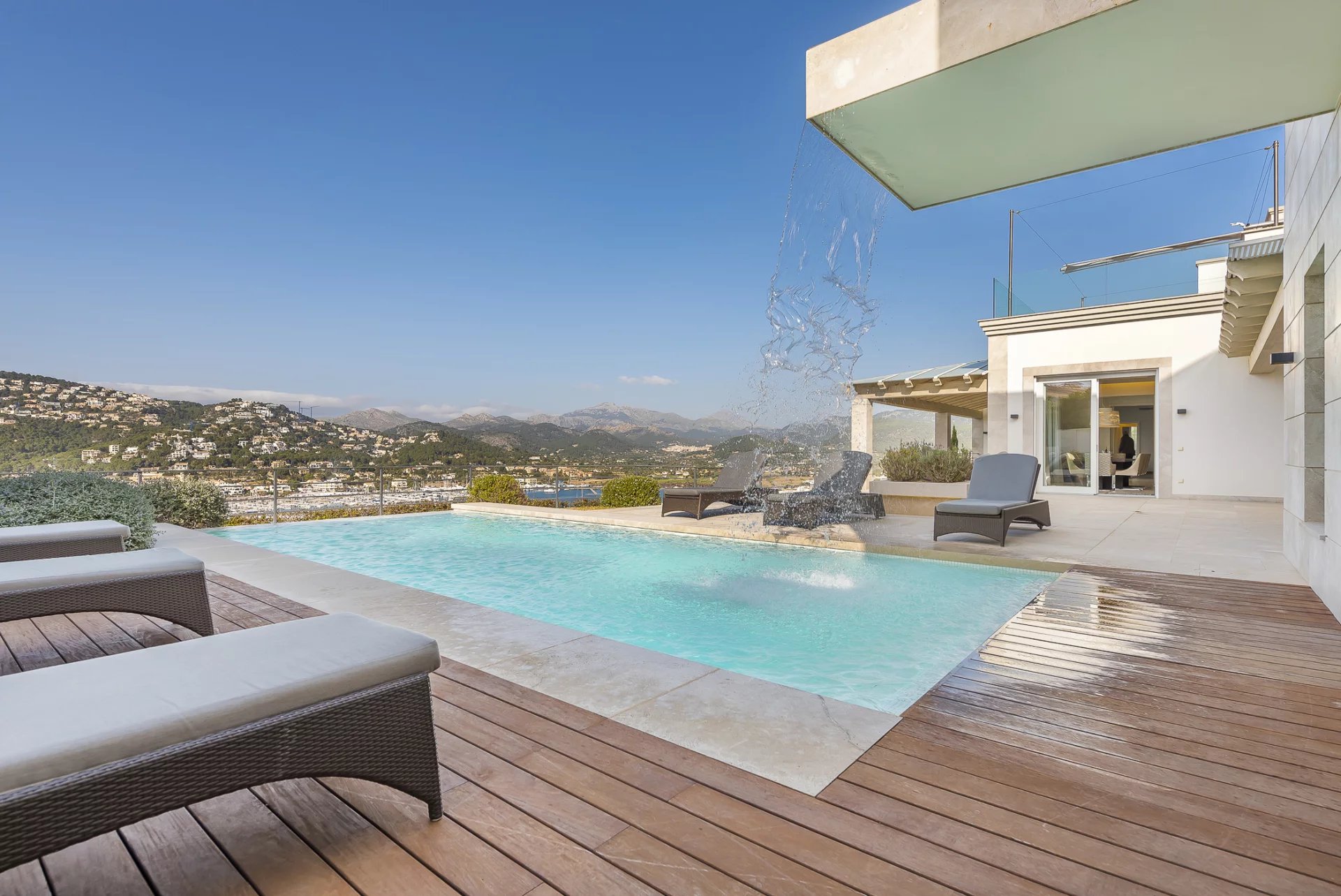 La villa dispose de son propre système domotique qui peut être contrôlé depuis n'importe quel endroit via un iPad. Le port et la promenade de Puerto de Andratx, avec ses nombreuses boutiques, galeries d'art et restaurants de première classe, sont accessibles à pied en quelques minutes. Les amateurs de golf apprécieront le terrain de golf voisin de Camp de Mar, l'un des nombreux terrains de golf de Majorque. La capitale de l'île, Palma, se trouve à environ 20 minutes en voiture, et l'aéroport est accessible en 25 minutes environ.
