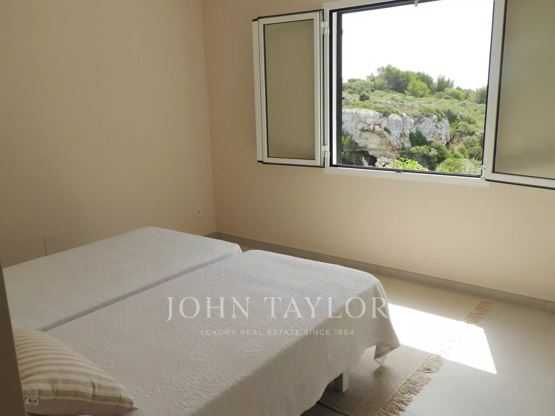 Situation: Villa Hermitage se trouve dans l'urbanisation de Binissafuller, à 2 minutes à pied de la plage, où vous trouverez également deux bars/restaurants. Les autres plages du sud-est (Binidalí, Binibeca, Punta Prima, Alcaufar) ainsi que la ville de San Luis, où vous trouverez toutes sortes de services, sont à environ 10 minutes en voiture. La capitale, Mahón, avec son port naturel, est à moins de 15 minutes en voiture. Sur un terrain de 1210 mètres carrés, il y a un bâtiment de deux étages avec un total de 135 mètres carrés de surface habitable. Il dispose d'une piscine privée (8x4 mètres) avec un parking extérieur pour 2 véhicules. Il dispose également d'une télévision et d'un accès internet (wifi).