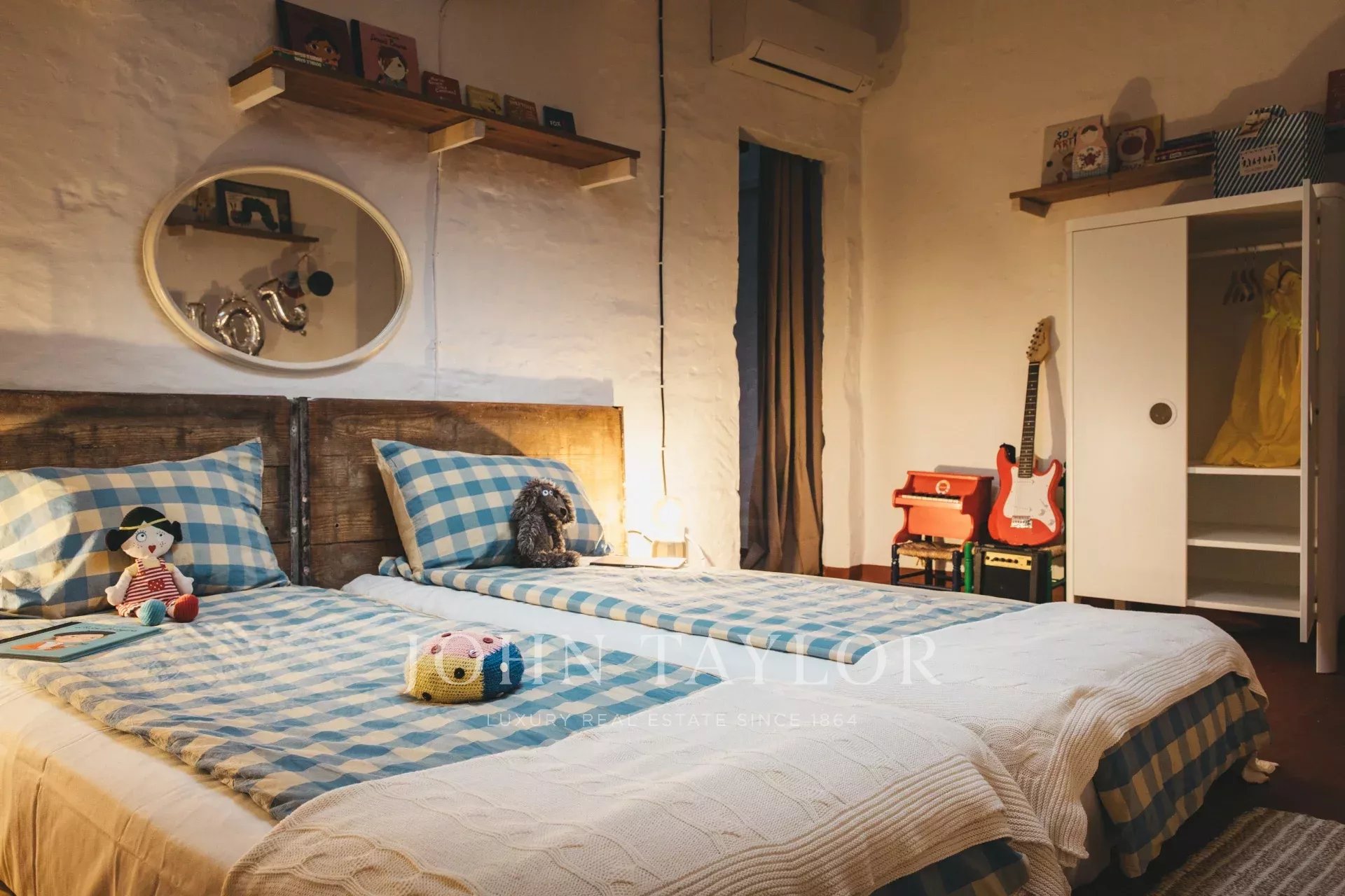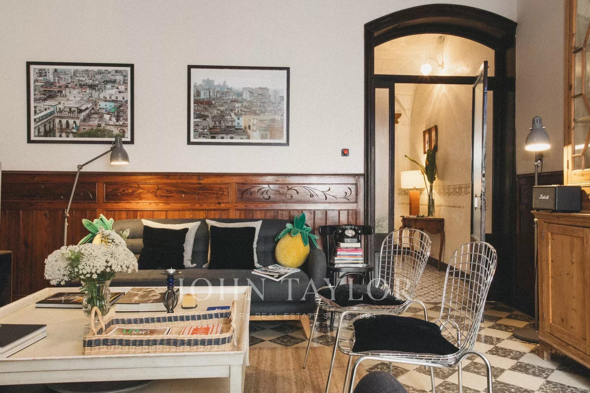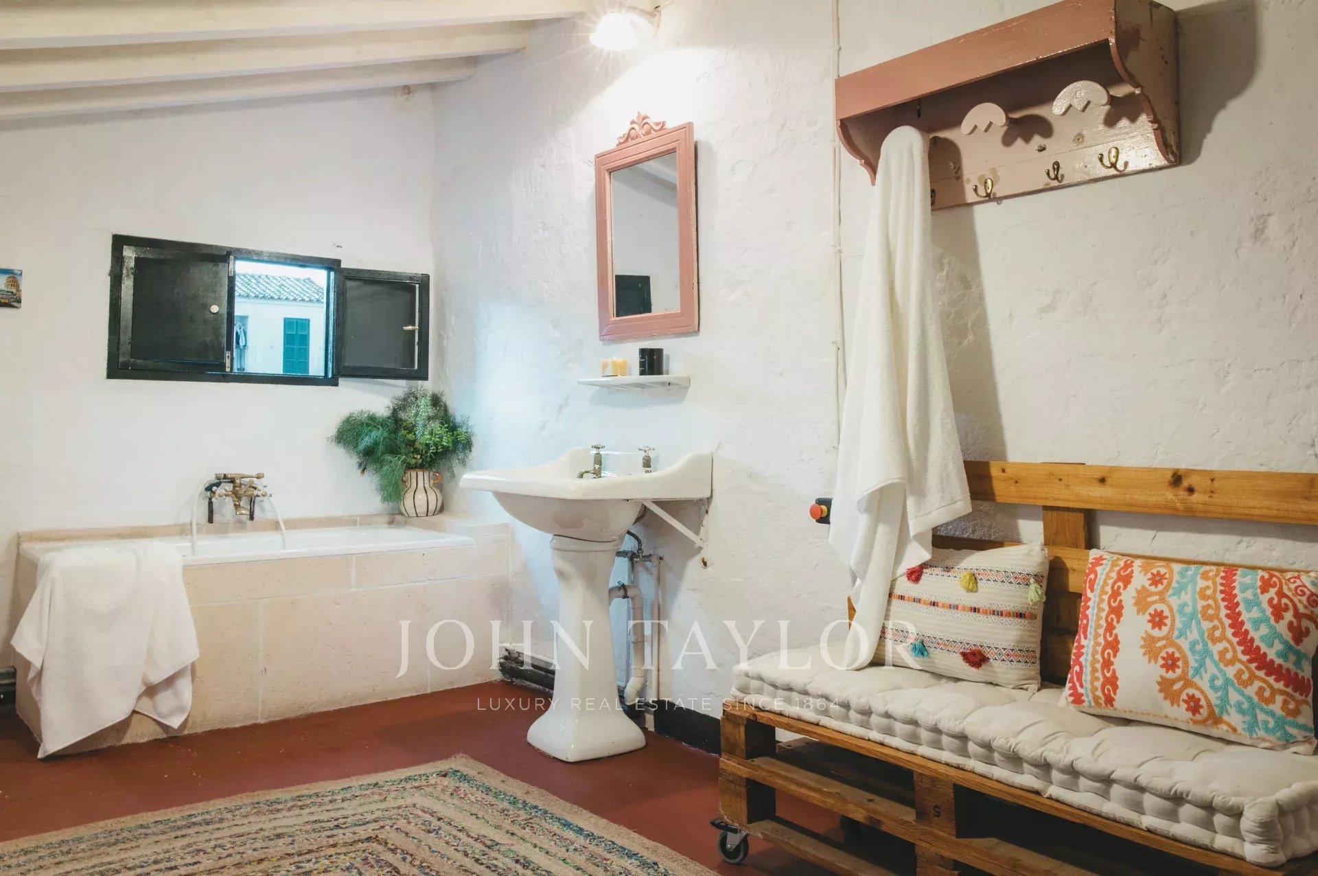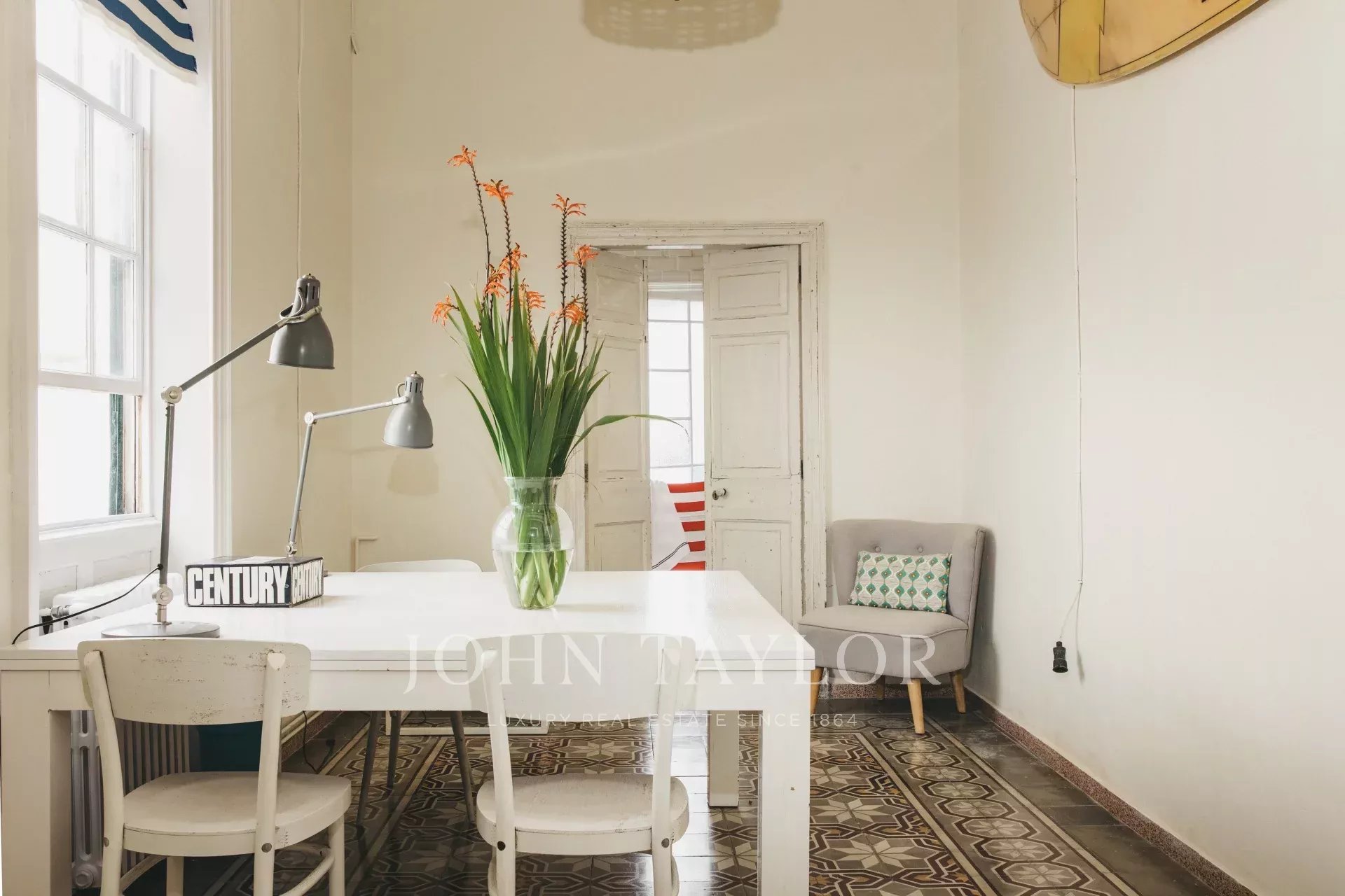 La Joia House a été décorée avec des pièces uniques et des œuvres d'art soigneusement sélectionnées, dans le respect de son histoire en tant qu'ancienne résidence d'une famille de bijoutiers minorquins. Chaque détail, des sols carrelés aux plafonds tapissés en passant par l'escalier majestueux, est synonyme d'authenticité, d'harmonie et de bon goût.