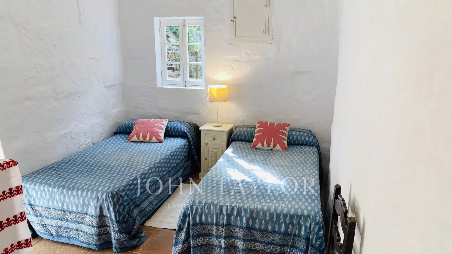 Premier étage : 1 chambre double avec air conditionné, 1 chambre double avec air conditionné et 1 salle de bain avec douche.