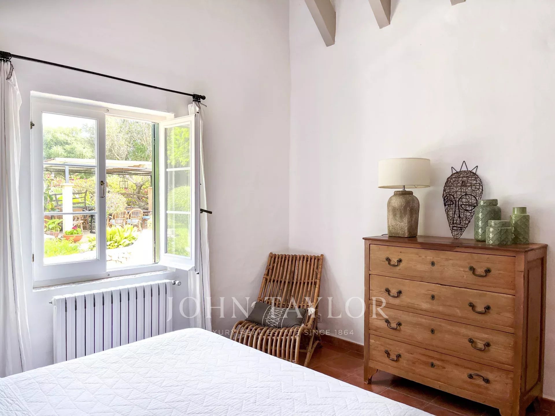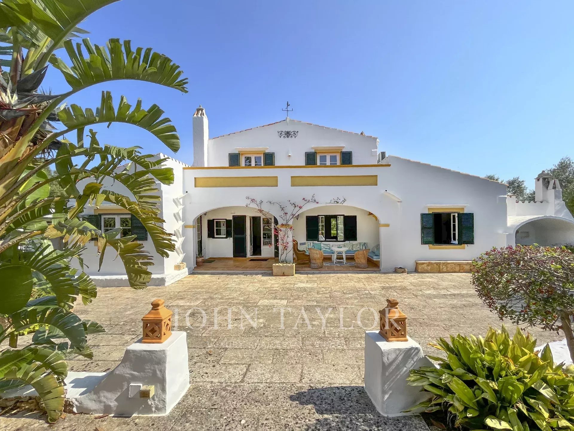 Extérieur : La propriété couvre environ 11 000 mètres carrés. La piscine est située sur le côté est de la maison et mesure 10 x 5 mètres. Près de la piscine, il y a une zone couverte pour manger en plein air. Le porche de la maison dispose de canapés intégrés typiques de Minorque. Le terrain a de grandes zones de pelouse, des oliviers et plusieurs zones très calmes où l'on peut se détendre à l'ombre.
