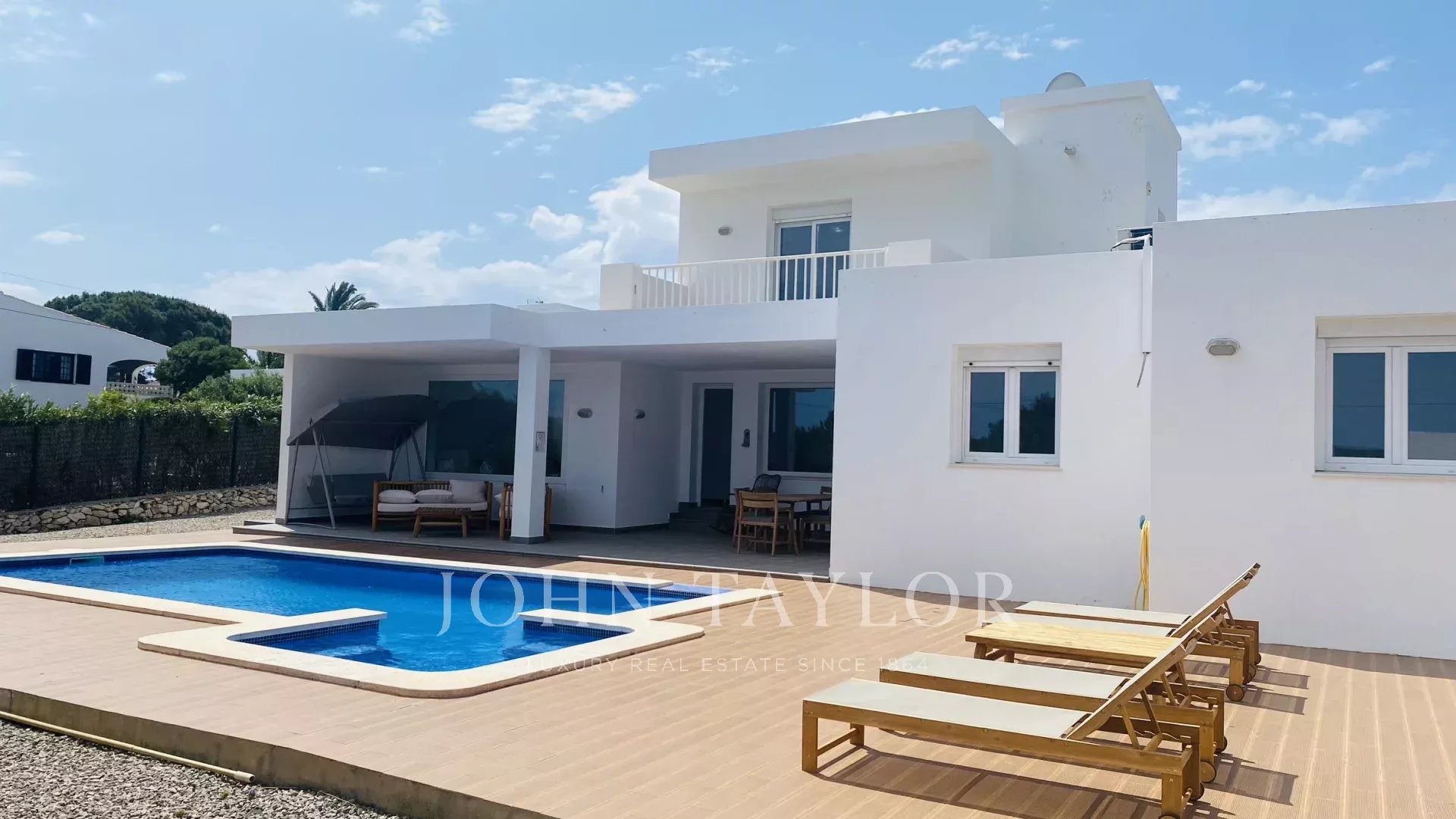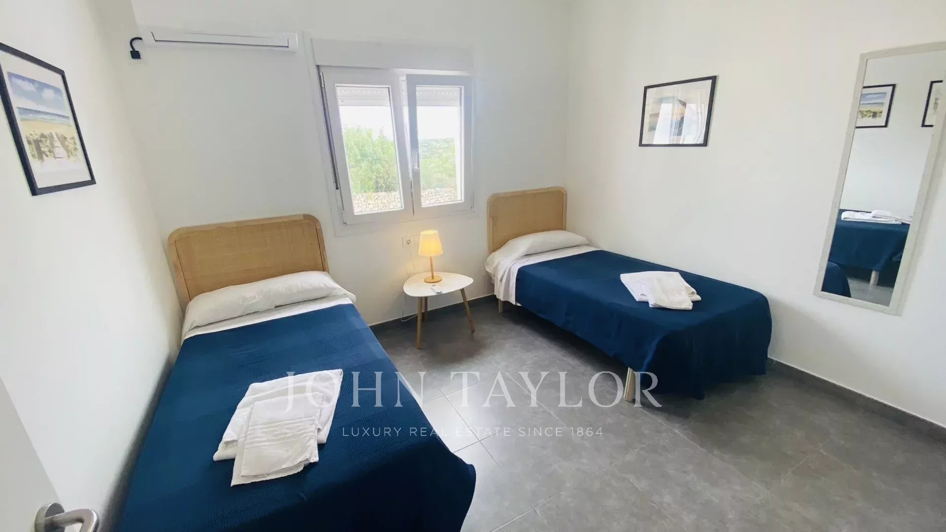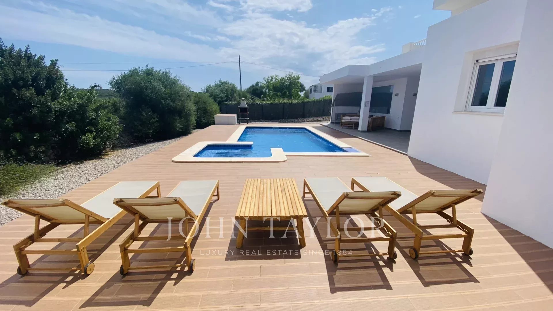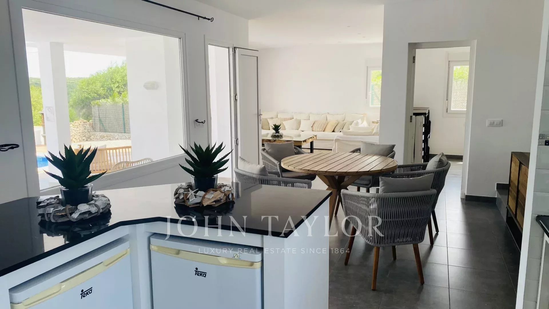 La villa à Binibeca possède 3 chambre(s) et une capacité pour 6 personnes. Logement de 180 m², meublé avec goût et moderne, avec vue sur la montagne et la piscine. Elle se trouve à 500 m du supermarché, 500 m de la gare routière, 500 m du restaurant "Bambú", 1 km du restaurant "Sa Musclera", 1 km de la plage de sable "Binibeca", 1 km de la plage de roche "Pueblo Pescadores Binibeca", 5 km de la ville "Sant Lluís", 15 km de l'aéroport "Menorca", 25 km du terrain de golf "Son Parc" et est située dans une zone tranquille au bord de la mer. Elle dispose de mobilier de jardin, terrain clôturé, terrasse de 30 m², lave-linge, barbecue, accès internet (wifi), balcon, chauffage par pompe à chaleur, climatisation dans tout le logement, piscine privée, parking extérieur dans le même bâtiment, 4 téléviseurs. La cuisine américaine, avec plaque vitrocéramique, est équipée de réfrigérateur, micro-ondes, four, congélateur, lave-vaisselle, vaisselle/couverts, ustensiles de cuisine, cafetière, friteuse, grille-pain et bouilloire.
