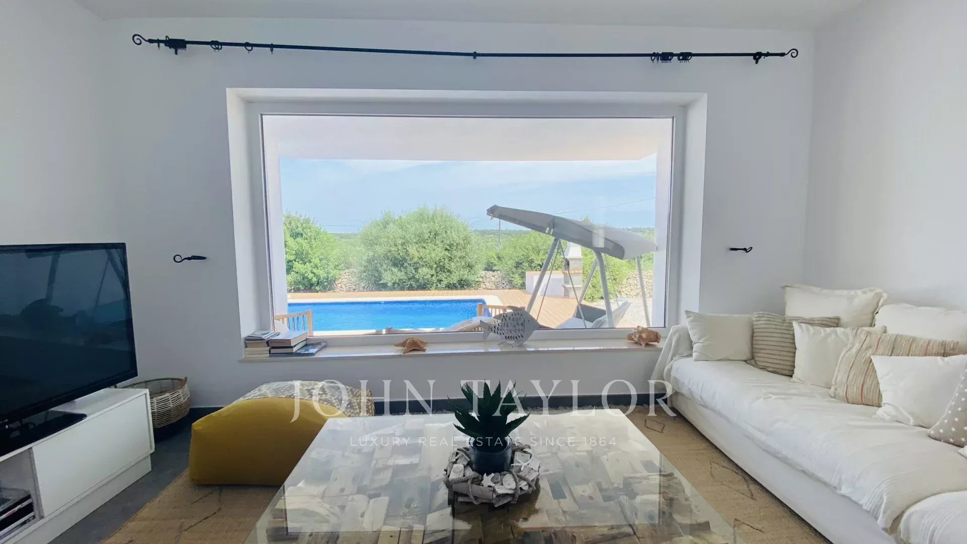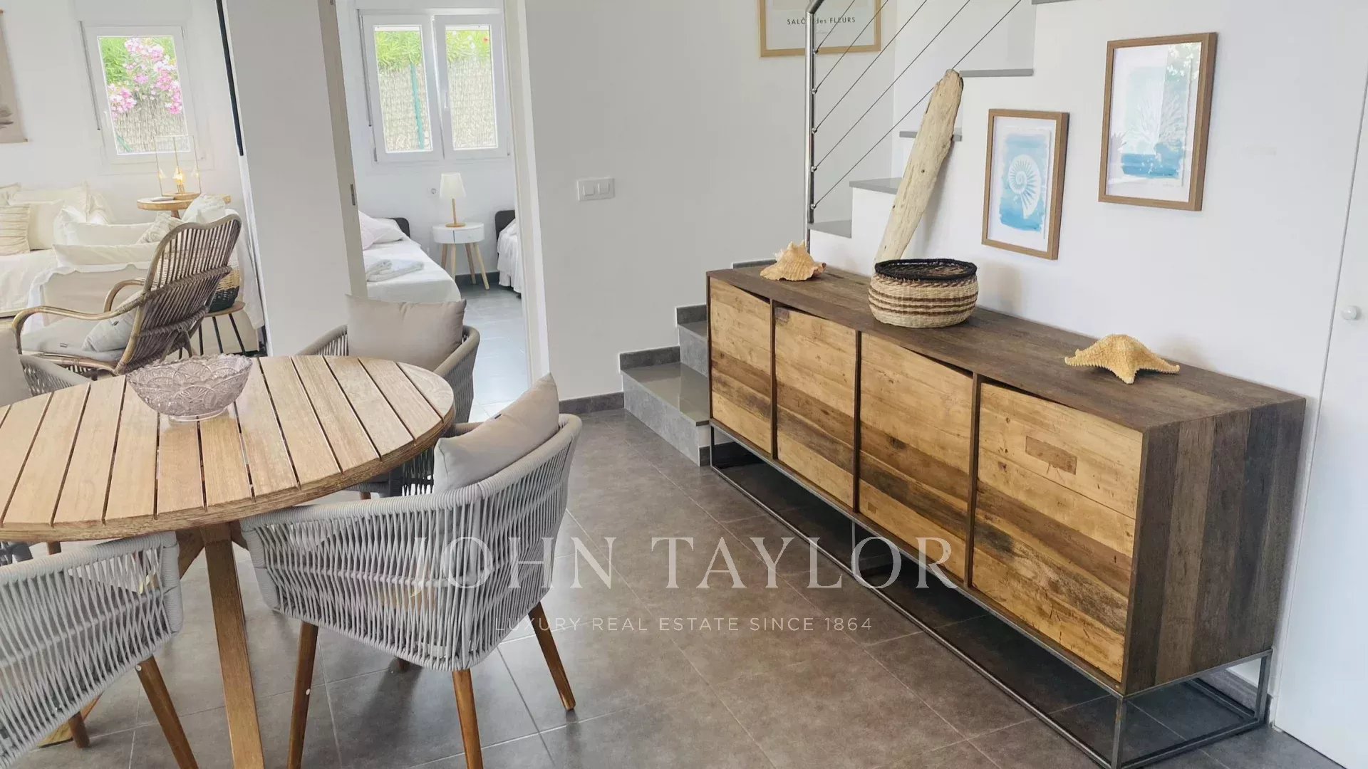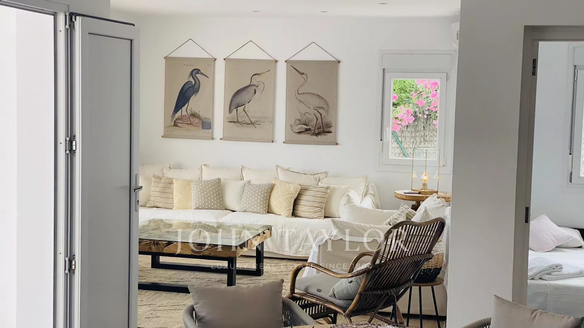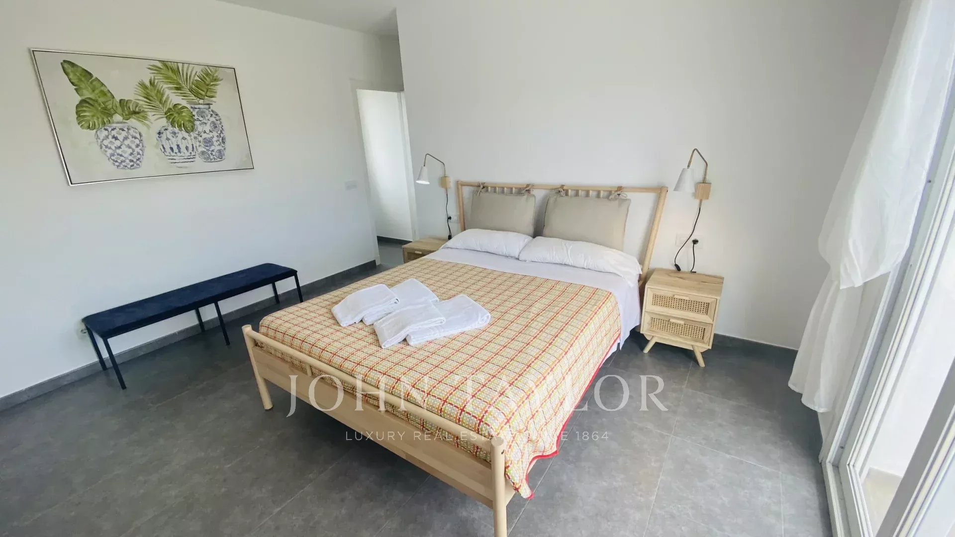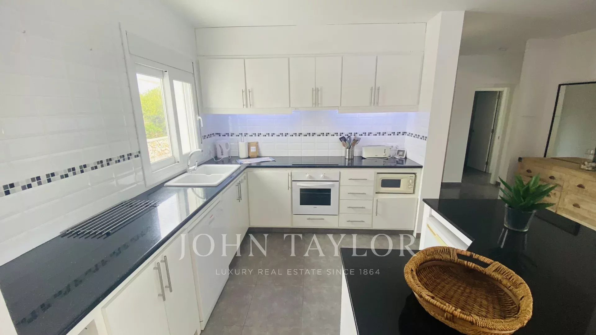 La villa à Binibeca possède 3 chambre(s) et une capacité pour 6 personnes. Logement de 180 m², meublé avec goût et moderne, avec vue sur la montagne et la piscine. Elle se trouve à 500 m du supermarché, 500 m de la gare routière, 500 m du restaurant "Bambú", 1 km du restaurant "Sa Musclera", 1 km de la plage de sable "Binibeca", 1 km de la plage de roche "Pueblo Pescadores Binibeca", 5 km de la ville "Sant Lluís", 15 km de l'aéroport "Menorca", 25 km du terrain de golf "Son Parc" et est située dans une zone tranquille au bord de la mer. Elle dispose de mobilier de jardin, terrain clôturé, terrasse de 30 m², lave-linge, barbecue, accès internet (wifi), balcon, chauffage par pompe à chaleur, climatisation dans tout le logement, piscine privée, parking extérieur dans le même bâtiment, 4 téléviseurs. La cuisine américaine, avec plaque vitrocéramique, est équipée de réfrigérateur, micro-ondes, four, congélateur, lave-vaisselle, vaisselle/couverts, ustensiles de cuisine, cafetière, friteuse, grille-pain et bouilloire.