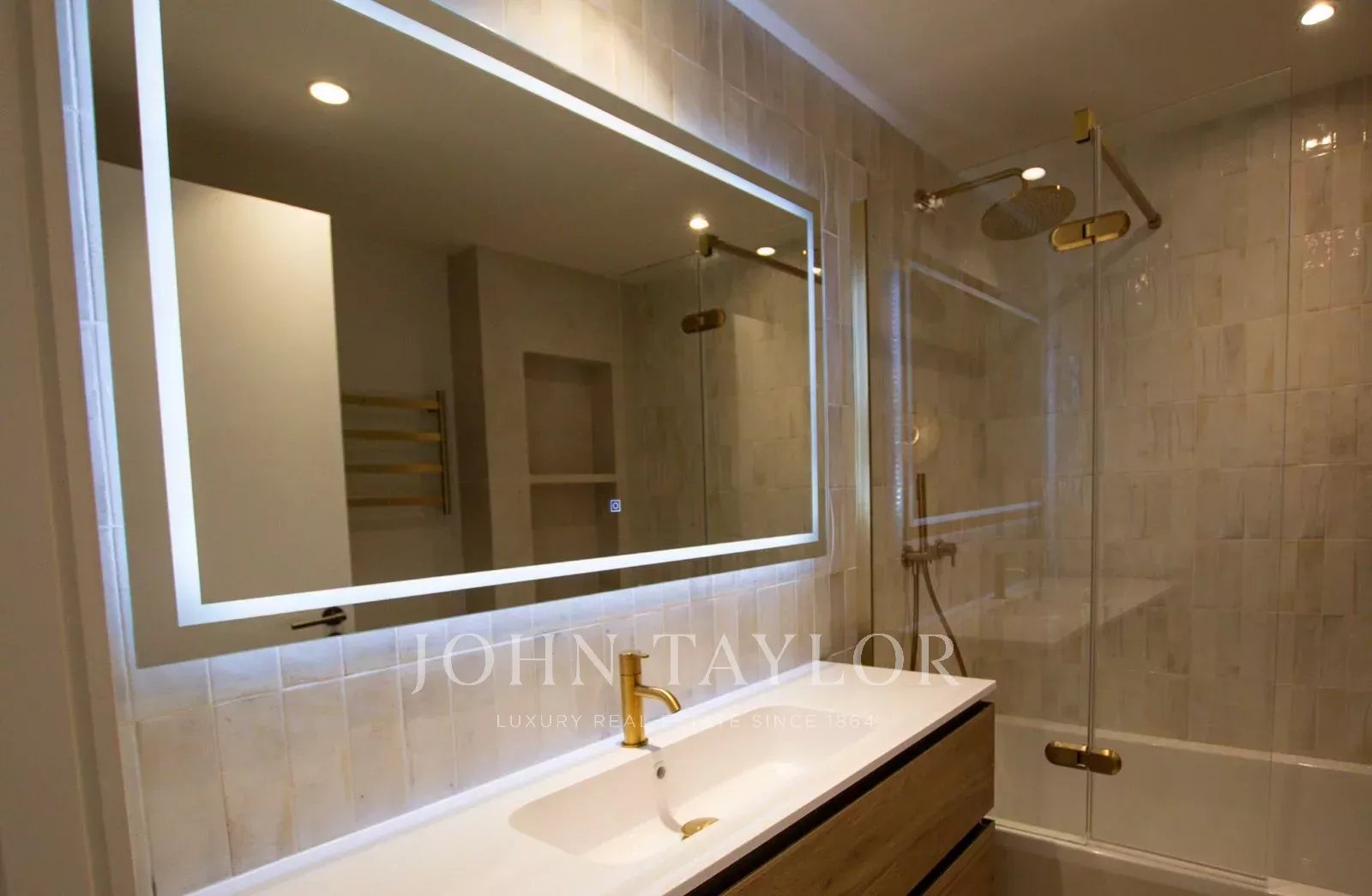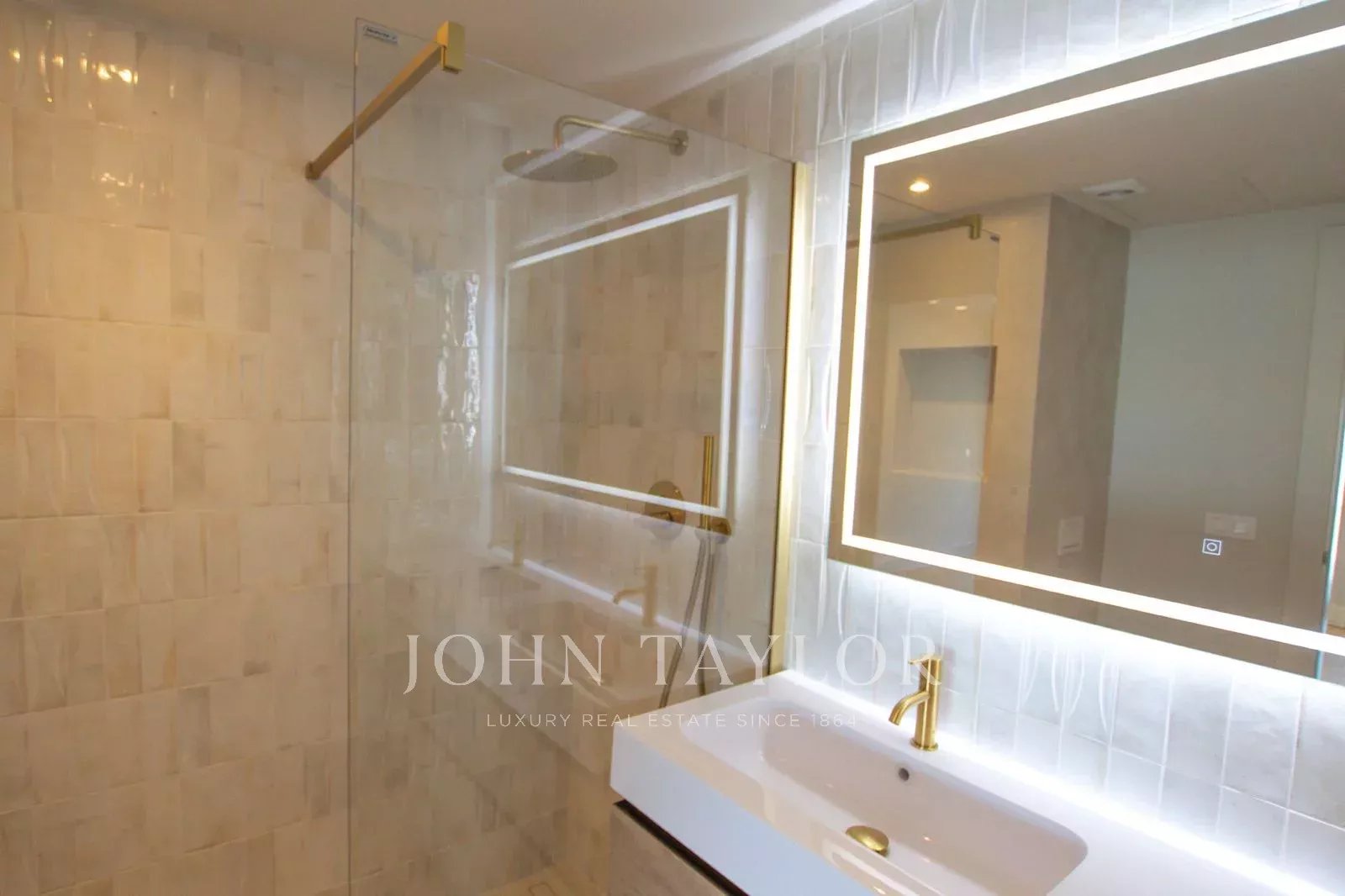 La cuisine ouverte entièrement équipée est intégrée de manière fonctionnelle et élégante à l'espace de vie. La chambre principale dispose d'une salle de bains privative et d'un accès direct à la terrasse, ce qui permet de profiter d'une vue incomparable dès le réveil. L'appartement dispose également de deux chambres supplémentaires et d'une deuxième salle de bains complète.