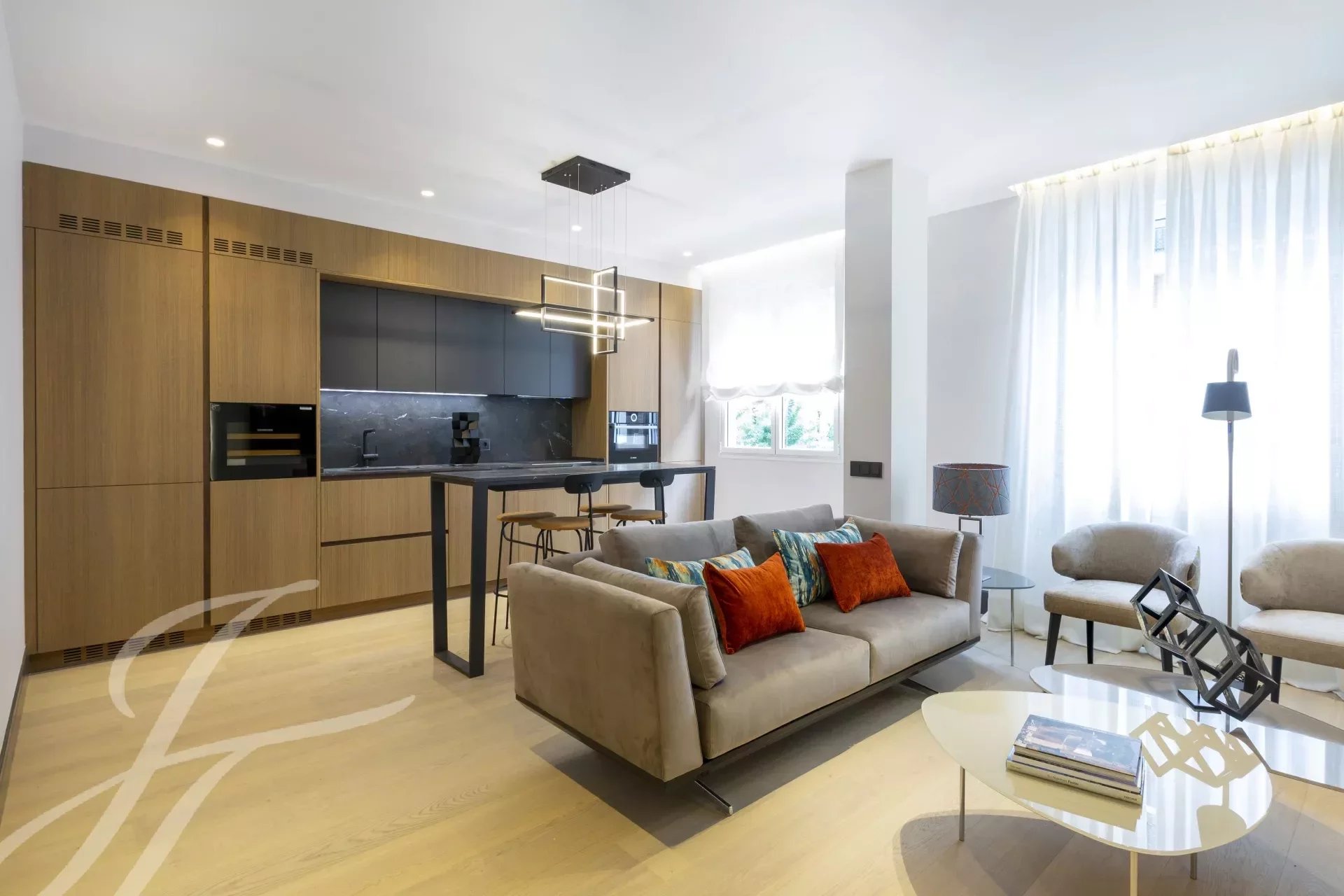 Situé au premier étage et orienté à l'ouest, cet appartement moderne se distingue par sa lumière naturelle, la qualité de ses finitions et le style moderne de son mobilier. Il dispose d'un salon avec cuisine ouverte équipée d'appareils haut de gamme, d'une charmante toilette d'invité et d'une chambre avec salle de bain attenante.