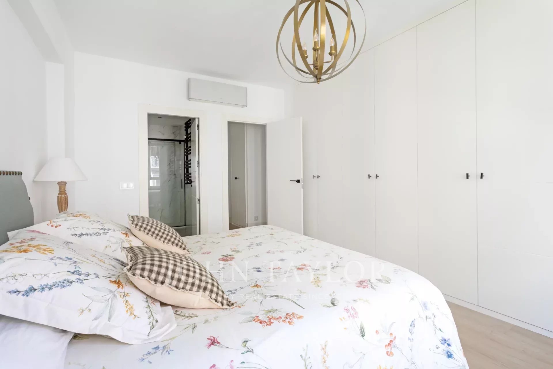 Cet élégant appartement dispose de quatre chambres à coucher, toutes extérieures, avec salle de bains privative et équipées de grandes armoires encastrées. Il y a également des toilettes pour les invités.