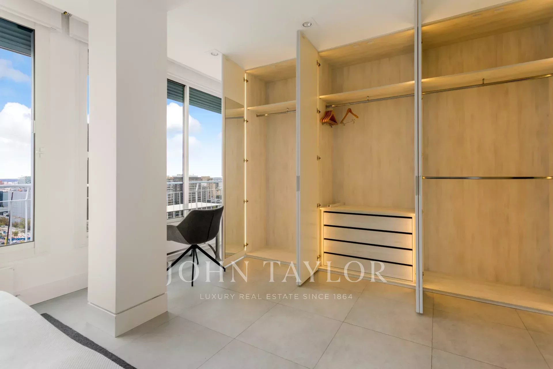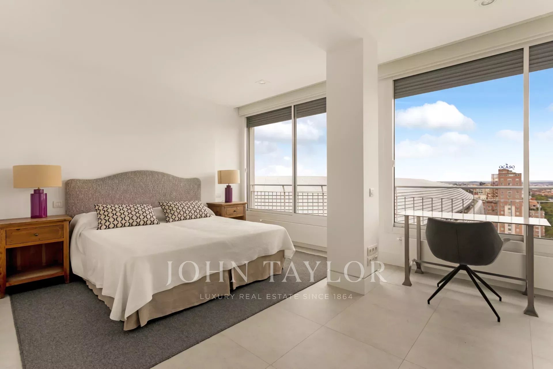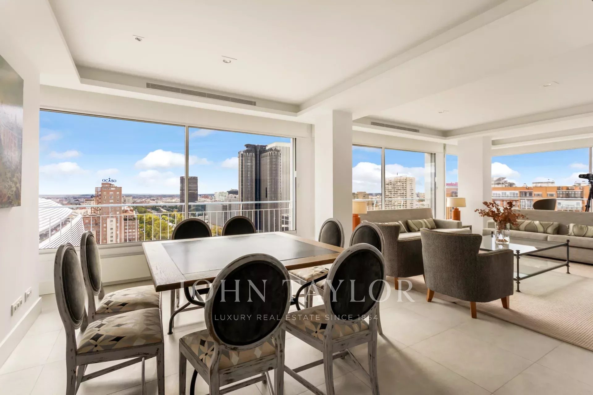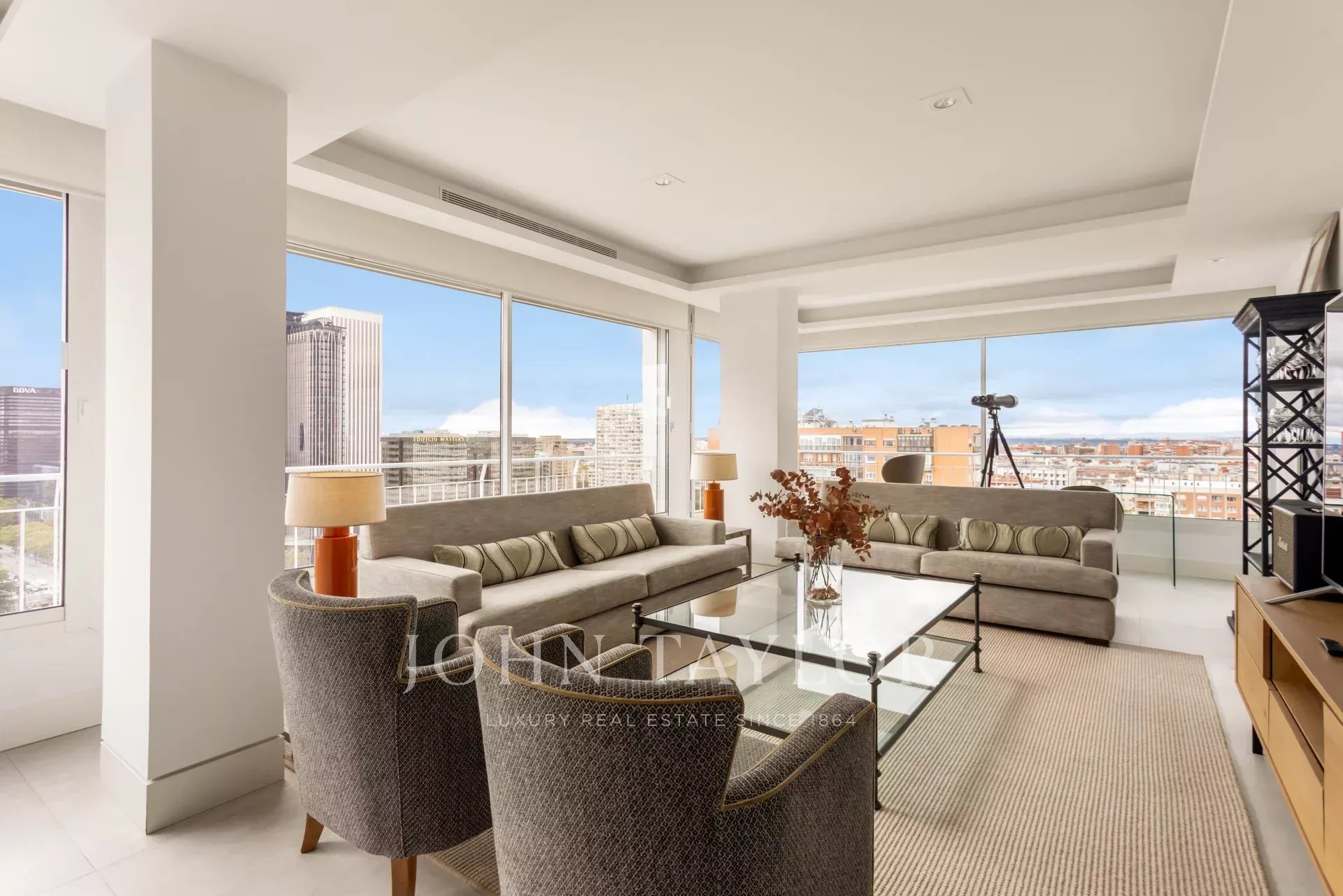 John Taylor propose à la location ce splendide appartement meublé avec de magnifiques vues sur Madrid et une luminosité débordante due à sa hauteur de 14 étages.