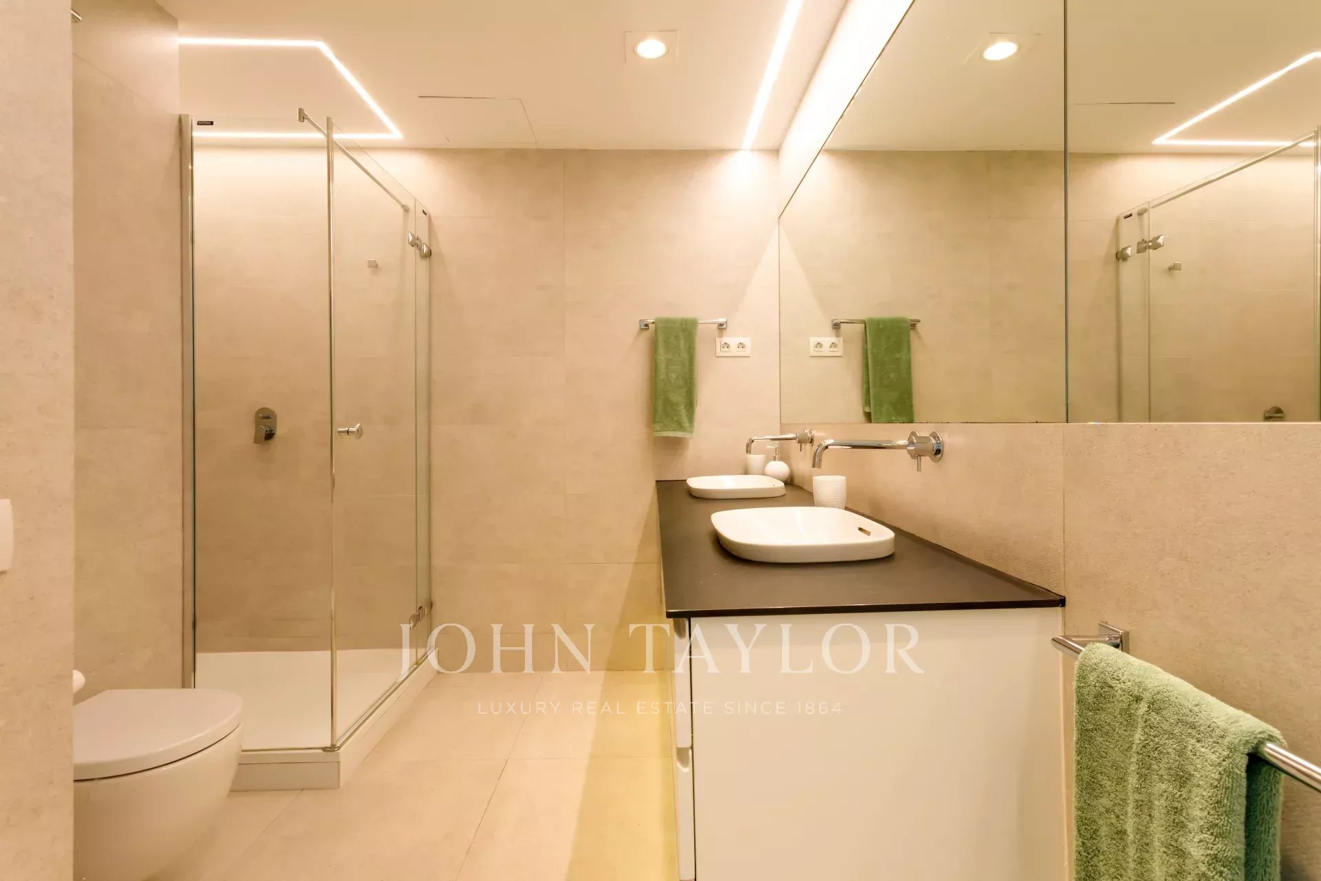 L'appartement est prêt à emménager, meublé et équipé de tous les détails et qualités tels que l'air conditionné avec thermostat dans chaque pièce, des lumières de courtoisie dans les salles de bains, un éclairage indirect réglable, des stores électriques et des volets roulants dans toutes les fenêtres, des miroirs anti-buée dans les salles de bains, des sols en pierre naturelle, des fenêtres en PVC avec une excellente isolation thermique et acoustique, de nombreuses armoires encastrées avec éclairage interne, un système de sonorisation et de télévision, un système de chauffage pour soutenir le chauffage central de l'immeuble, etc....