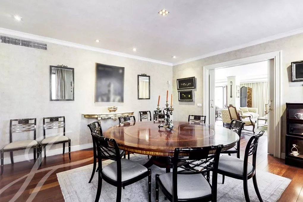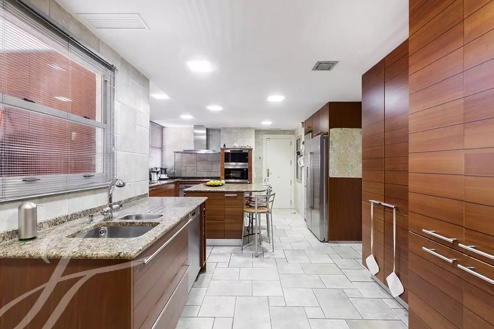 Depuis le hall d'entrée, où l'élégant escalier avec rampe en fer forgé nous conduit à l'étage des chambres, nous avons accès au grand salon de plus de 80m² complètement ouvert et avec de grandes fenêtres qui lui donnent une grande luminosité et une sensation d'espace, Le salon est relié à une grande salle à manger formelle, et celle-ci à une autre salle à manger plus informelle, d'où l'on accède à la magnifique cuisine de près de 30m2, la zone de service est complétée par une buanderie-repassage, une chambre de service avec salle de bain et une terrasse de séchage.
