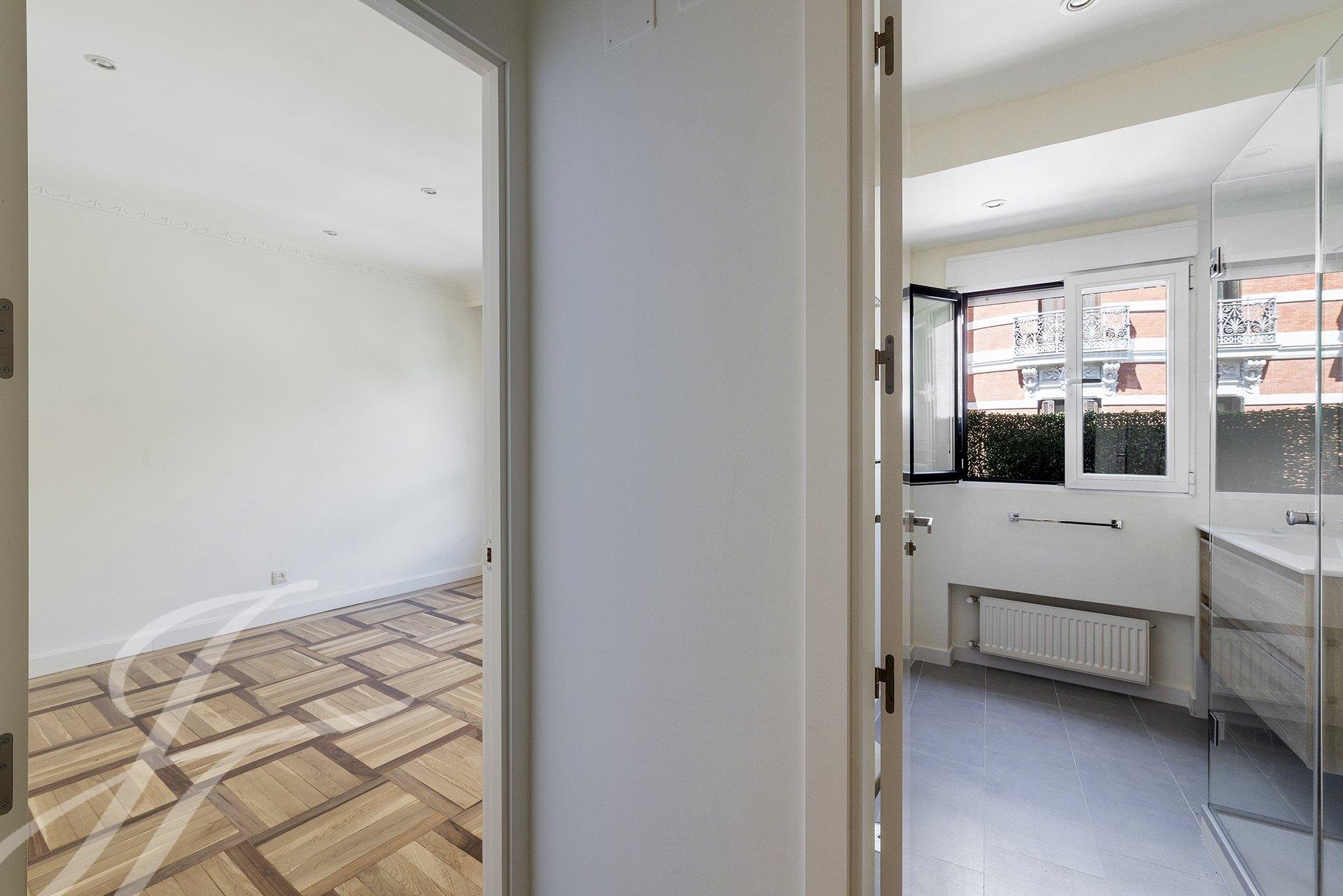 Le salon est le cœur de la maison, offrant une fantastique luminosité et sensation d'espace, ainsi que de multiples possibilités pour la distribution des meubles. En été, la hauteur des arbres offre ombre, fraîcheur et tranquillité. En hiver, les bâtiments voisins nous rappellent constamment l'endroit où nous nous trouvons. La chambre principale dispose d'une salle de bains attenante, d'armoires encastrées et d'un dressing. La deuxième chambre dispose d'armoires encastrées et de sa propre salle de bains complète, toutes rénovées et extérieures, sans aucun doute un luxe difficile à trouver. La cuisine offre tout le confort, ainsi qu'une buanderie et une salle de repassage, une salle de bains complète et sa propre entrée de service.