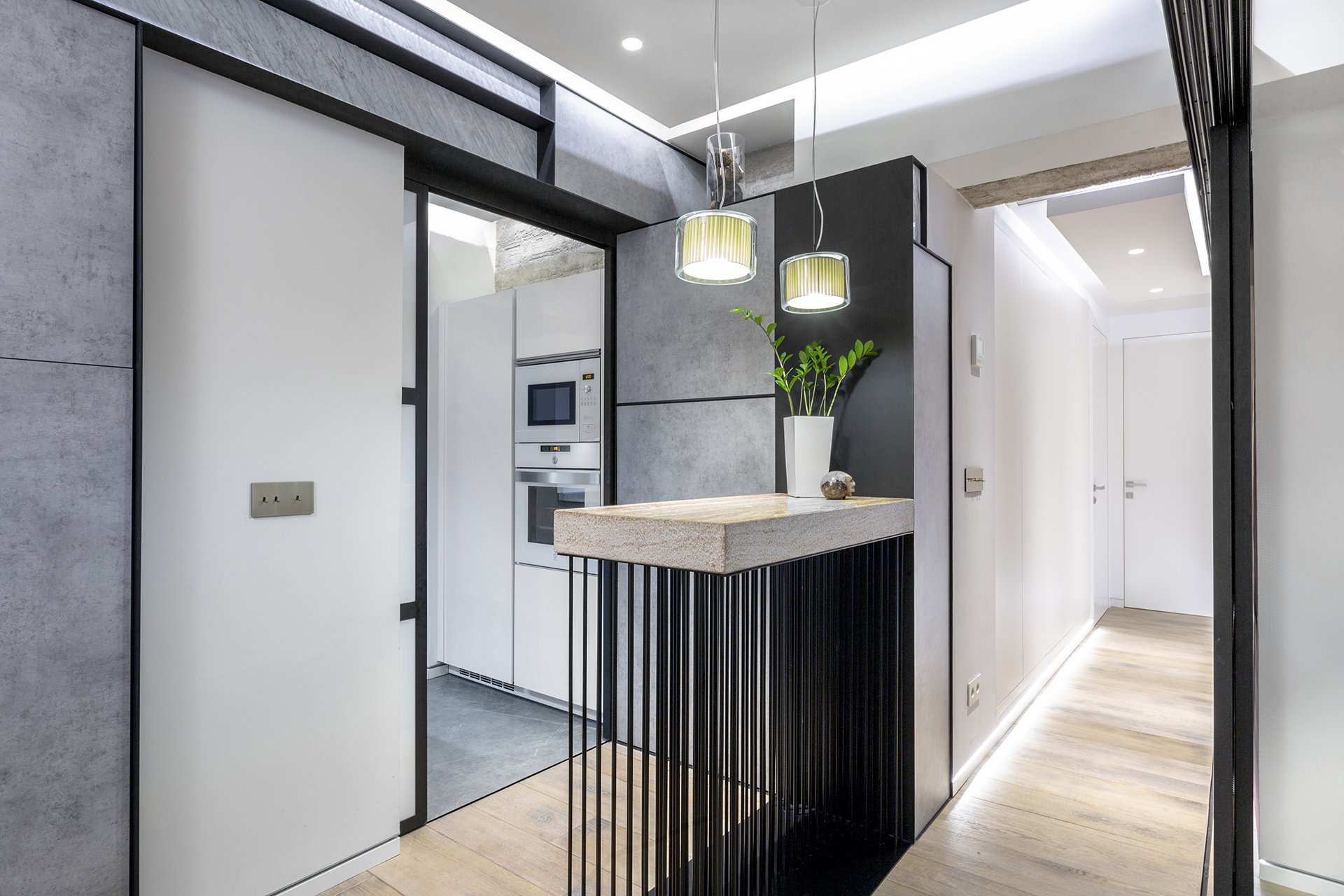 Magnifique appartement récemment rénové avec un goût exquis et un style moderne par le studio d'architecture Amodal, où chaque détail a été soigneusement soigné. Il faut souligner l'excellent projet d'éclairage qui, avec les matériaux nobles et le mobilier bien choisi, lui confère une atmosphère moderne et accueillante.