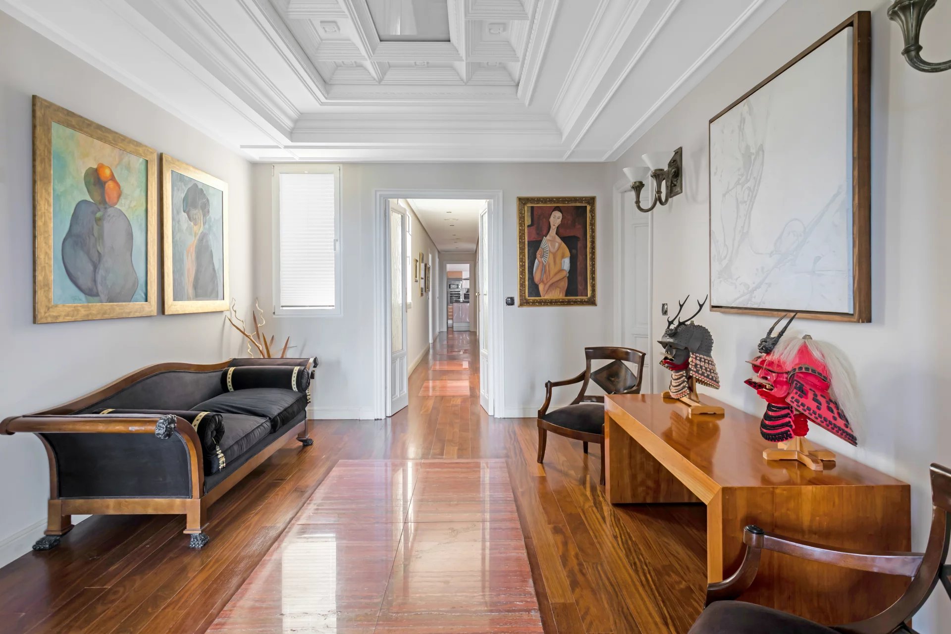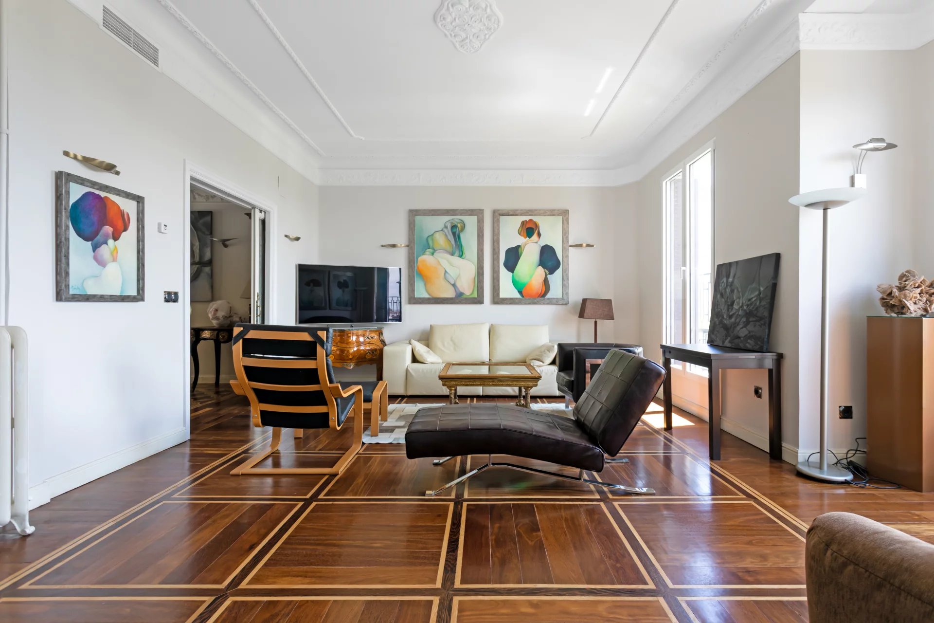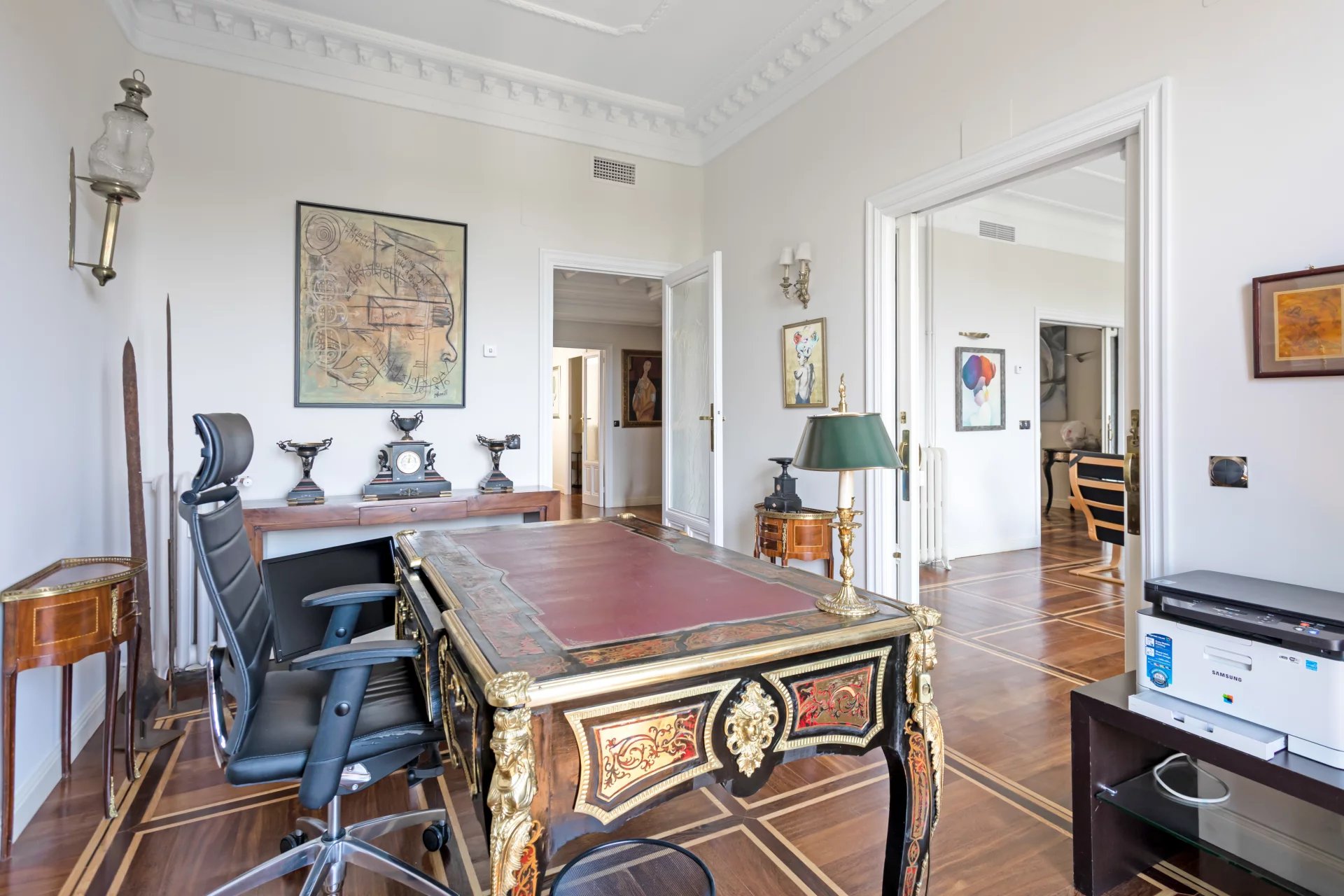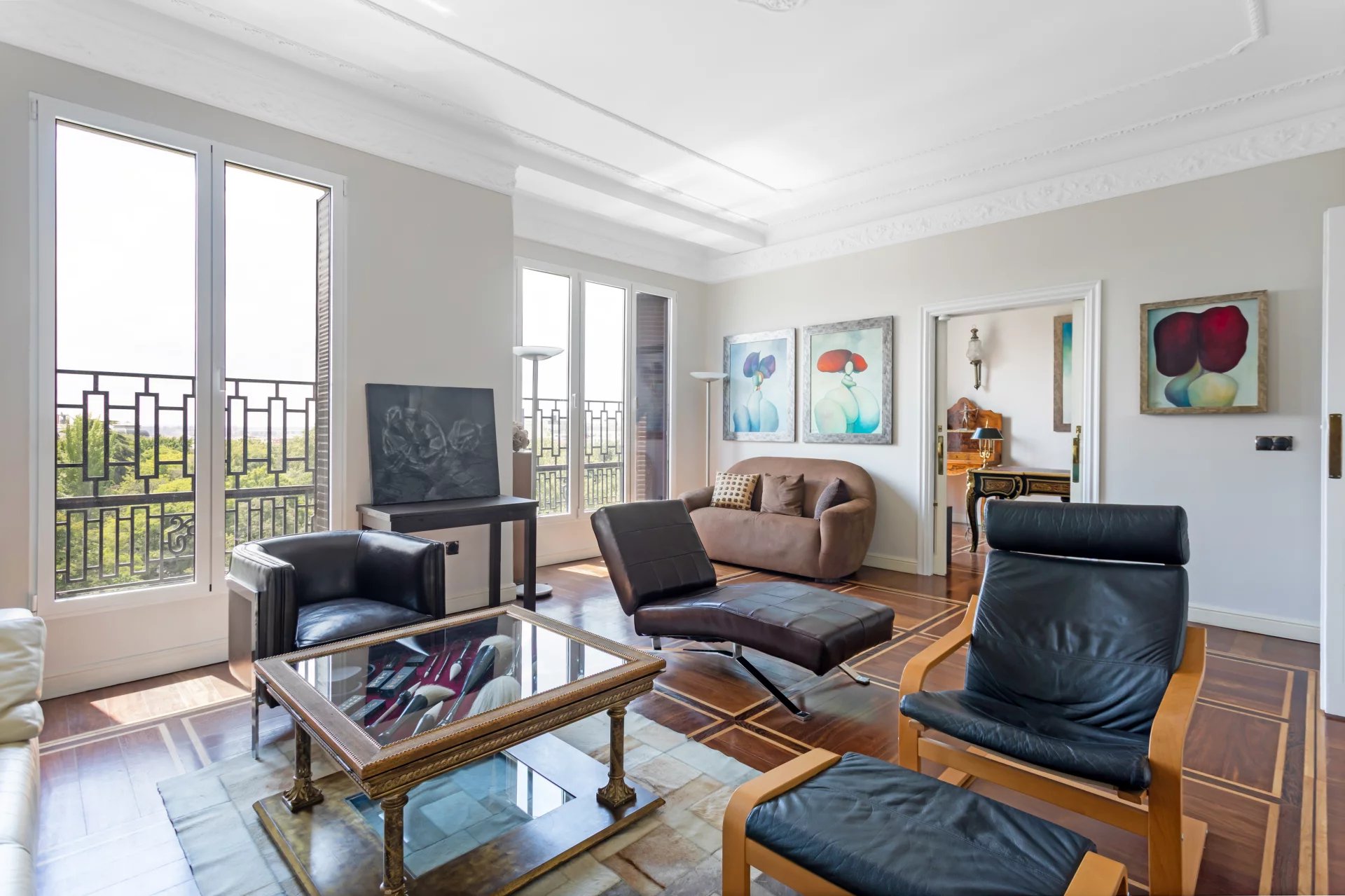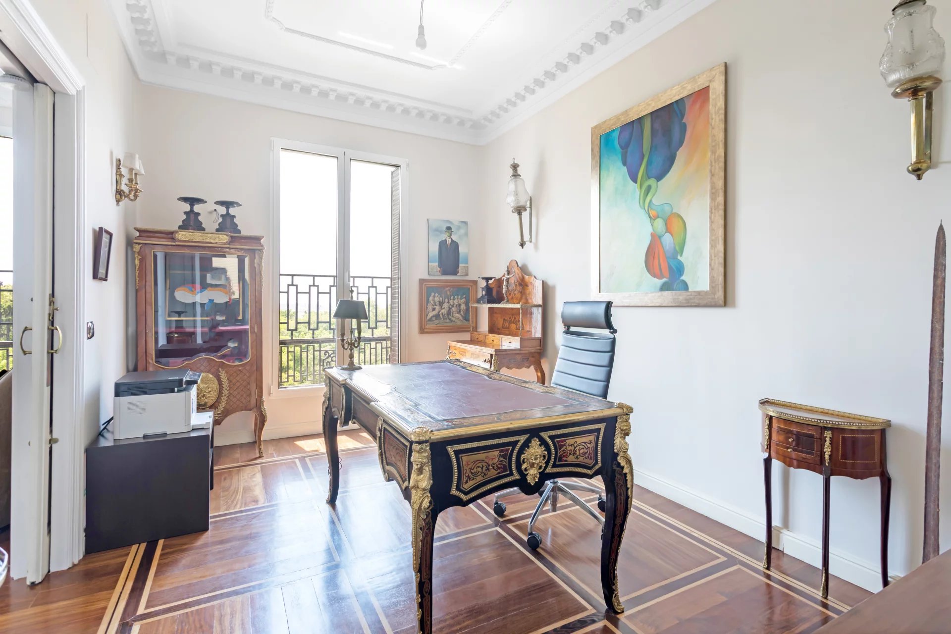 Le double salon et le bureau sont baignés de lumière naturelle grâce aux trois balcons qui offrent des vues uniques sur le jardin botanique et l'orientation sud.