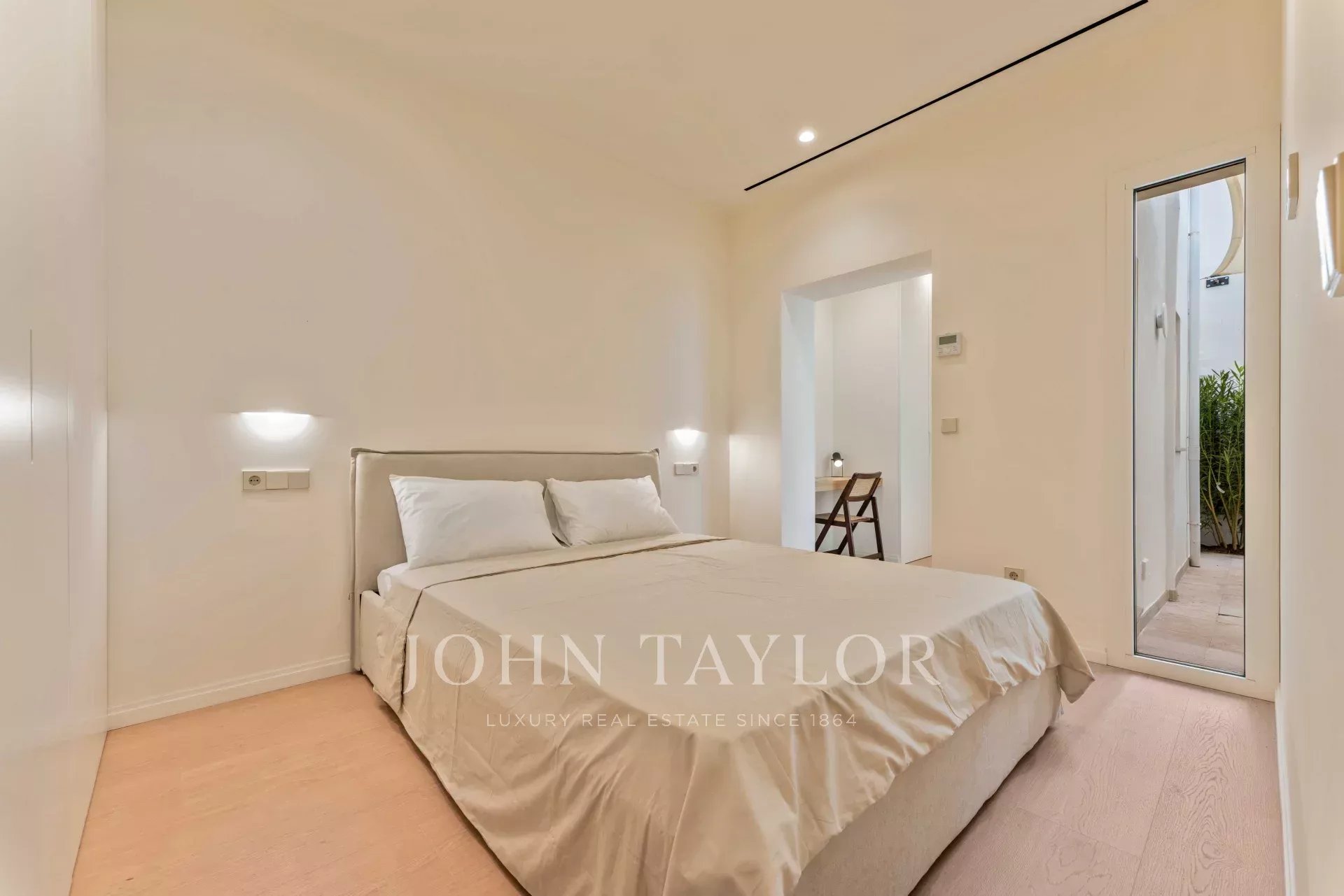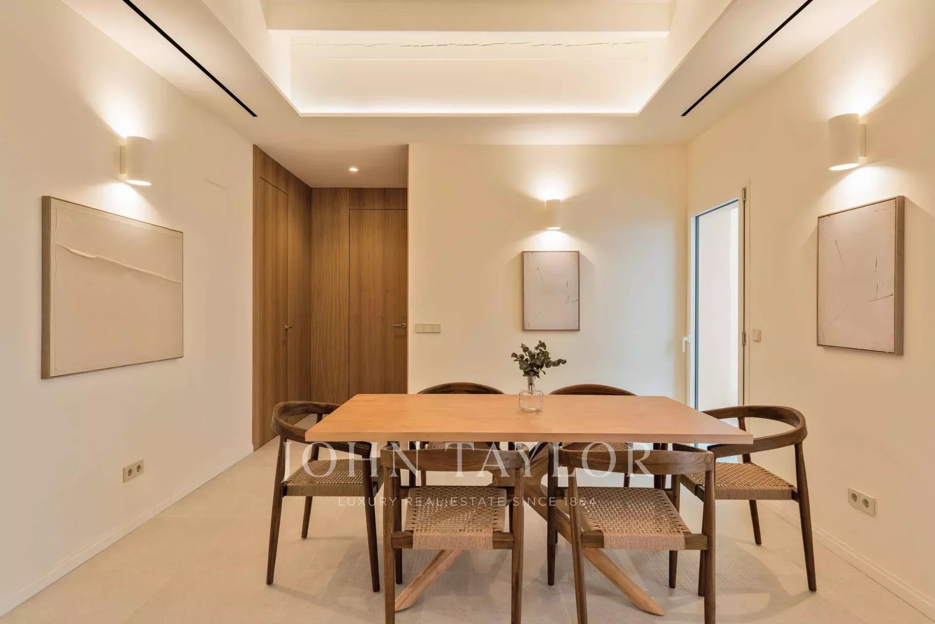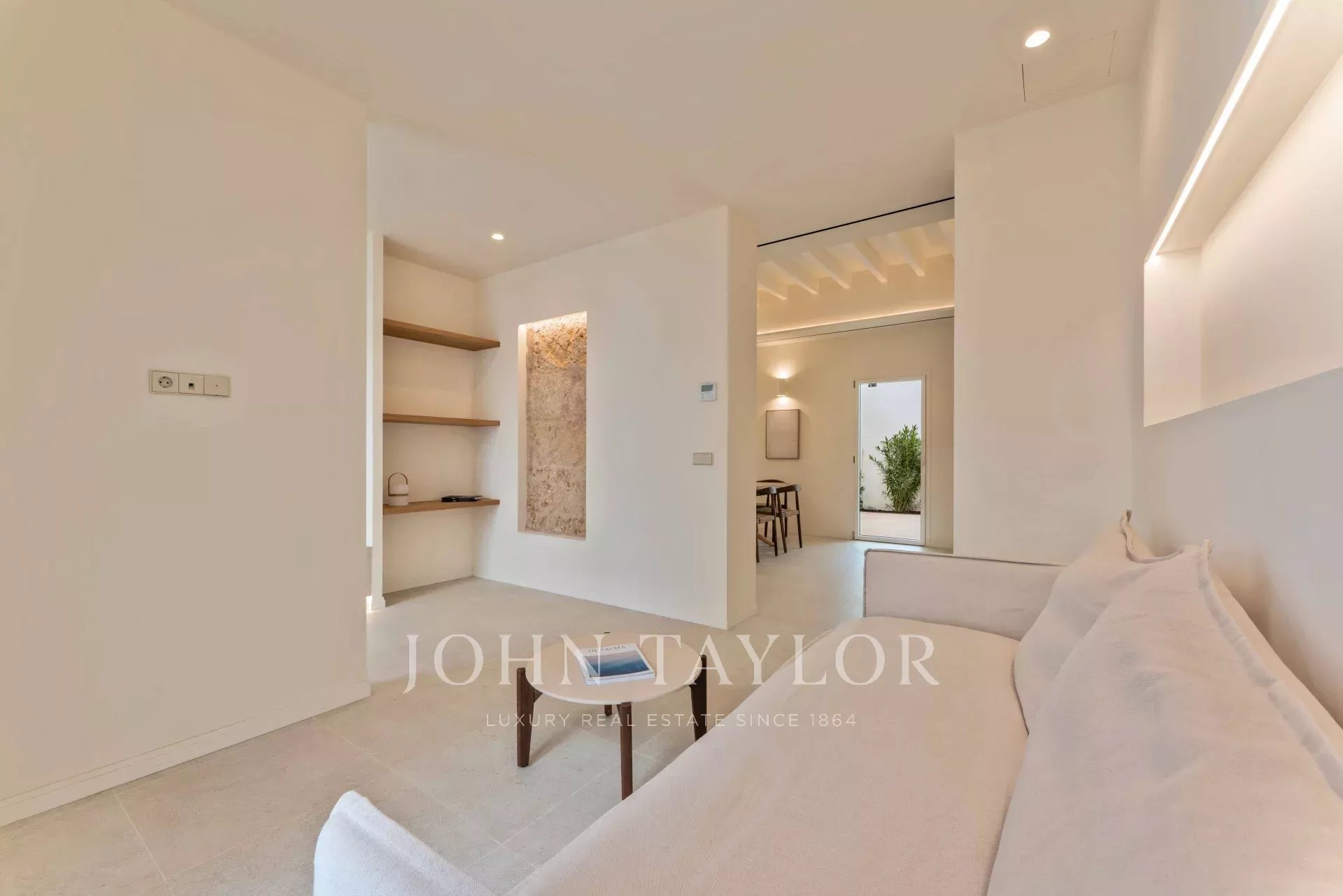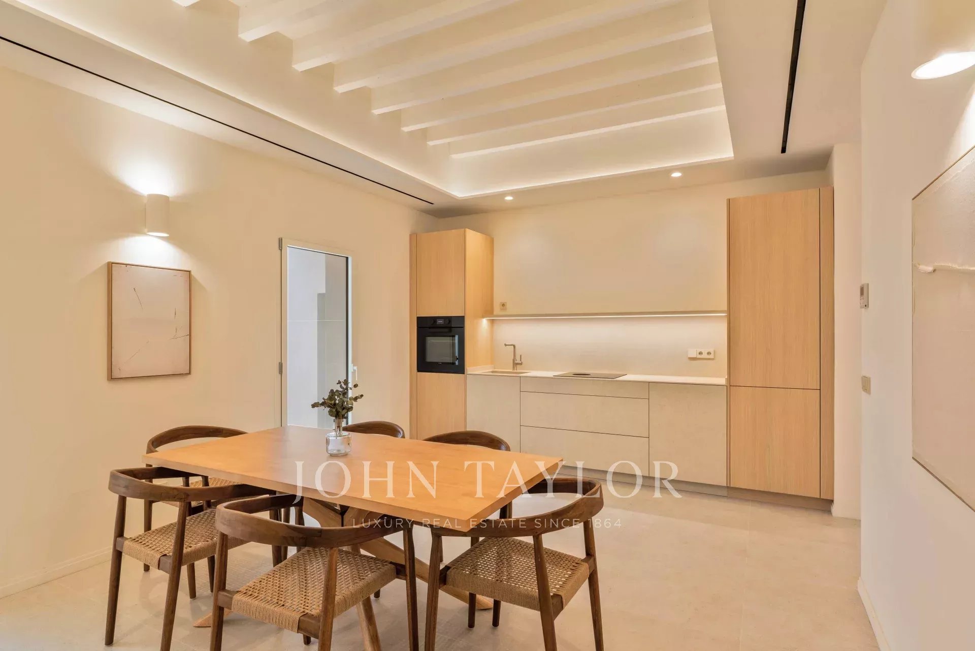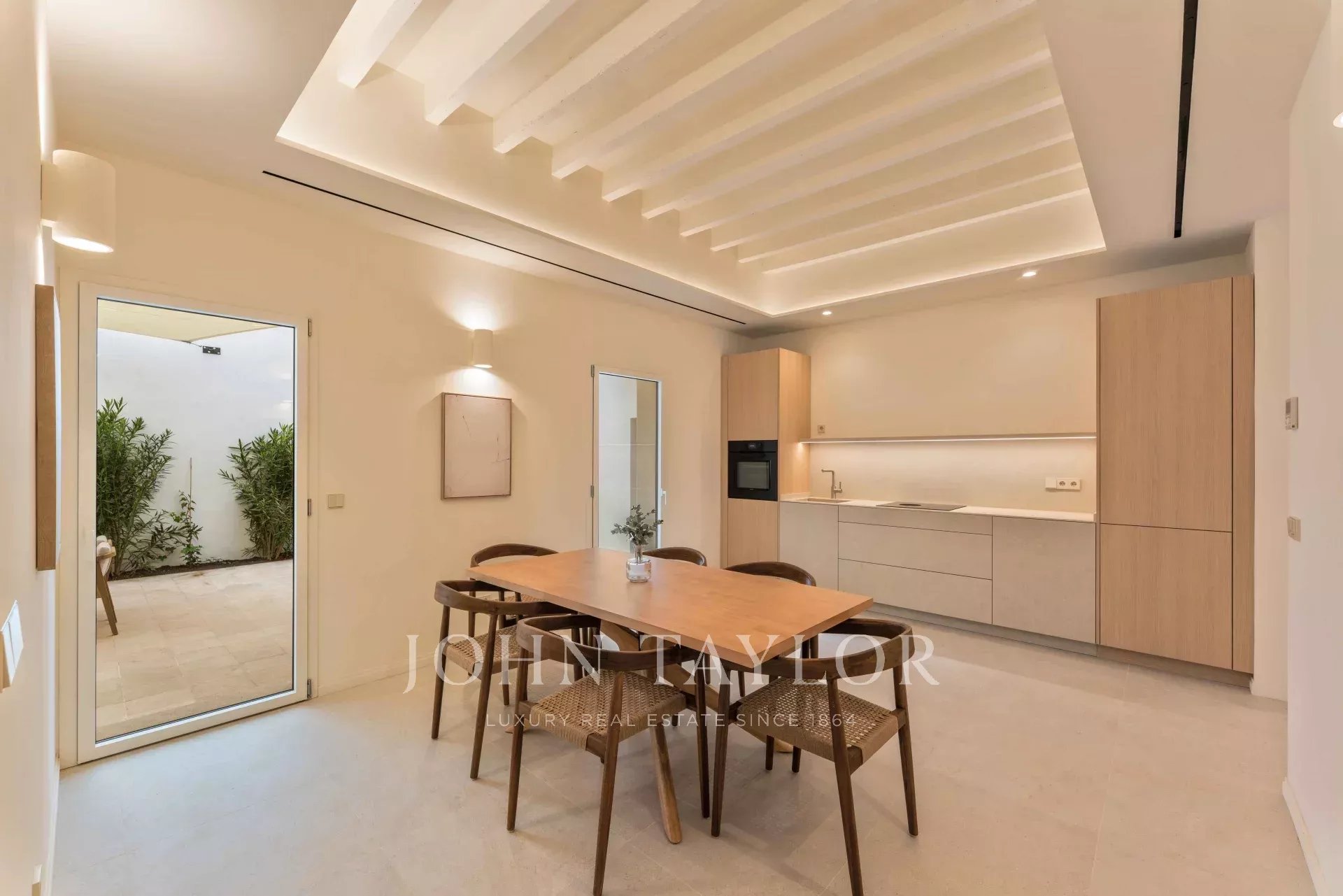 Cet appartement moderne situé au rez-de-chaussée a été entièrement rénové en 2025 et se trouve à quelques pas du marché de Santa Catalina, du club de tennis et du centre historique de Palma. D'une superficie d'environ 150 m², il comprend un salon et une salle à manger ouverts avec une cuisine design entièrement équipée (Bora, Siemens), deux chambres doubles, deux salles de bains et un bureau. La terrasse d'environ 40 m² vous invite à profiter de la vie en plein air au cœur de la ville et comprend une petite piscine, idéale pour se rafraîchir pendant les journées chaudes. L'appartement est entièrement meublé et bénéficie d'une finition de haut niveau avec la climatisation, des fenêtres à double vitrage et des équipements sur mesure. Il s'agit d'une opportunité de location exclusive dans l'un des quartiers les plus recherchés de Palma. Période de location minimum : 6 mois.