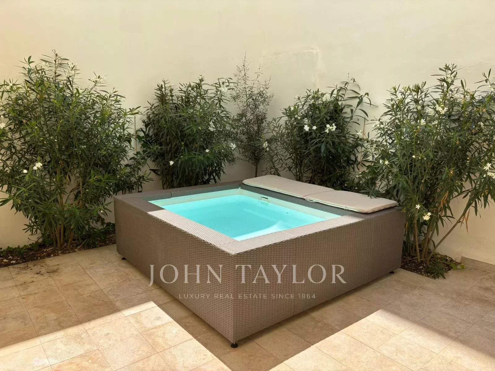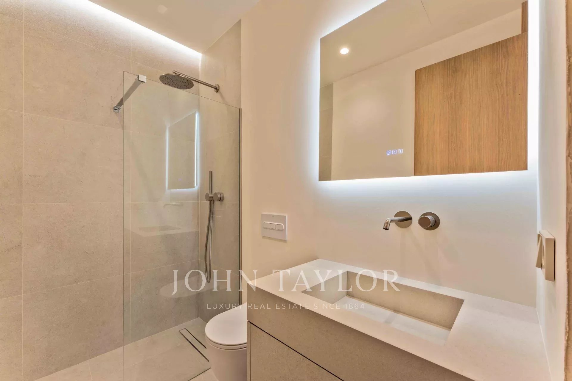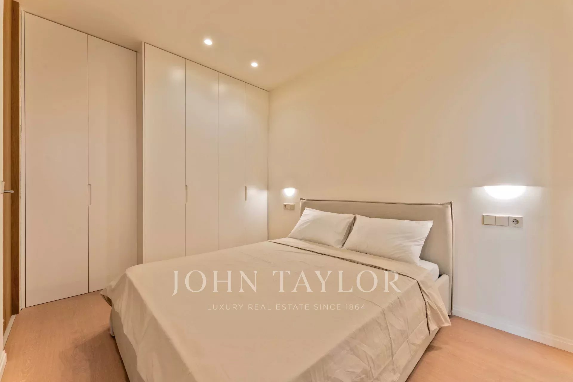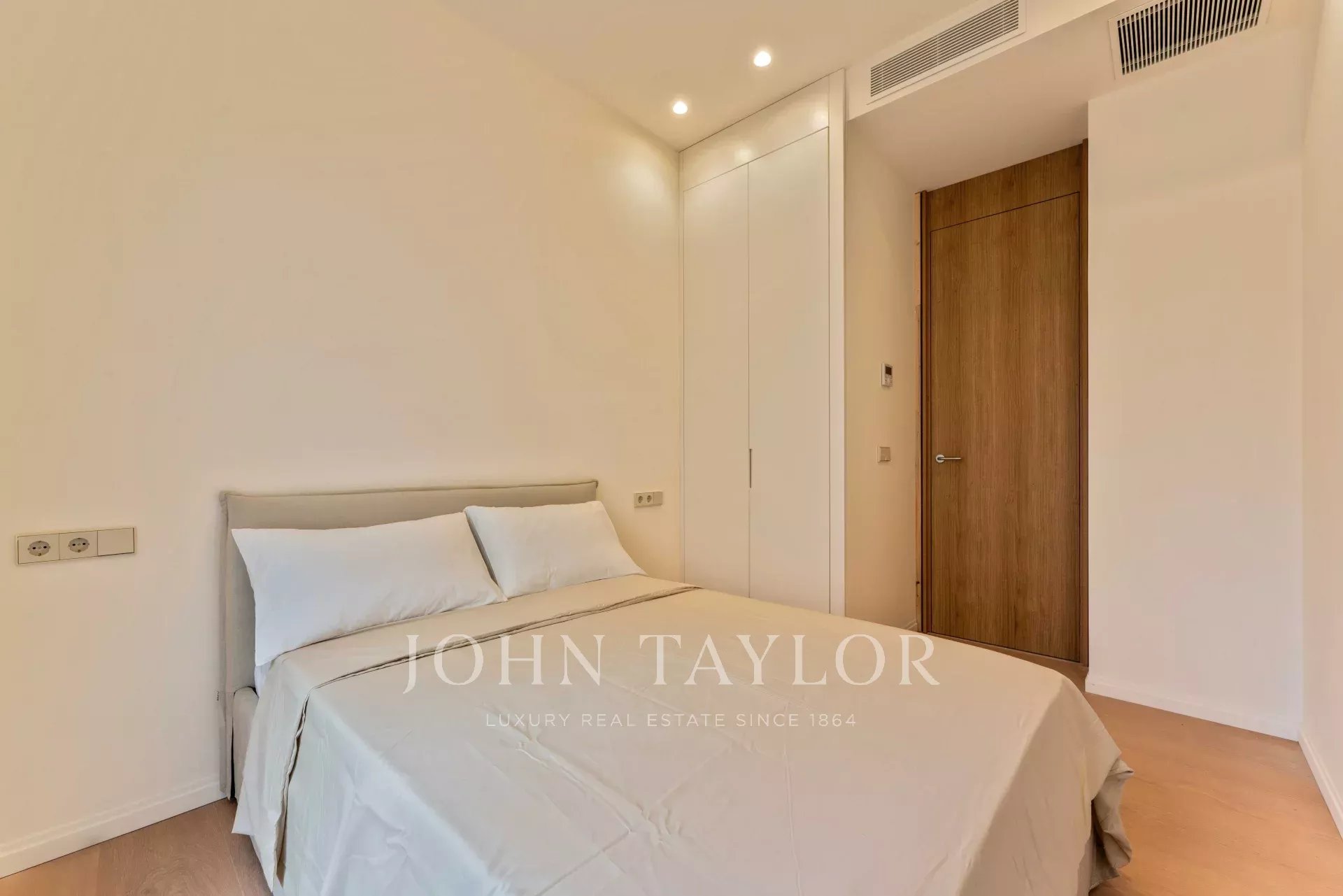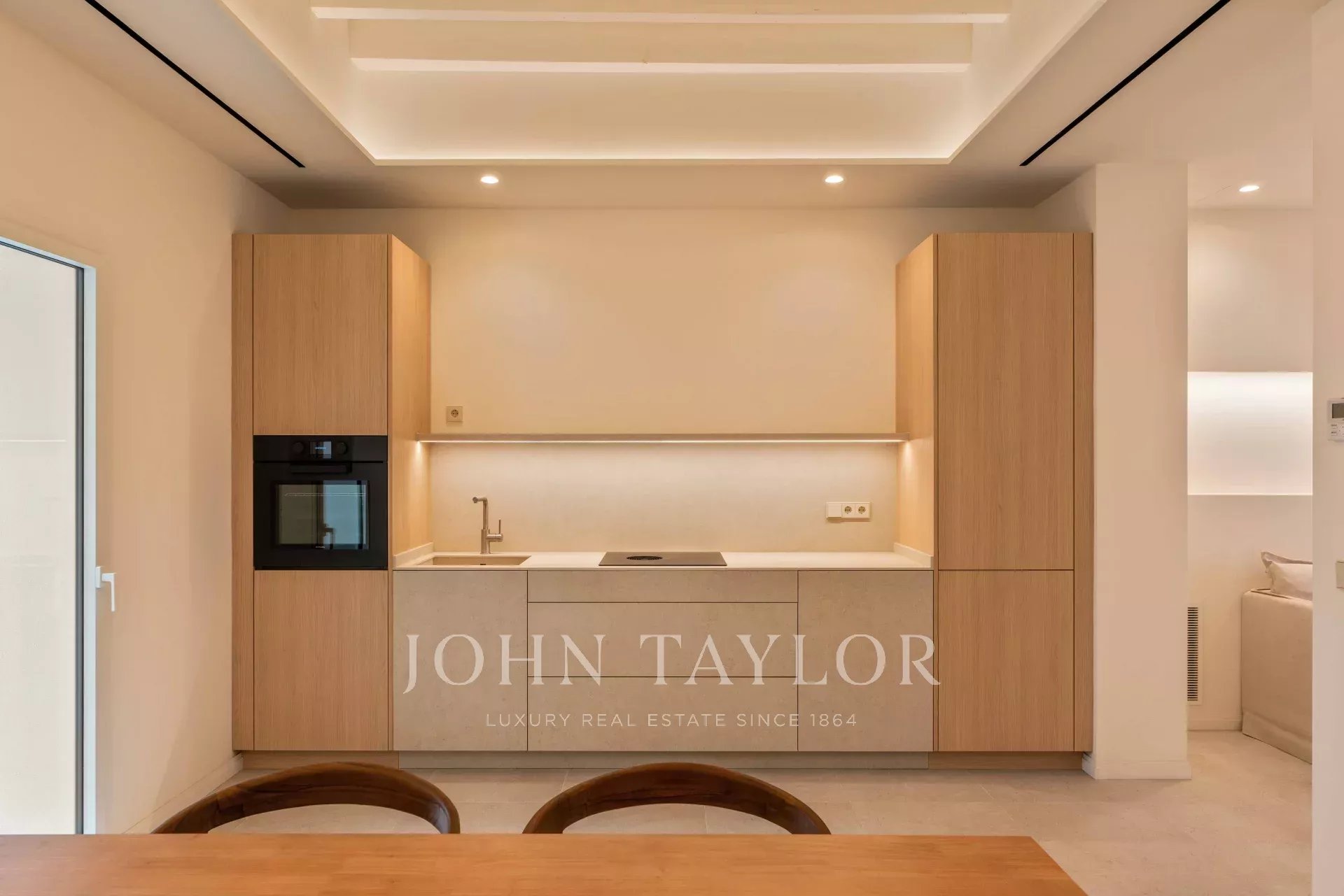 Cet appartement moderne situé au rez-de-chaussée a été entièrement rénové en 2025 et se trouve à quelques pas du marché de Santa Catalina, du club de tennis et du centre historique de Palma. D'une superficie d'environ 150 m², il comprend un salon et une salle à manger ouverts avec une cuisine design entièrement équipée (Bora, Siemens), deux chambres doubles, deux salles de bains et un bureau. La terrasse d'environ 40 m² vous invite à profiter de la vie en plein air au cœur de la ville et comprend une petite piscine, idéale pour se rafraîchir pendant les journées chaudes. L'appartement est entièrement meublé et bénéficie d'une finition de haut niveau avec la climatisation, des fenêtres à double vitrage et des équipements sur mesure. Il s'agit d'une opportunité de location exclusive dans l'un des quartiers les plus recherchés de Palma. Période de location minimum : 6 mois.