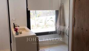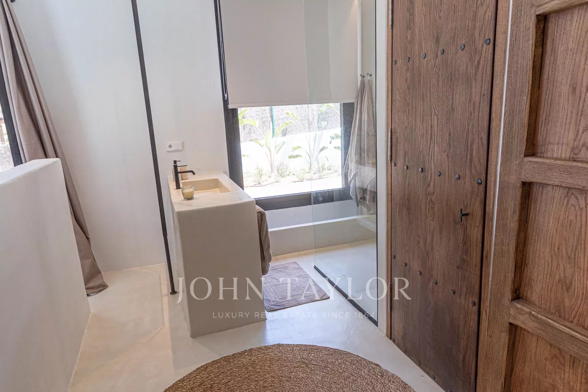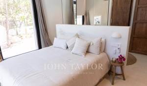 Cette magnifique villa dispose de quatre chambres doubles, chacune avec sa propre salle de bains, garantissant confort et intimité à tous les invités. La chambre principale se distingue par sa taille généreuse et son accès direct à la piscine, où vous pouvez vous réveiller avec des vues sereines et entrer directement dans l'eau rafraîchissante en ouvrant la fenêtre coulissante.