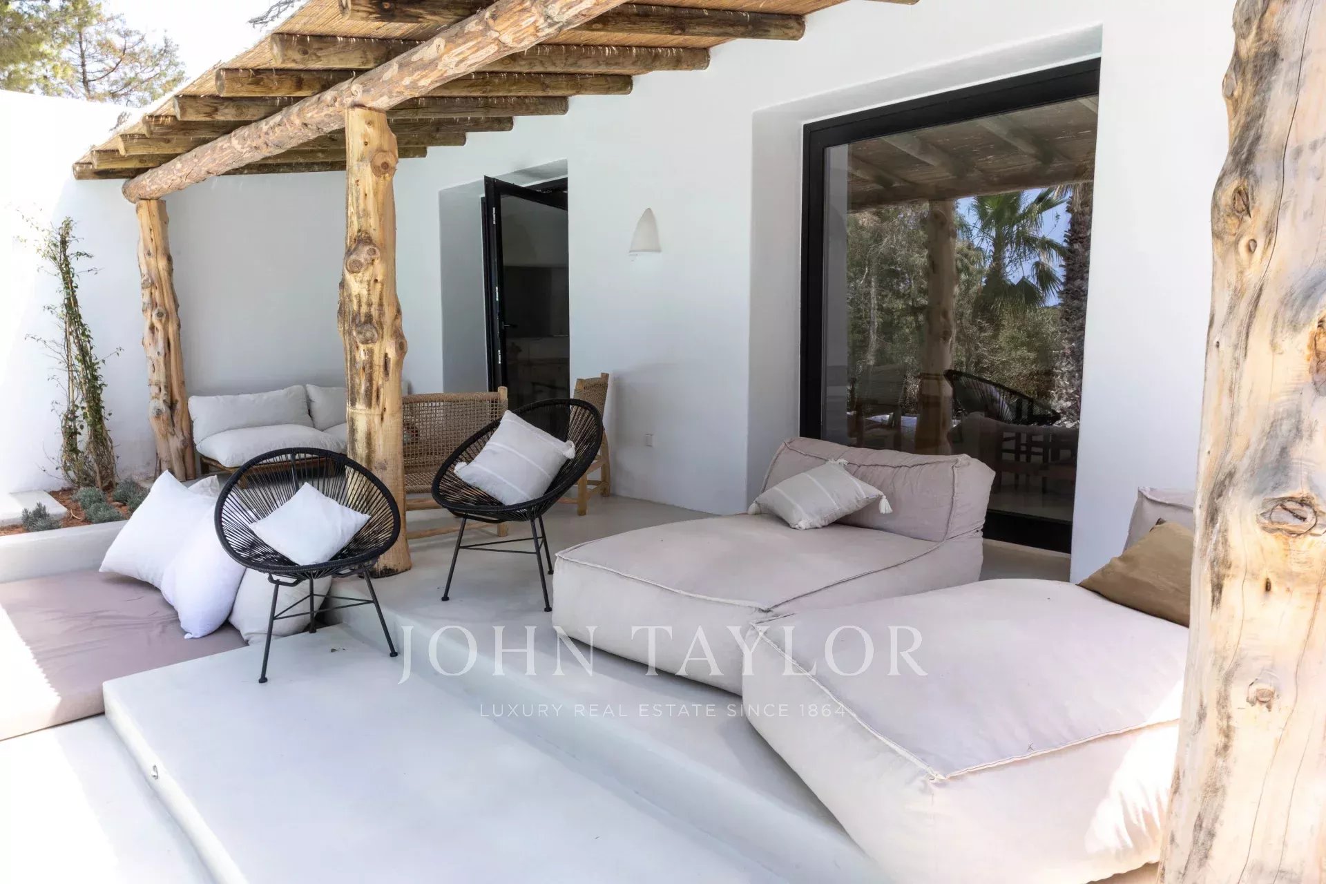 La villa dispose également d'une piscine aux eaux cristallines, qui vous invite à faire trempette tout en vous imprégnant de l'ambiance méditerranéenne. Chaque aspect de cette propriété a été conçu en pensant à votre confort et à votre luxe, ce qui en fait le lieu de retraite idéal à Cala Comte.