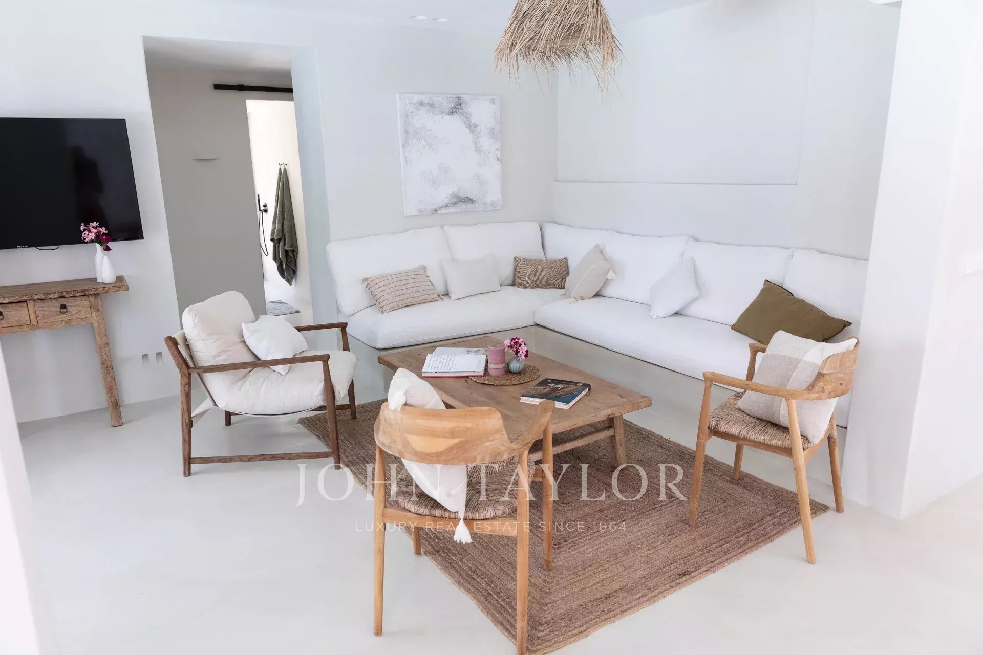 La villa offre des vues sur la mer, que l'on peut apprécier au mieux depuis la spacieuse terrasse sur le toit. À l'extérieur, le nouveau jardin entoure la propriété, créant un cadre luxuriant et tranquille. Vous pourrez dîner en plein air à la table extérieure ou vous détendre dans l'espace chill-out, idéal pour se relaxer après une journée au soleil.