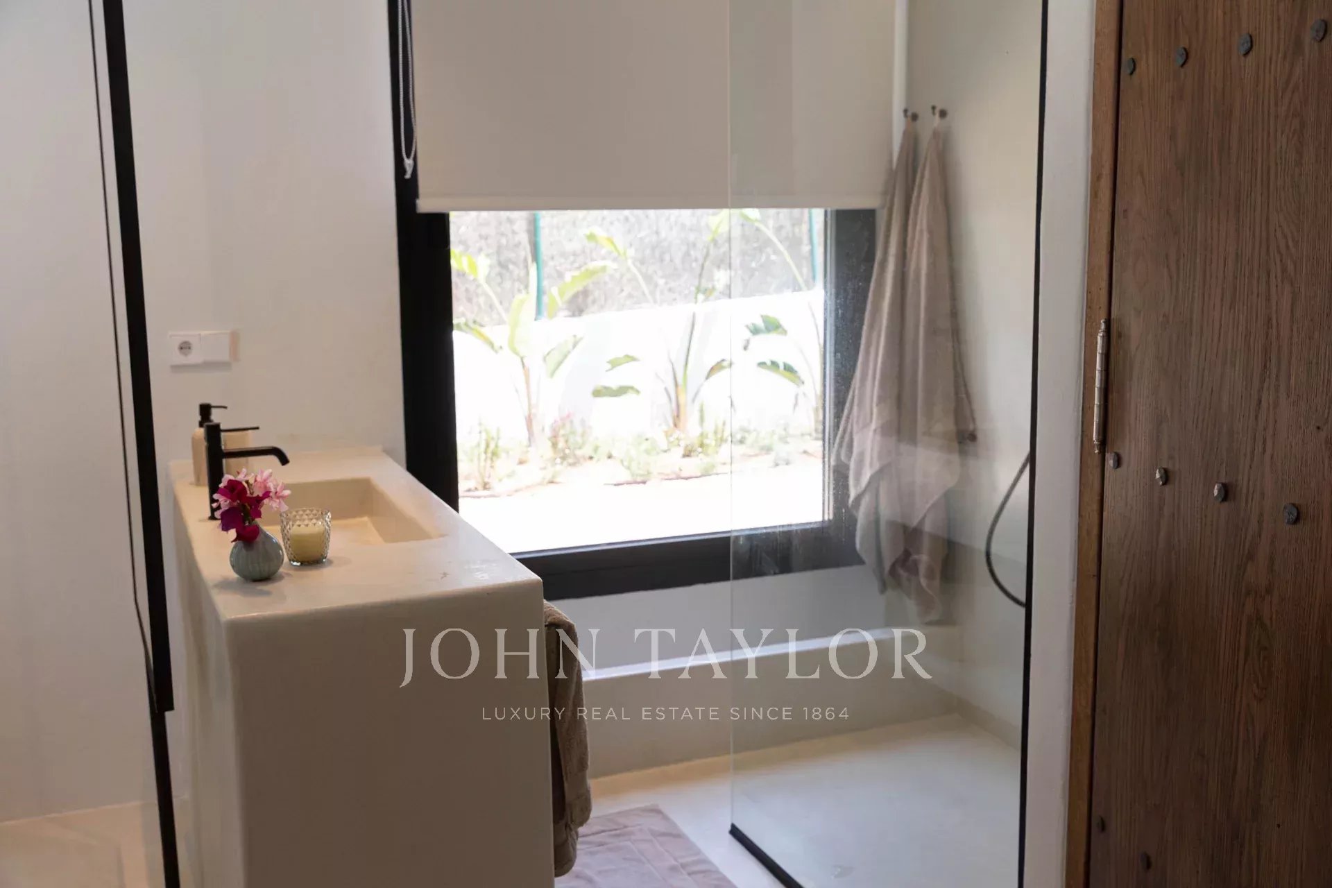 Bienvenue dans cette superbe villa récemment rénovée dans le quartier exclusif de Cala Conte. Méticuleusement conçue avec les matériaux les plus fins, cette propriété incarne le luxe et l'élégance. L'attention portée aux détails est évidente partout, des portes haut de gamme aux finitions intérieures exquises.