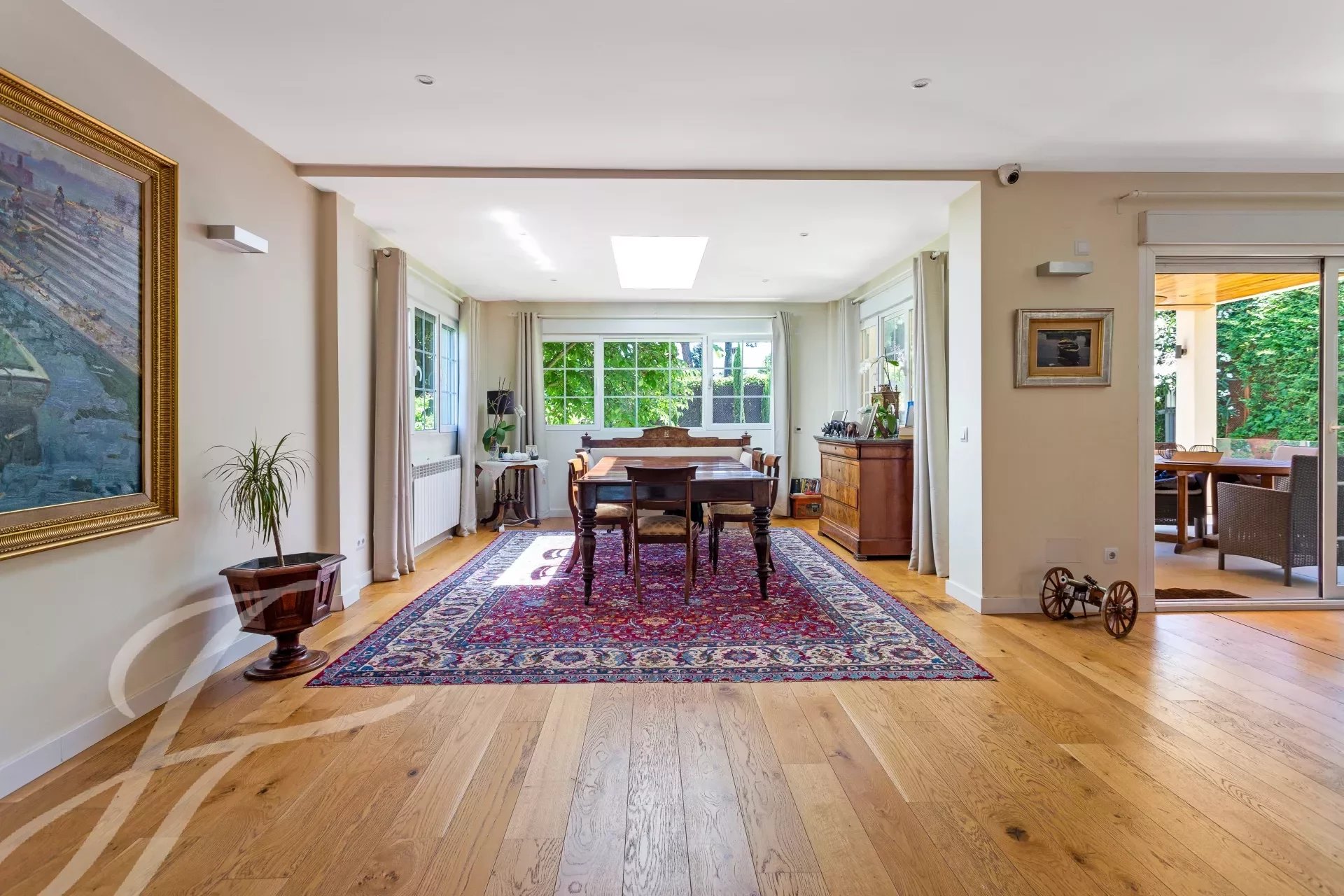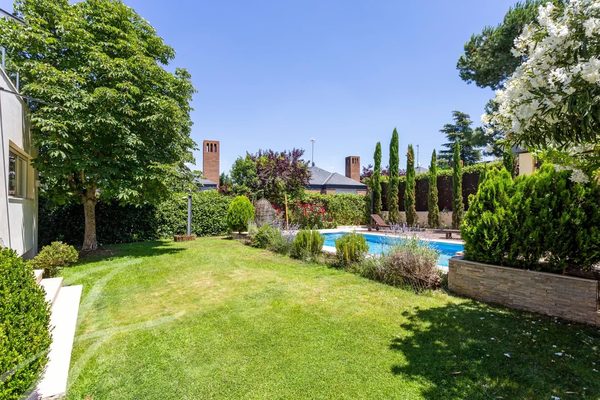 Exceptionnelle villa individuelle entièrement rénovée de 456 m² construite avec sept pièces ou chambres. Terrain de 634 m² avec jardin magnifiquement entretenu et arboré, piscine, gazebo, barbecue, four extérieur, abri de jardin, buanderie et bûcher.