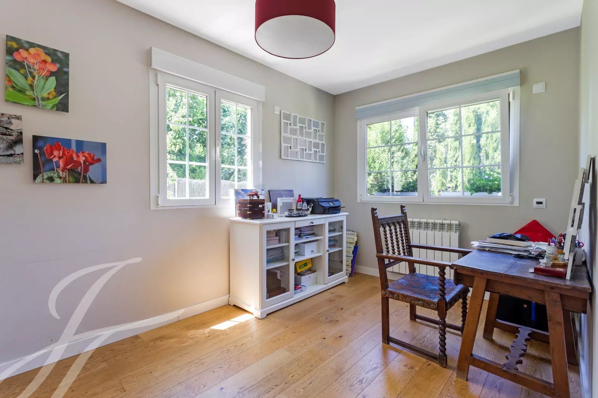Climatisation et pompe à chaleur par conduits, chauffage au gaz naturel par radiateurs. Cuisinière nordique en céramique à haut pouvoir calorifique et cheminée dans le salon.