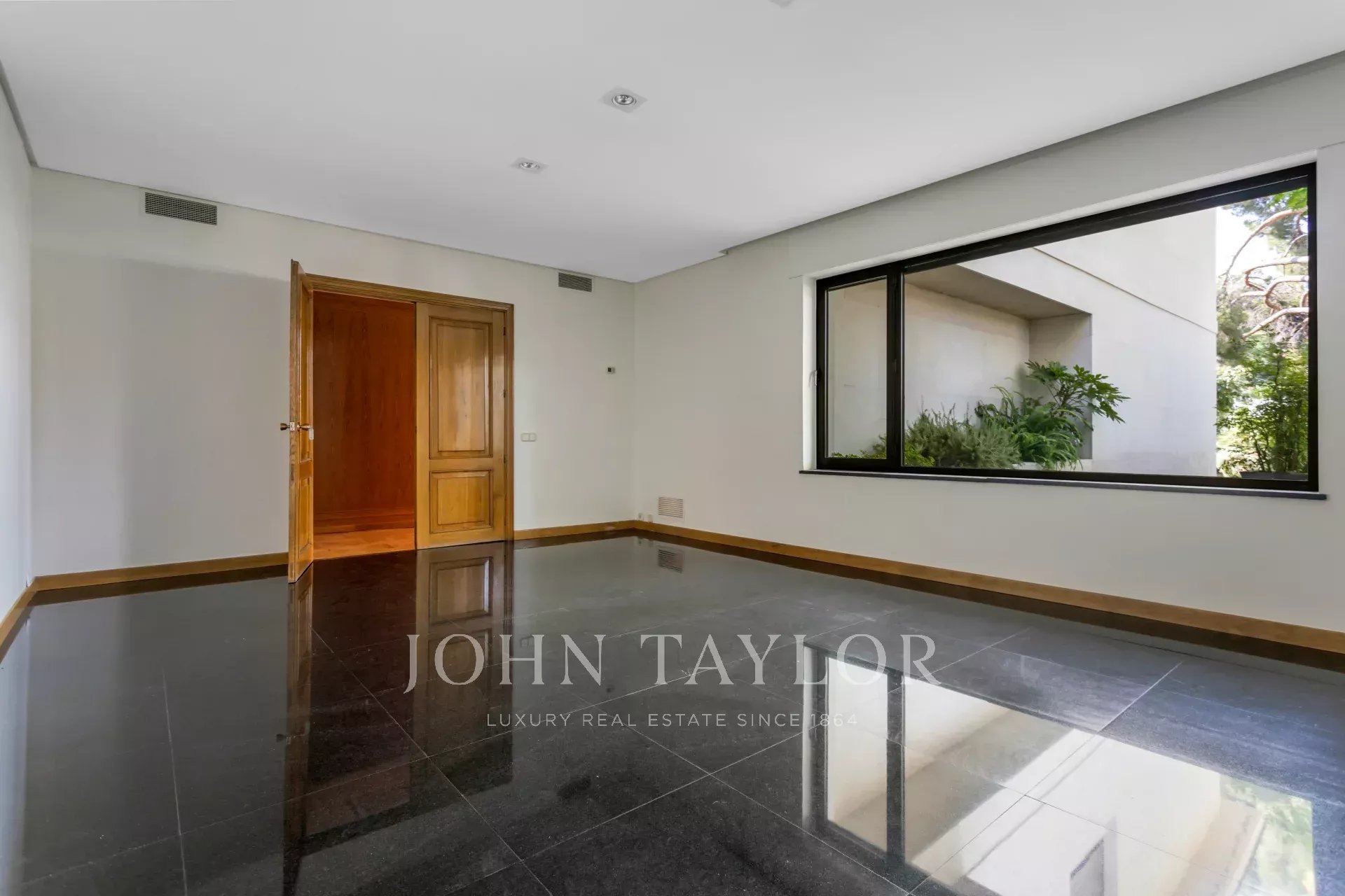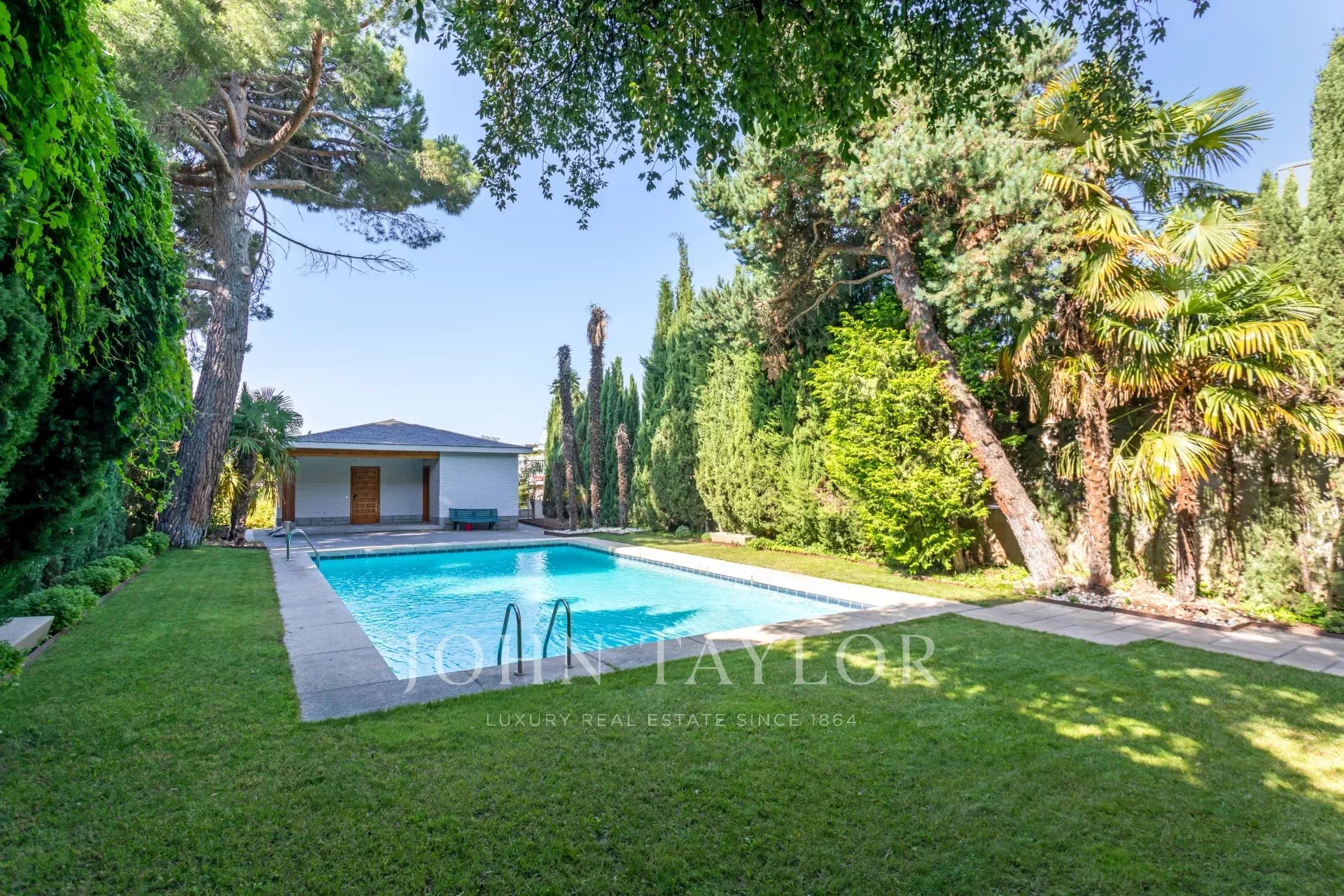 La zone de loisirs est composée d'un splendide jardin sur deux niveaux avec de magnifiques vues sur Madrid, d'une piscine au chlore de 12x8, d'un pool house et d'un court de paddle, d'une magnifique cave à vin avec une capacité de stockage de plus de 30 bouteilles de vin. L'ascenseur permet d'accéder à tous les étages, à l'exception du parking. La propriété est orientée nord et sud.