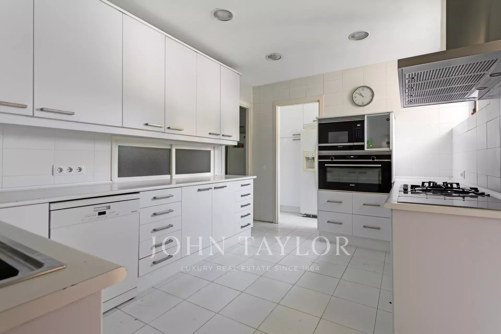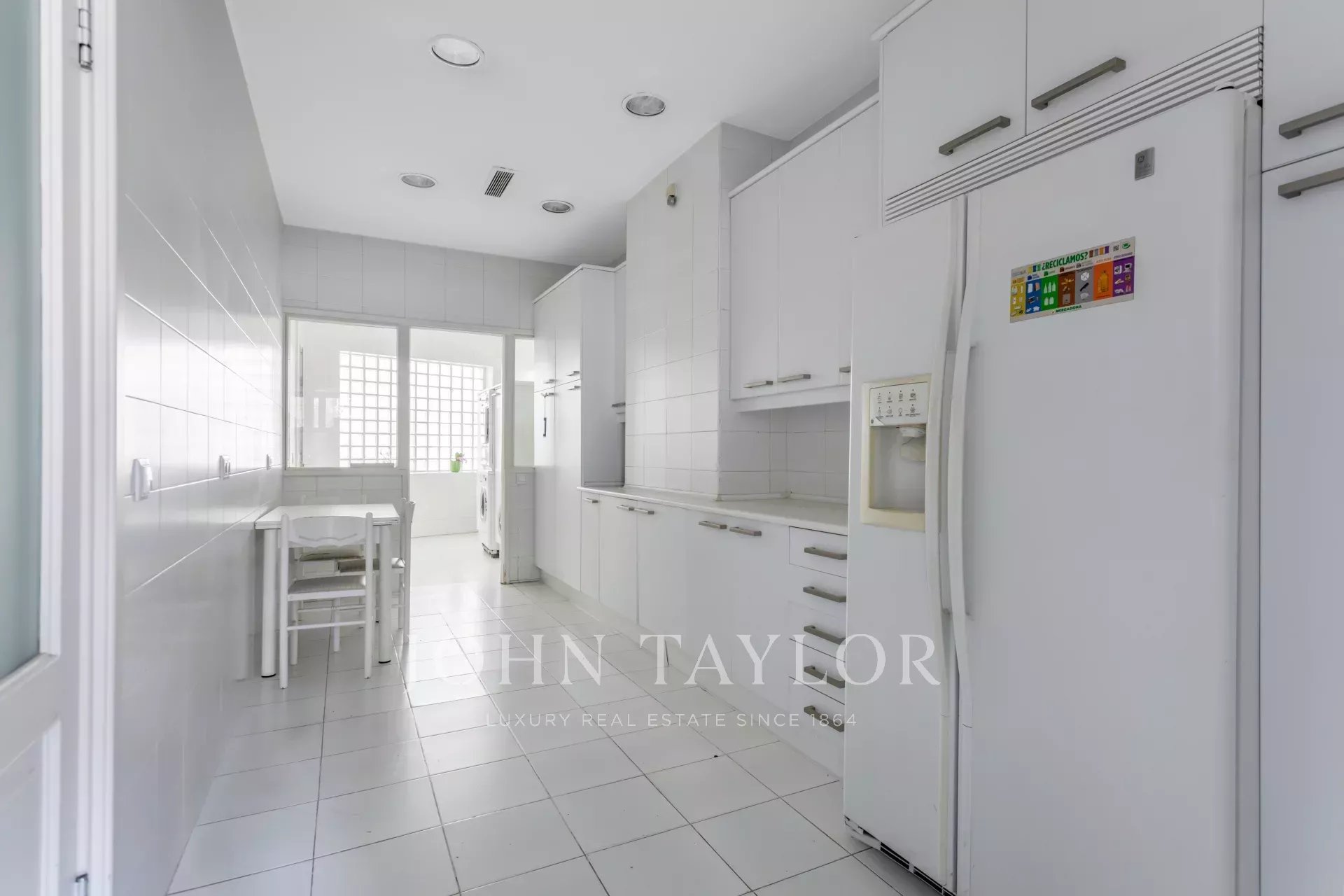 La zone de sommeil est située à l'étage supérieur, où l'on trouve une grande chambre à coucher avec différents espaces, repos, bureau, salle de bain attenante et dressing. Ensuite, un appartement indépendant avec cuisine, chambre à coucher, salle de bain complète et espace de vie. Quatre chambres indépendantes et lumineuses avec une grande capacité de rangement constituent le reste de la zone de repos, qui est desservie par deux salles de bains complètes situées dans le couloir.
