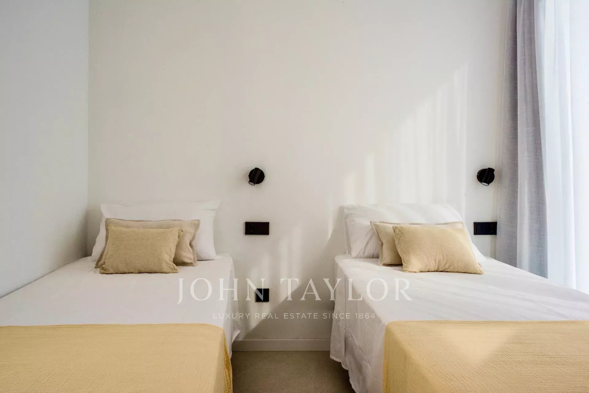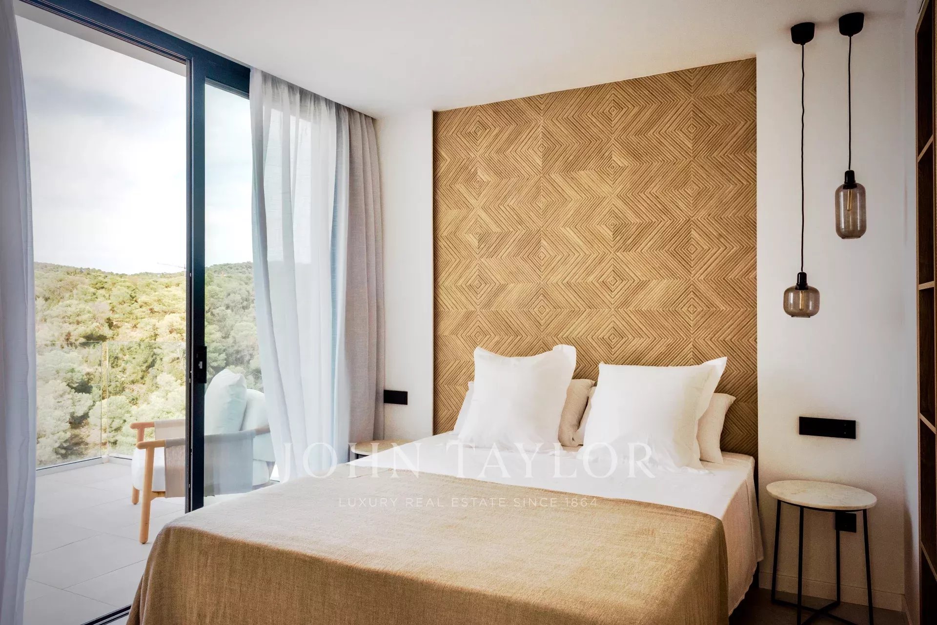 De nouvelles résidences d'avant-garde au design contemporain, situées à proximité de la plage de Cala Tarida. Le développement offre une communauté exclusive fermée avec un total de 8 piscines communes entourées de jardins paysagers, ainsi qu'une sécurité privée 24 heures sur 24.