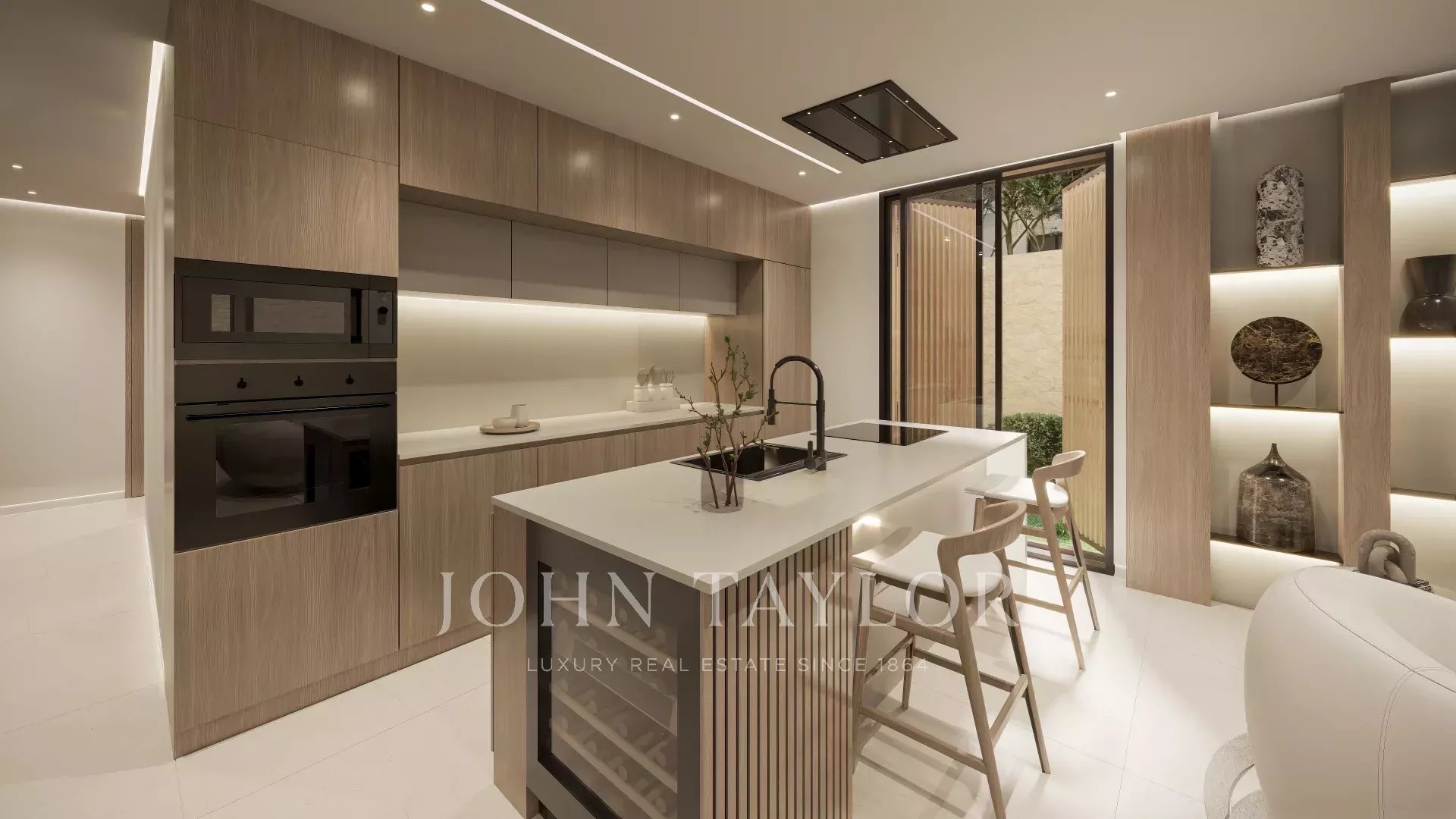 La cuisine ouverte avec îlot central constitue le cœur du foyer, alliant esthétisme et fonctionnalité. Les salles de bains sont pensées comme des espaces de bien-être privés, aux finitions élégantes et à l’ambiance sereine. Les chambres, spacieuses et lumineuses, sont de véritables havres de paix, offrant intimité et luxe discret.