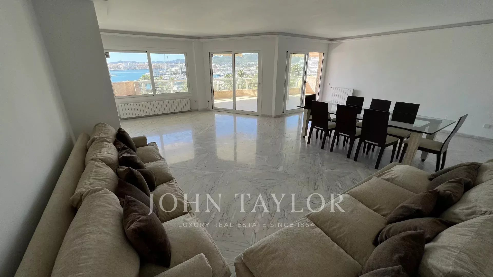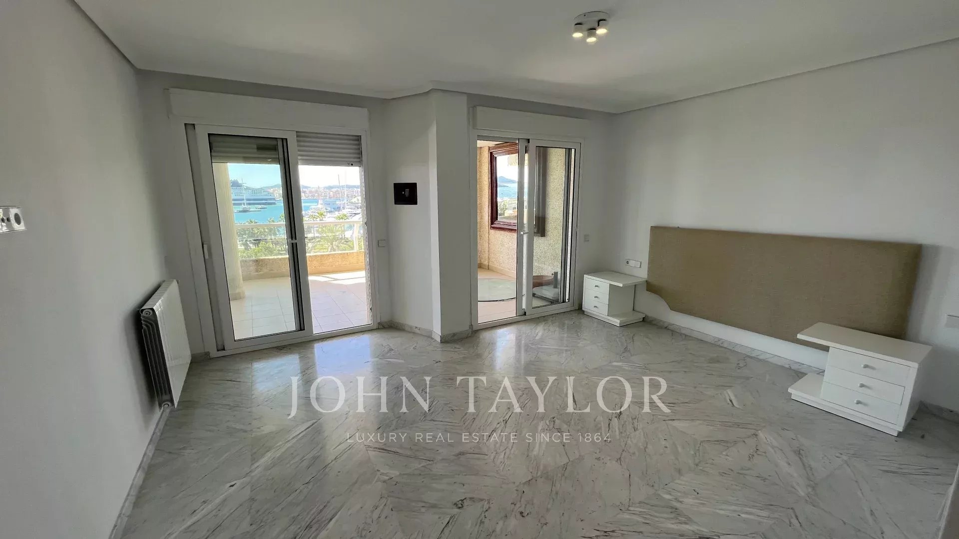 L'espace nuit offre quatre chambres en suite. La suite principale bénéficie d'une vue exceptionnelle sur Dalt Vila, tandis que deux des trois chambres supplémentaires disposent de charmantes terrasses privées avec vue sur Botafoch et Talamanca, apportant une touche d'exclusivité et d'intimité. De plus, l'appartement comprend une chambre de service avec une salle de bain complète, idéale pour le personnel ou comme espace supplémentaire.