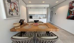 Le design moderne allie luxe et caractère ibizien, avec une façade blanche impressionnante ornée de jardins verticaux et une cour centrale de 15 mètres de haut. Entièrement meublé avec des finitions haut de gamme, l’appartement comprend des cuisines équipées d’appareils Gaggenau et de robinetterie Dornbracht.
