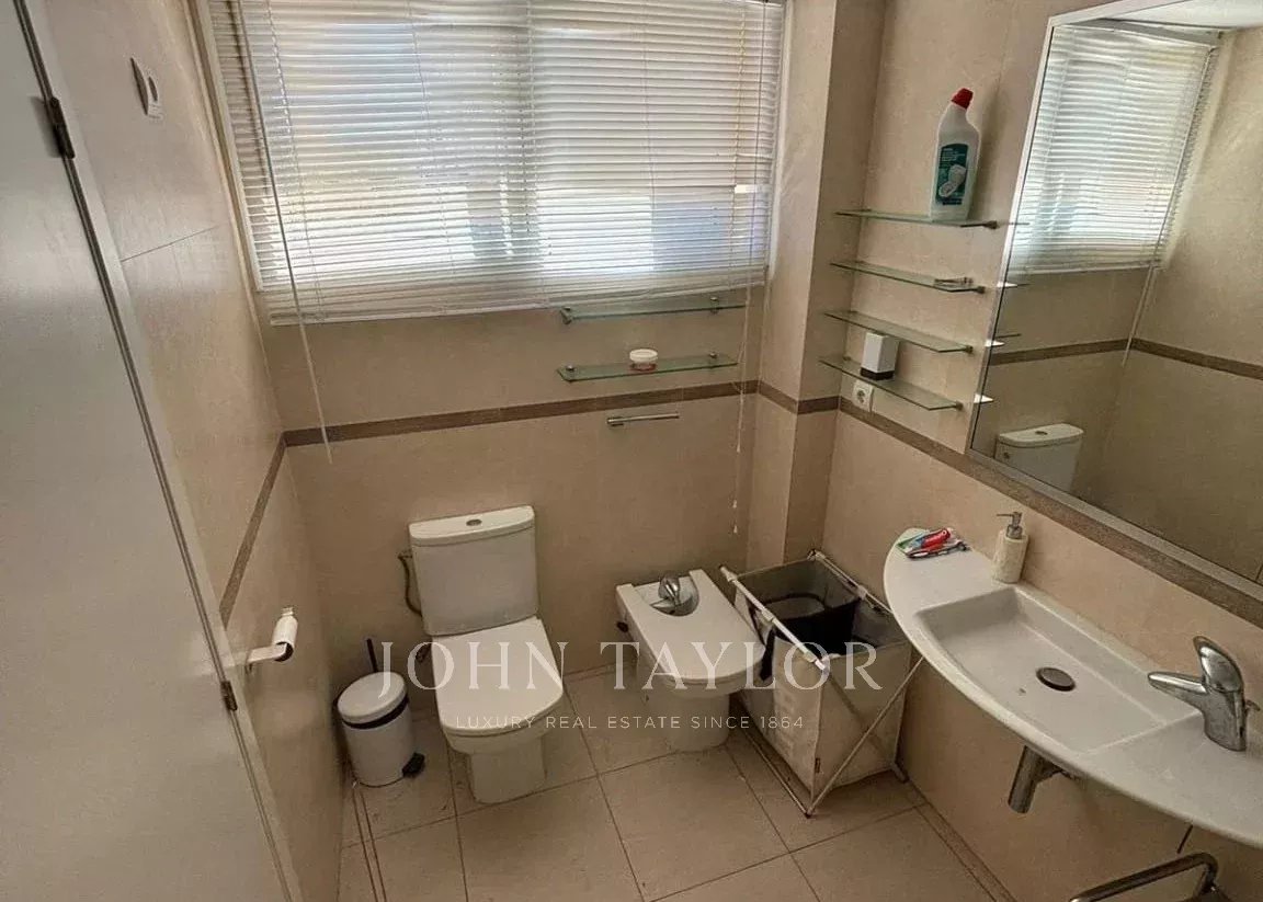 La propriété fait partie d’une résidence bien entretenue avec piscine commune, un véritable atout dans ce secteur central. Une place de parking est également incluse, un élément particulièrement recherché à Ibiza.