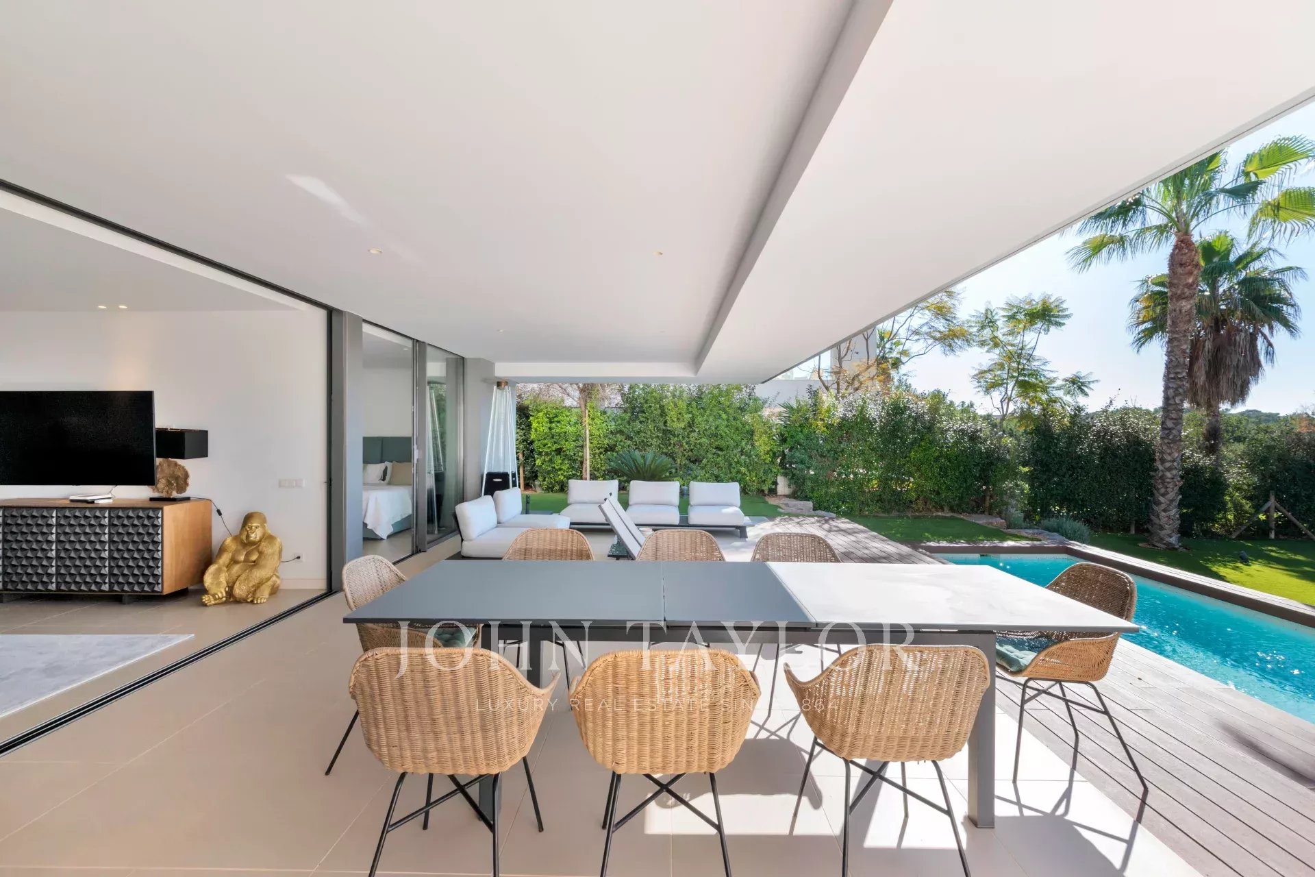 En entrant, nous sommes accueillis par un spacieux séjour lumineux qui s'ouvre sur une grande terrasse et un jardin avec piscine privée. Des vues imprenables sur la baie, encadrées par une végétation luxuriante, créent un décor serein et naturel.