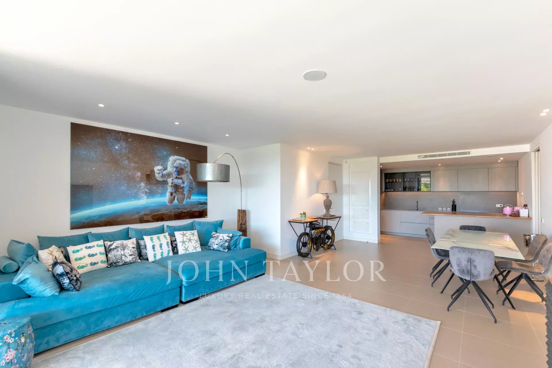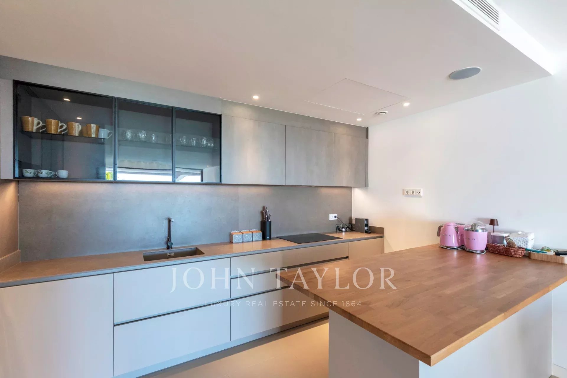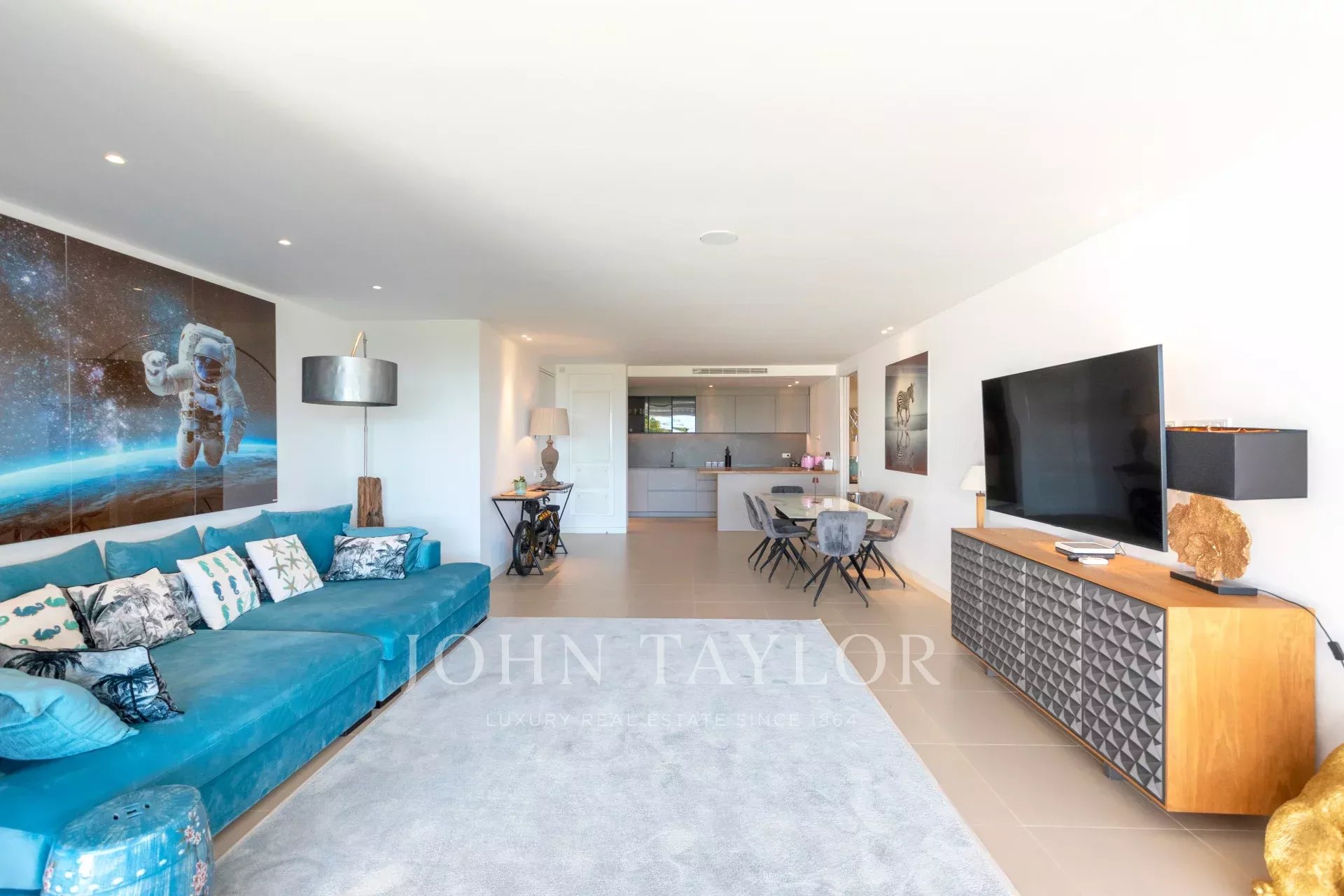 Le salon et la cuisine à aire ouverte s'articulent sans effort, améliorant la sensation d'espace et la connexion avec l'extérieur. L'appartement dispose de trois chambres joliment décorées, chacune avec un accès direct au jardin. La suite principale dispose d'une salle de bains privative et d'un dressing, tandis que deux chambres supplémentaires bénéficient d'une salle de bains privative et d'une vue sur les jardins paysagers.