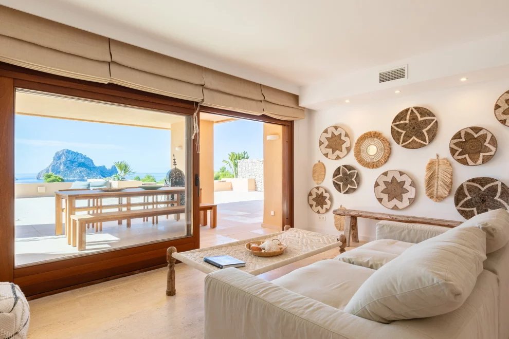 Depuis la terrasse, les couchers de soleil sur Es Vedrà offrent un spectacle unique, alliant beauté naturelle et énergie presque indescriptible. Cet endroit est connu pour son magnétisme et la sensation de paix qu’il procure.