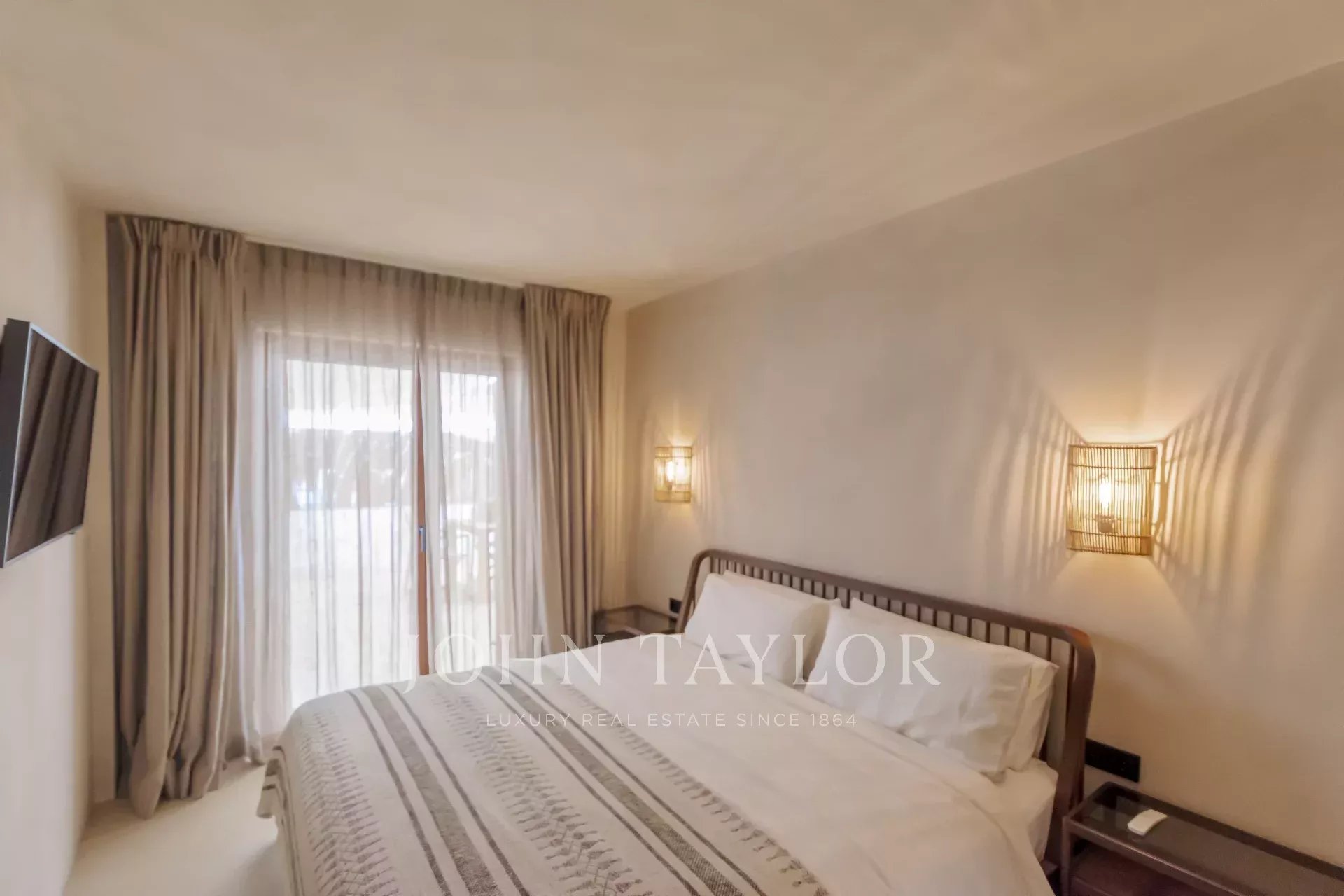 La suite principale comprend une élégante salle de bain attenante, tandis que la seconde chambre, spacieuse et lumineuse, dispose d’une salle de bain séparée.