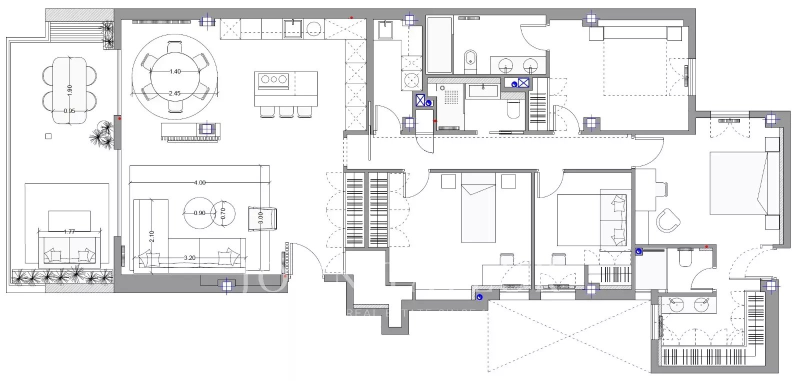 Le logement dispose de quatre chambres et trois salles de bain, avec une distribution qui optimise chaque mètre de manière généreuse. La domotique intégrée permet de gérer la maison avec un confort total, et l'état de conservation est impeccable, prêt à emménager sans intervention nécessaire.