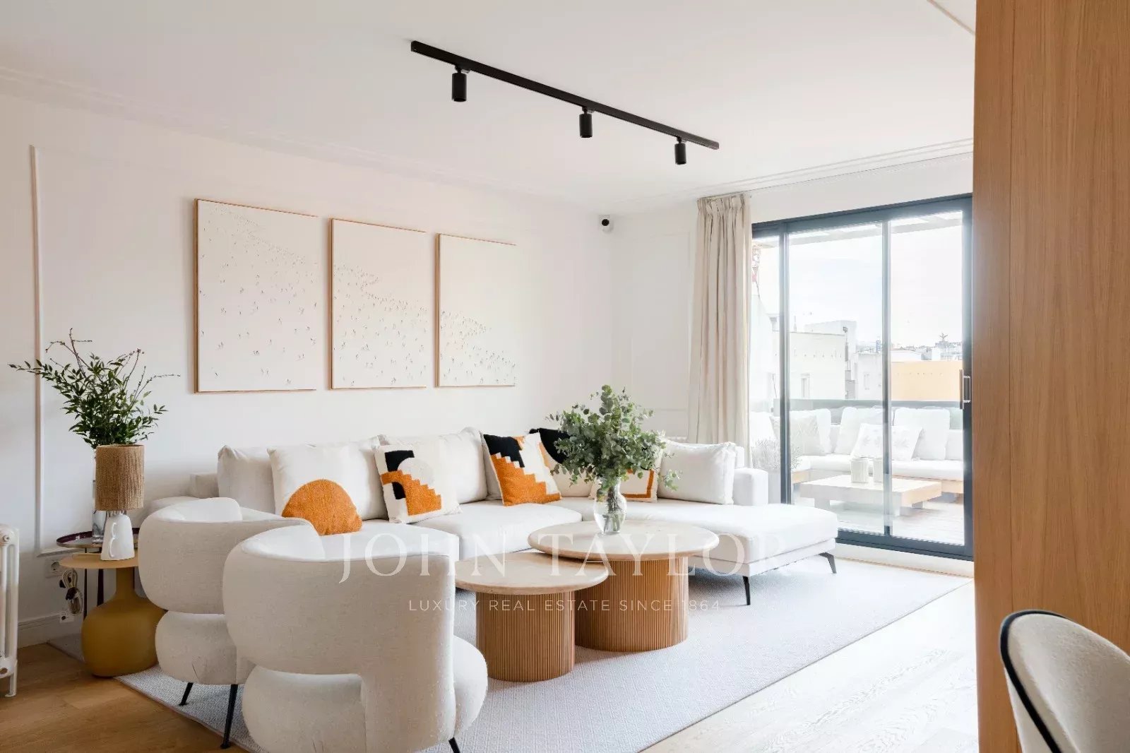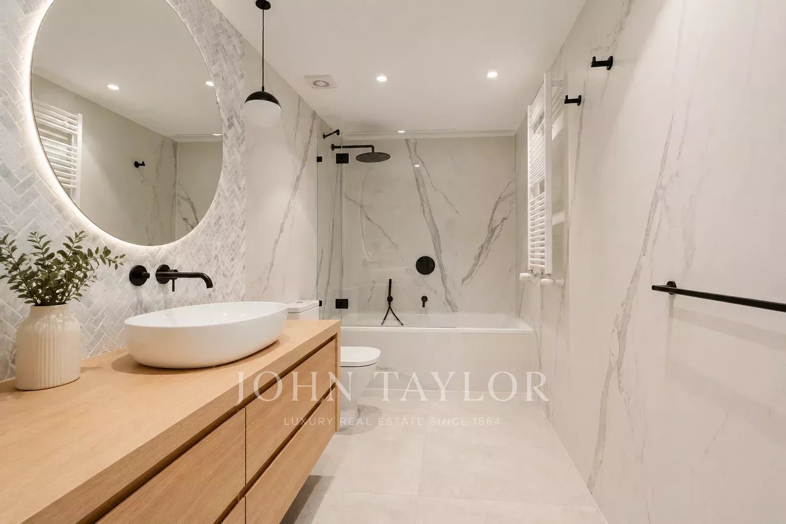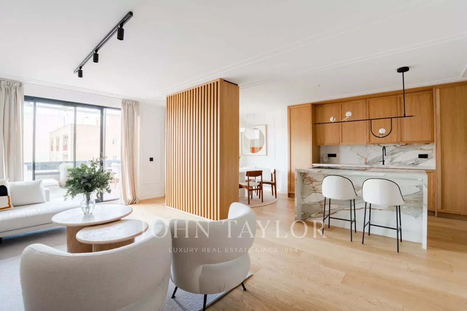 Penthouse singulier dans la rue de Castelló, au cœur du quartier de Salamanca. Un logement qui combine espace, lumière naturelle et finitions soignées jusqu'au moindre détail, couronné par une terrasse privée de 25 m² avec vue dégagée et encadrée par un magnifique clocher.