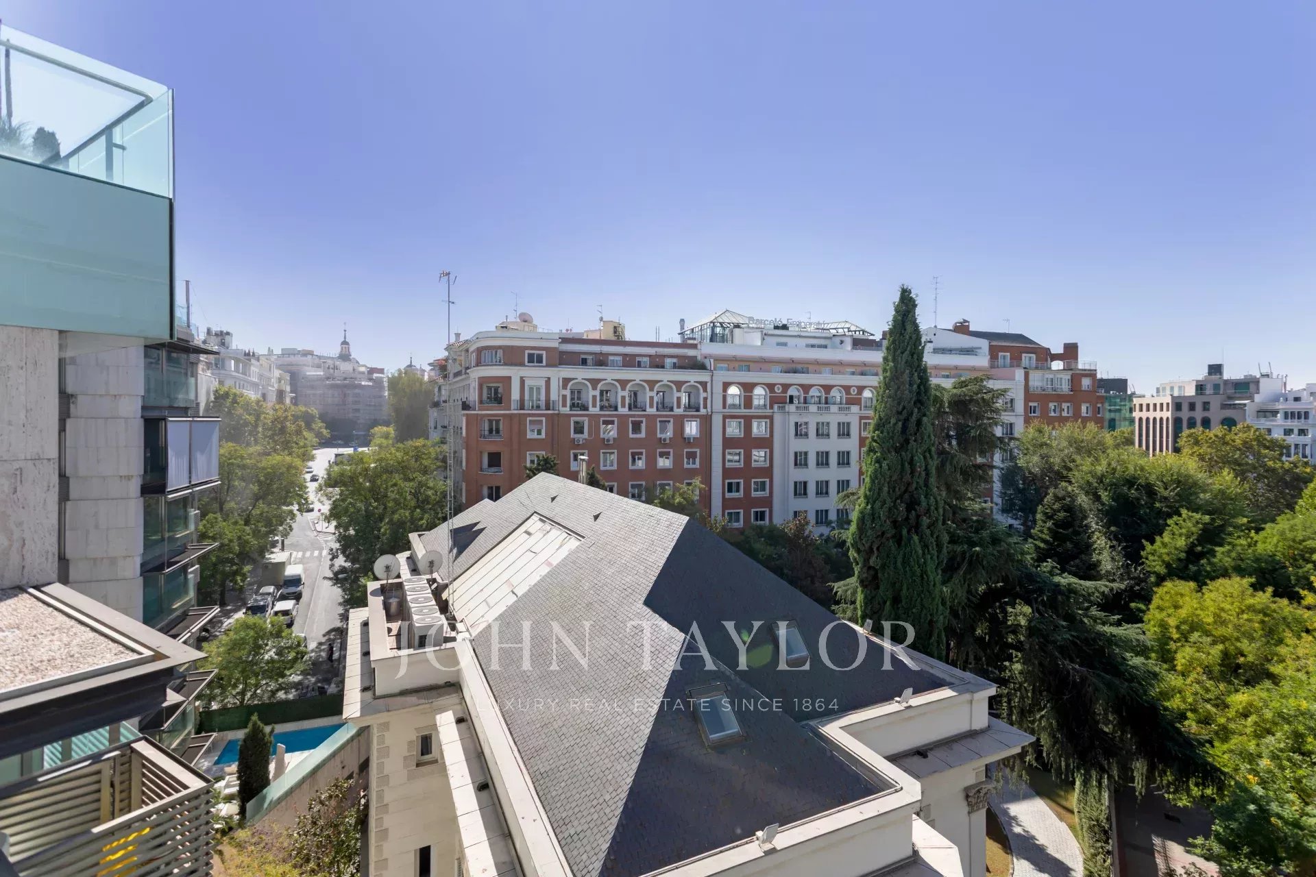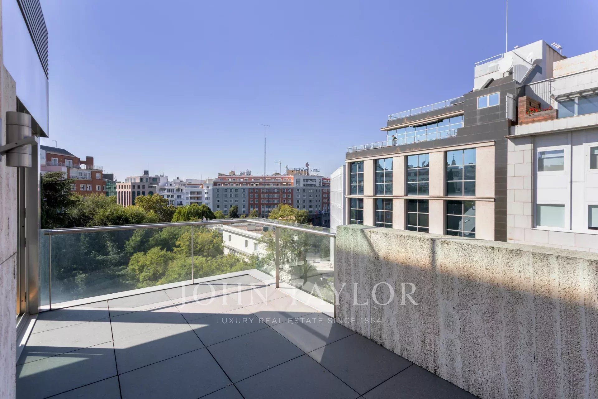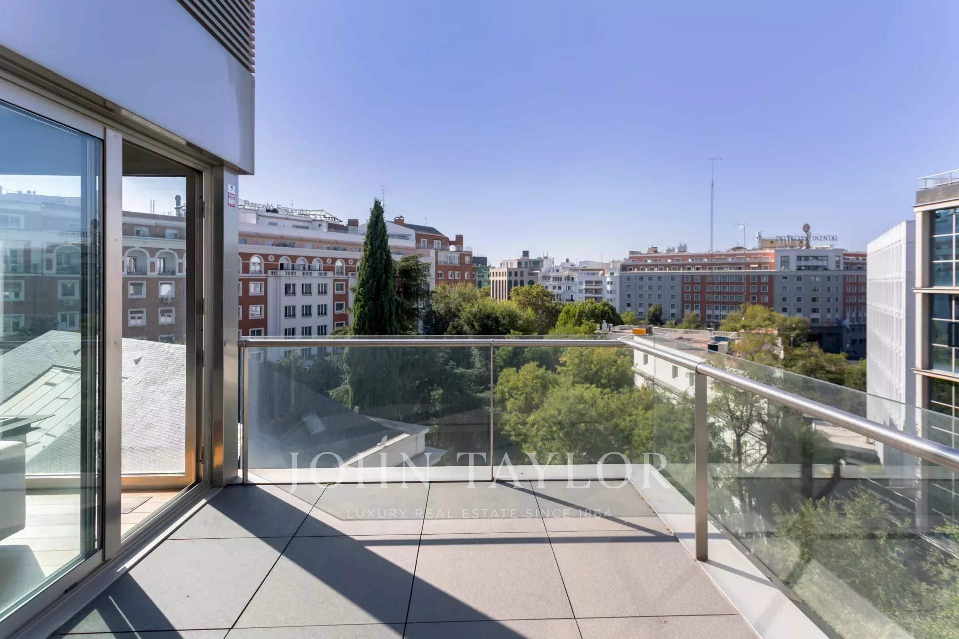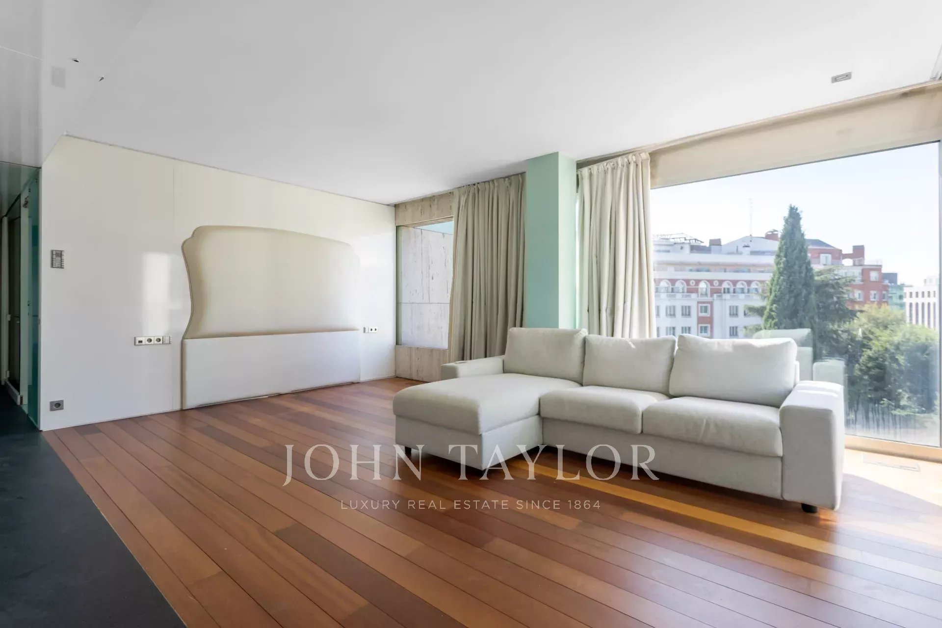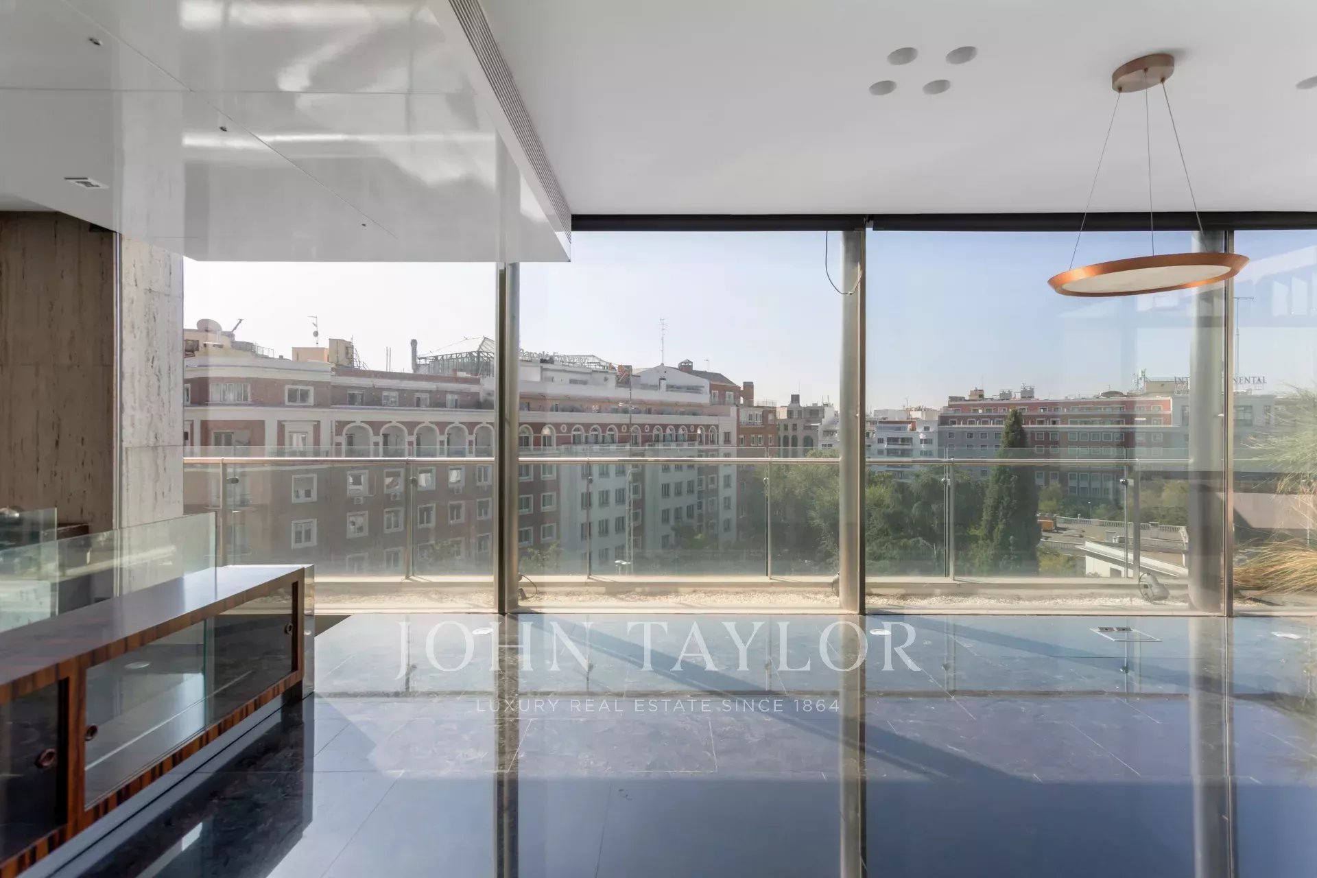 Il est situé dans l'une des zones les plus élégantes et les plus paisibles du quartier de Salamanca et dans un bâtiment renommé, premier prix d'architecture de la mairie de Madrid en 2007, qui se distingue par son plan imposant, sa façade en marbre travertin et en verre et l'utilisation de matériaux tels que le bois de jatoba.