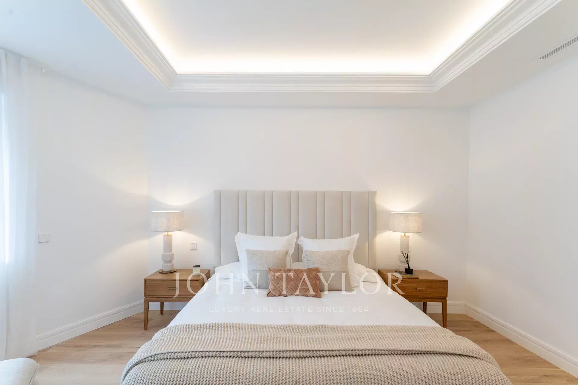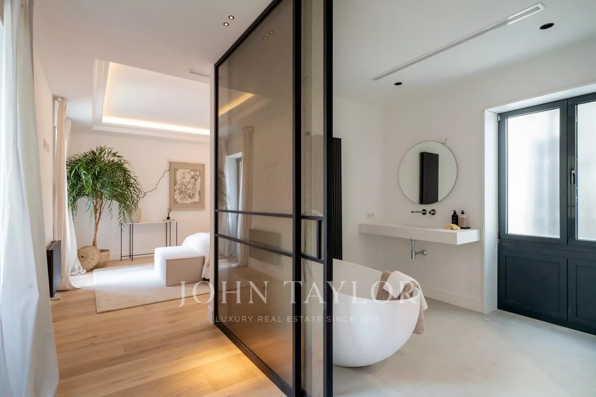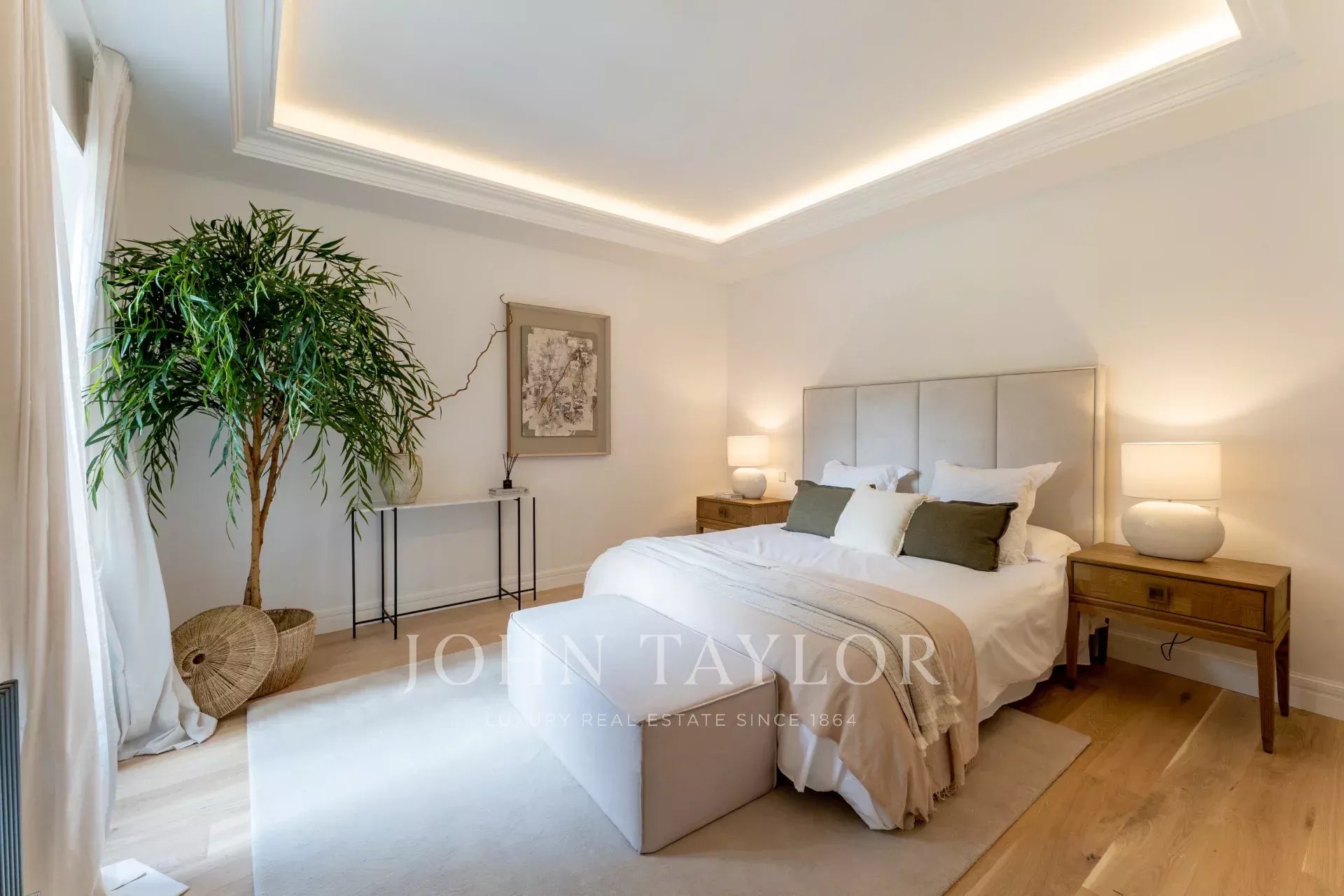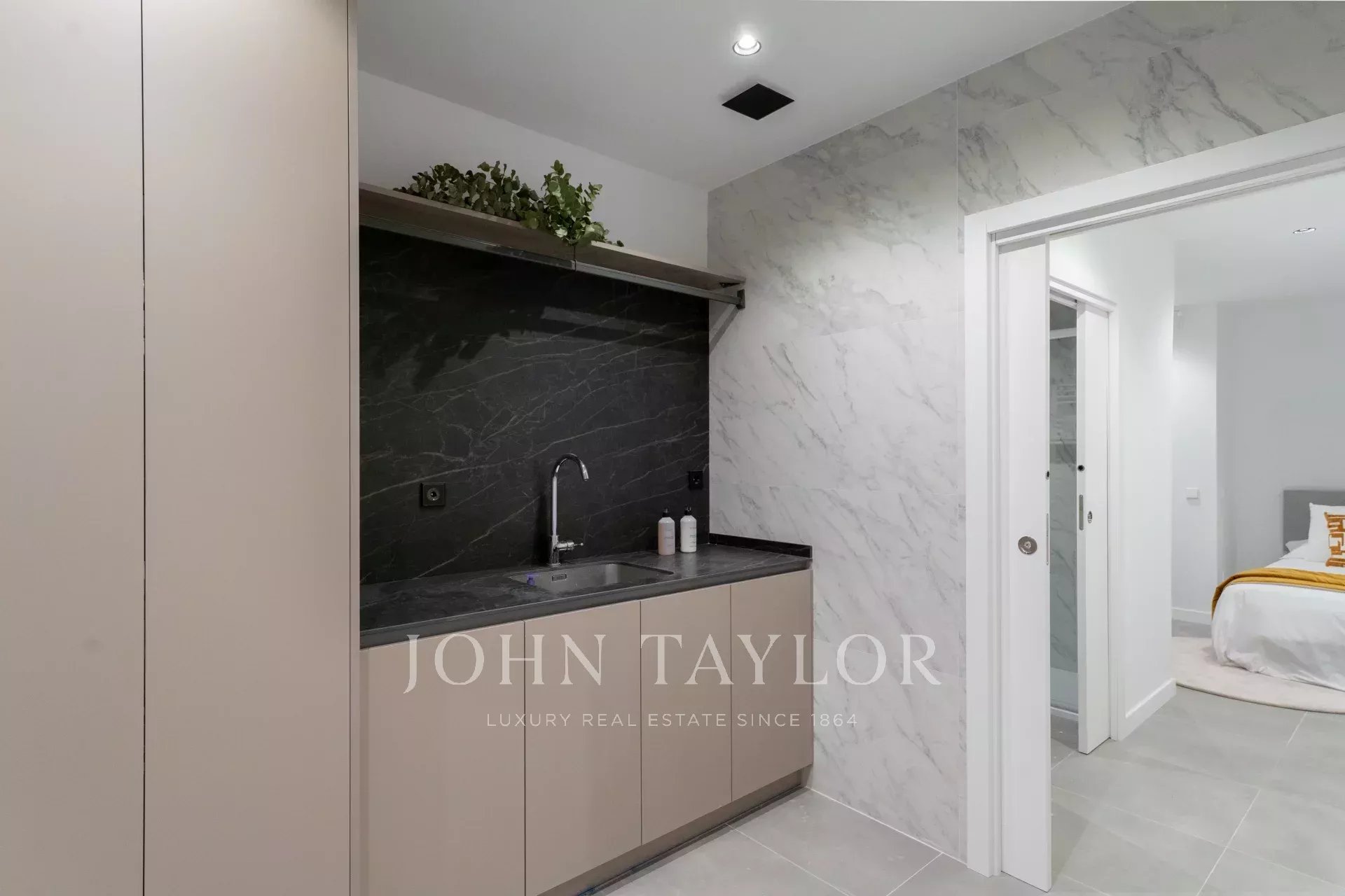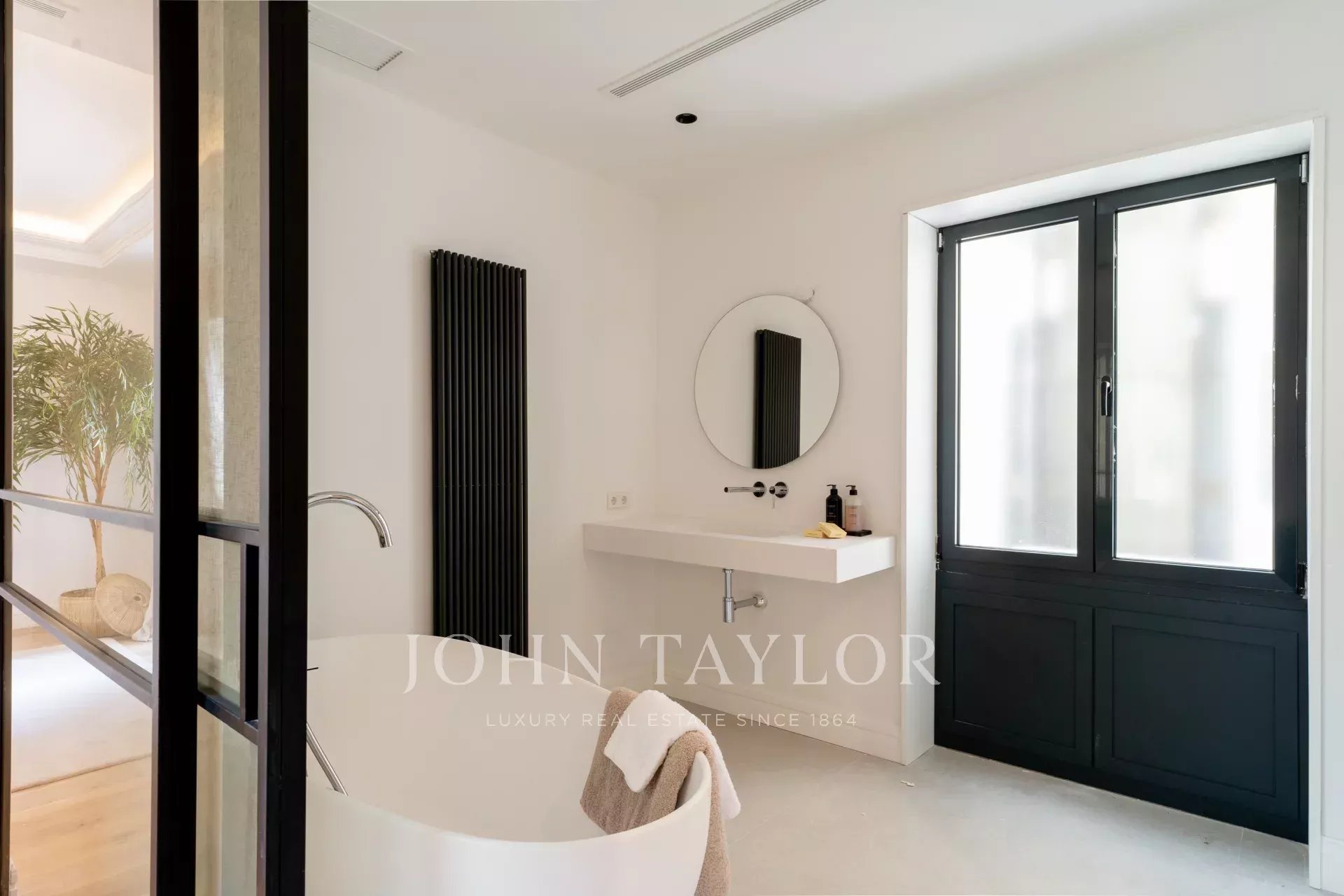 Avec une excellente distribution, des espaces ouverts et lumineux et des plafonds de 3 mètres de haut, cette propriété au design contemporain a été entièrement rénovée avec des qualités de premier ordre. Il dispose de 3 chambres doubles avec salle de bains privative, dressing spacieux et lumière naturelle, ainsi que d'une chambre pour le personnel avec salle de bains privative.