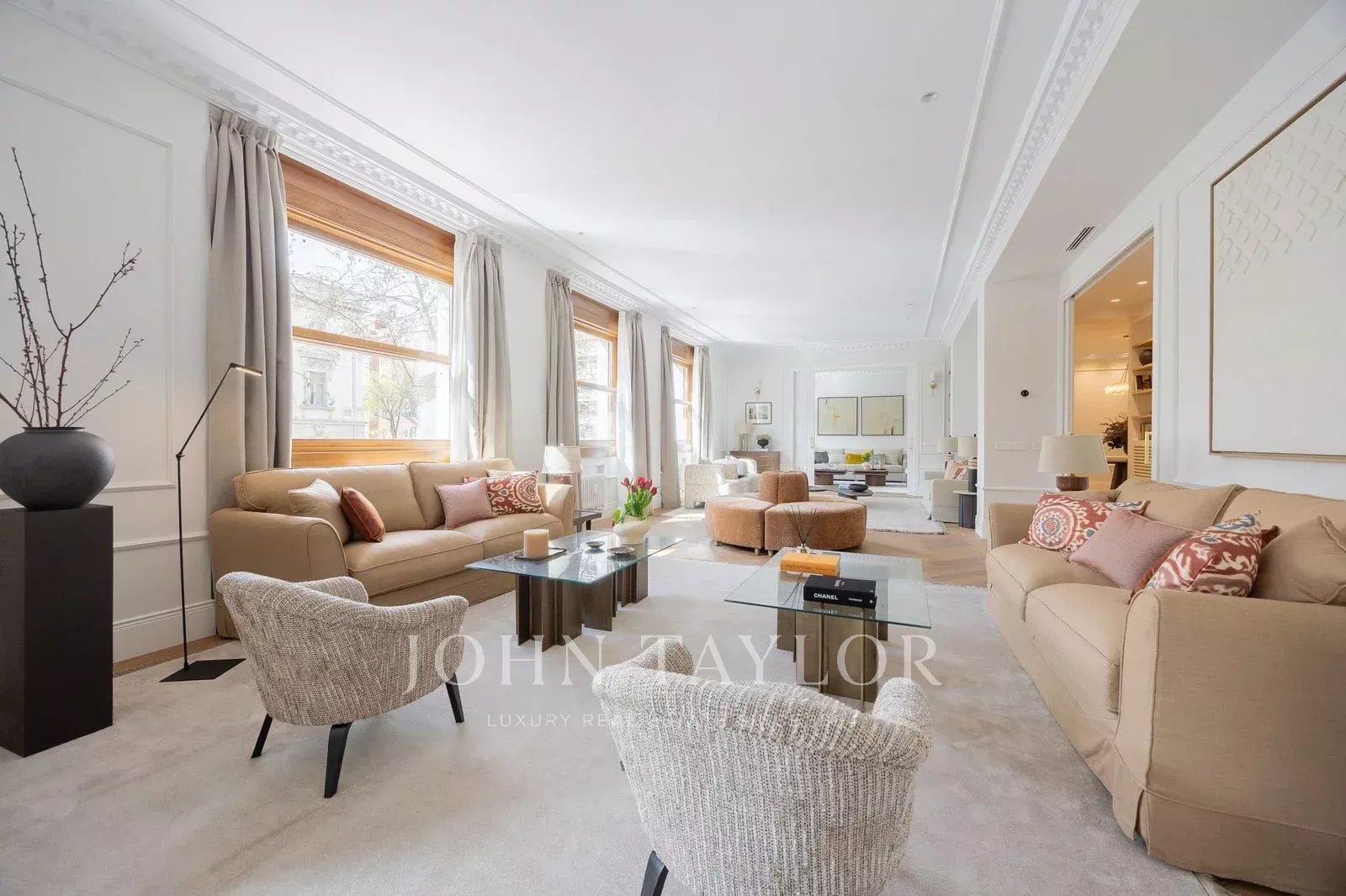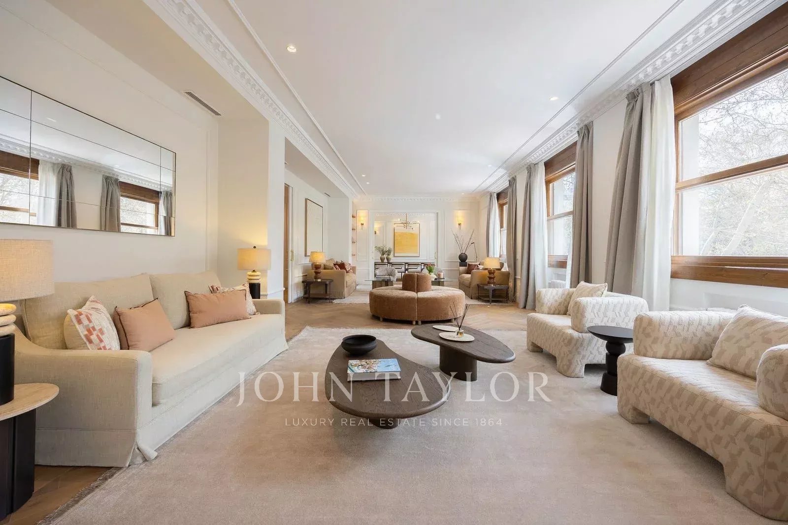 Avec environ 451 m² intérieurs et une terrasse jardinée exclusive de 43 m², le logement a été entièrement rénové avec un design contemporain soigné, offrant de grands espaces de réception, plusieurs suites privées et une sensation extraordinaire de lumière et d'espace grâce à ses vues dégagées.